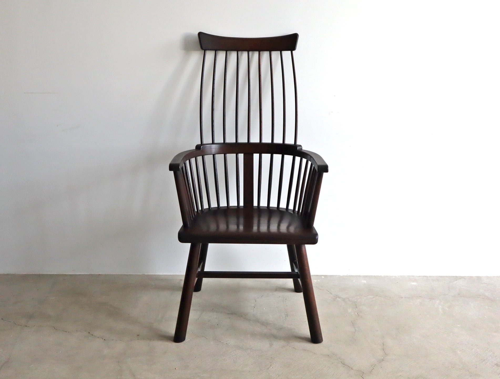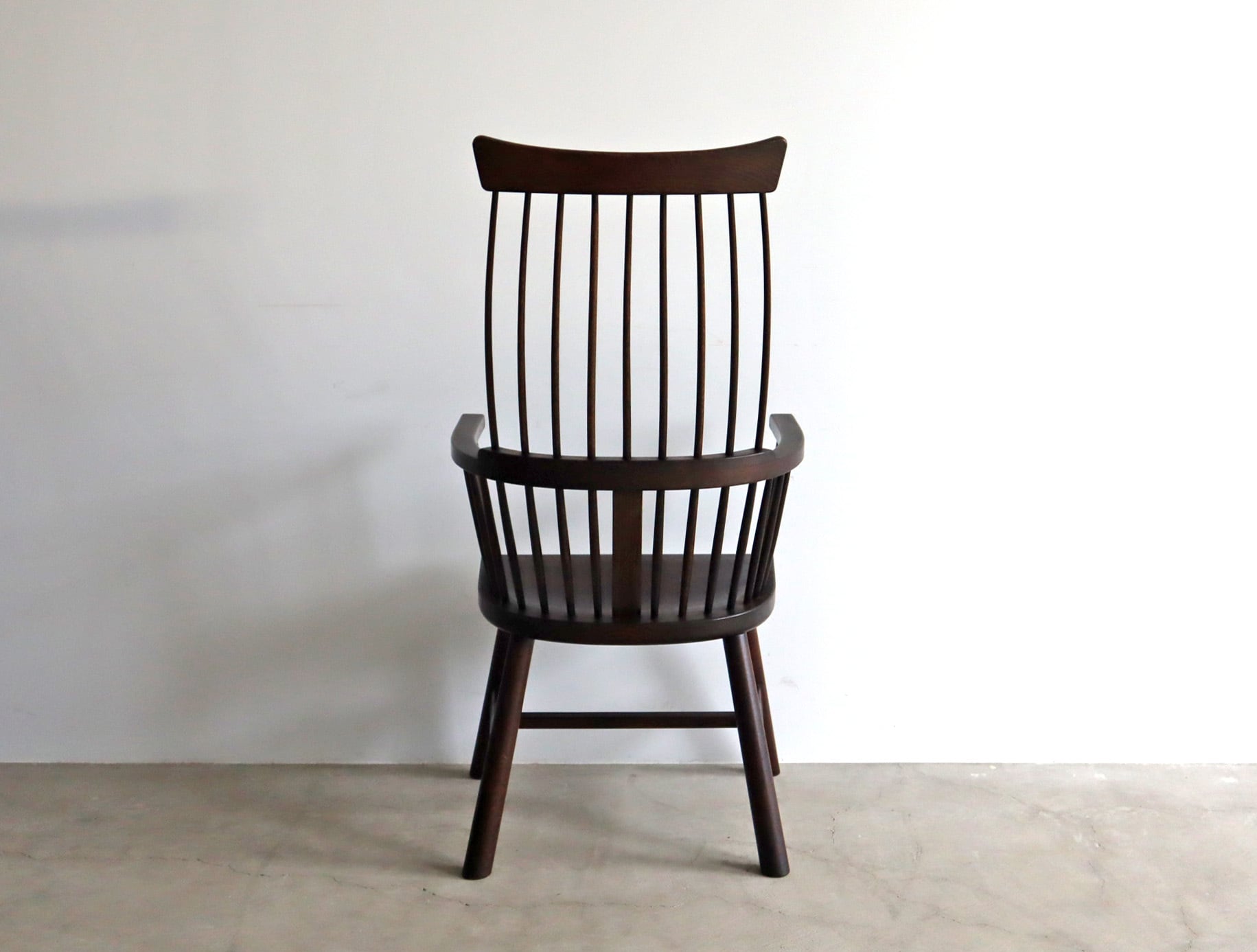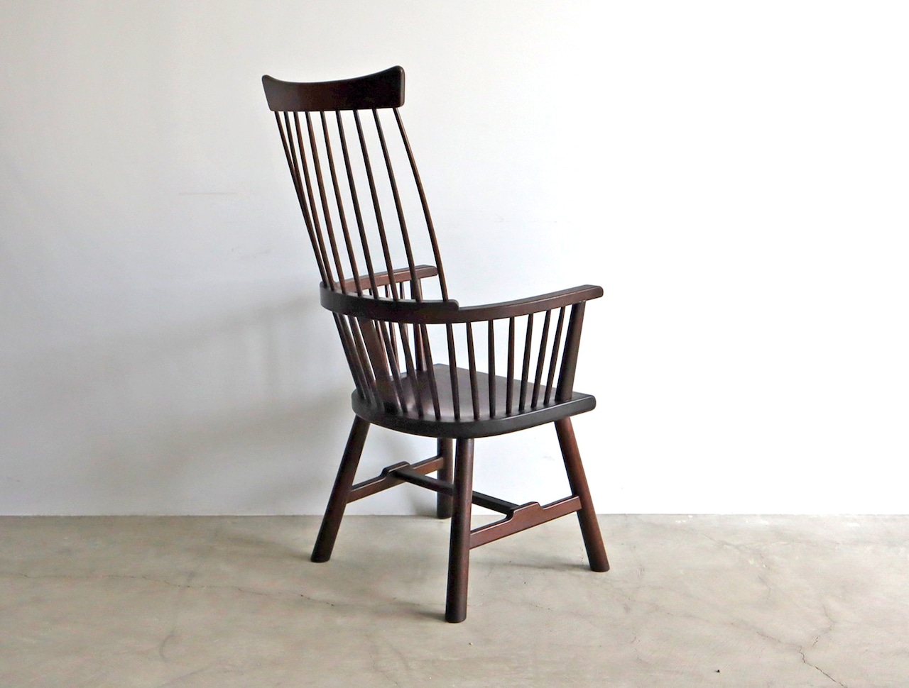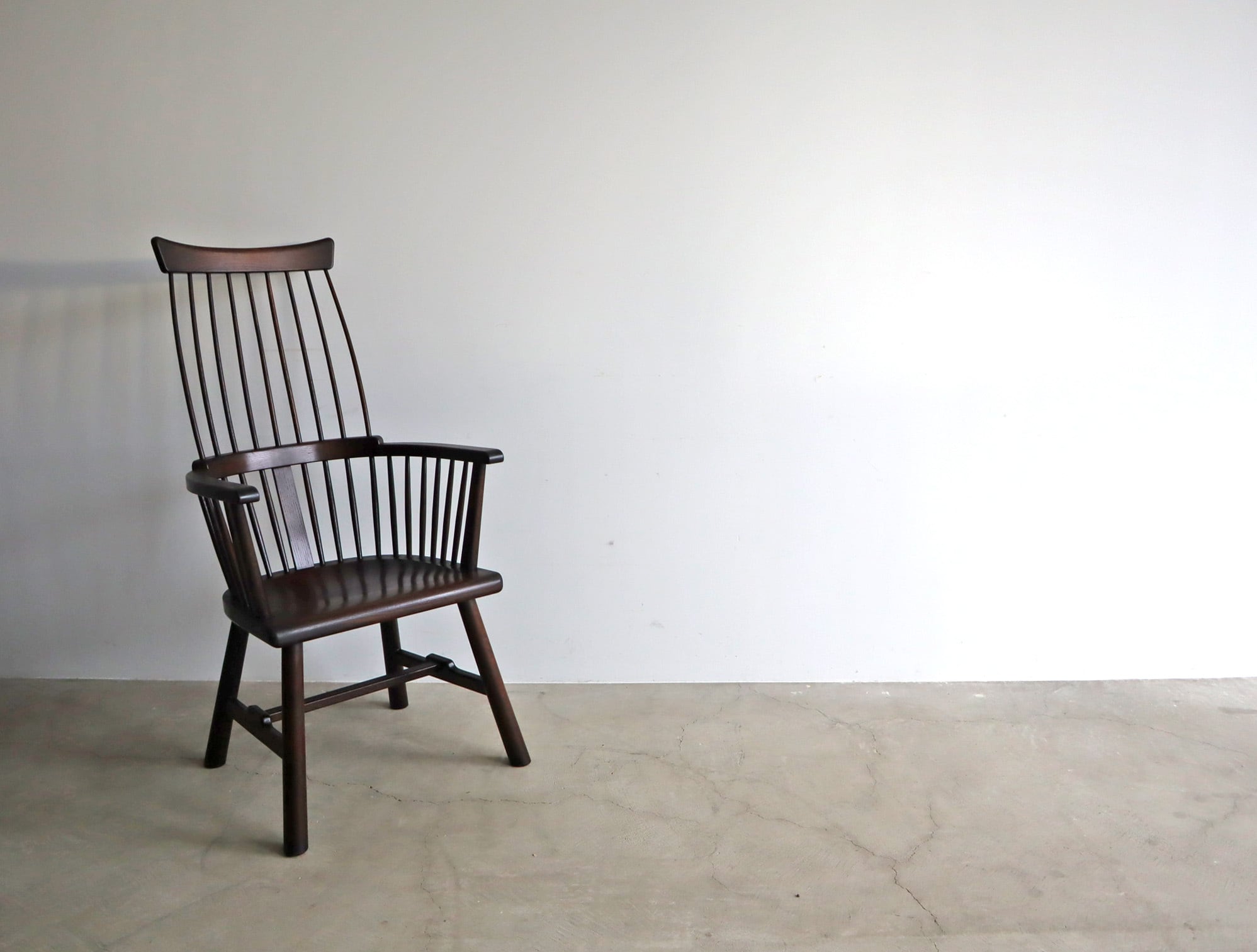 線の細い凛とした佇まいながら、座くり加工とハイバック仕様により安定感のある座り心地で、壁際で絵になるシルエットと実用性が共存する、至高の1脚です。
