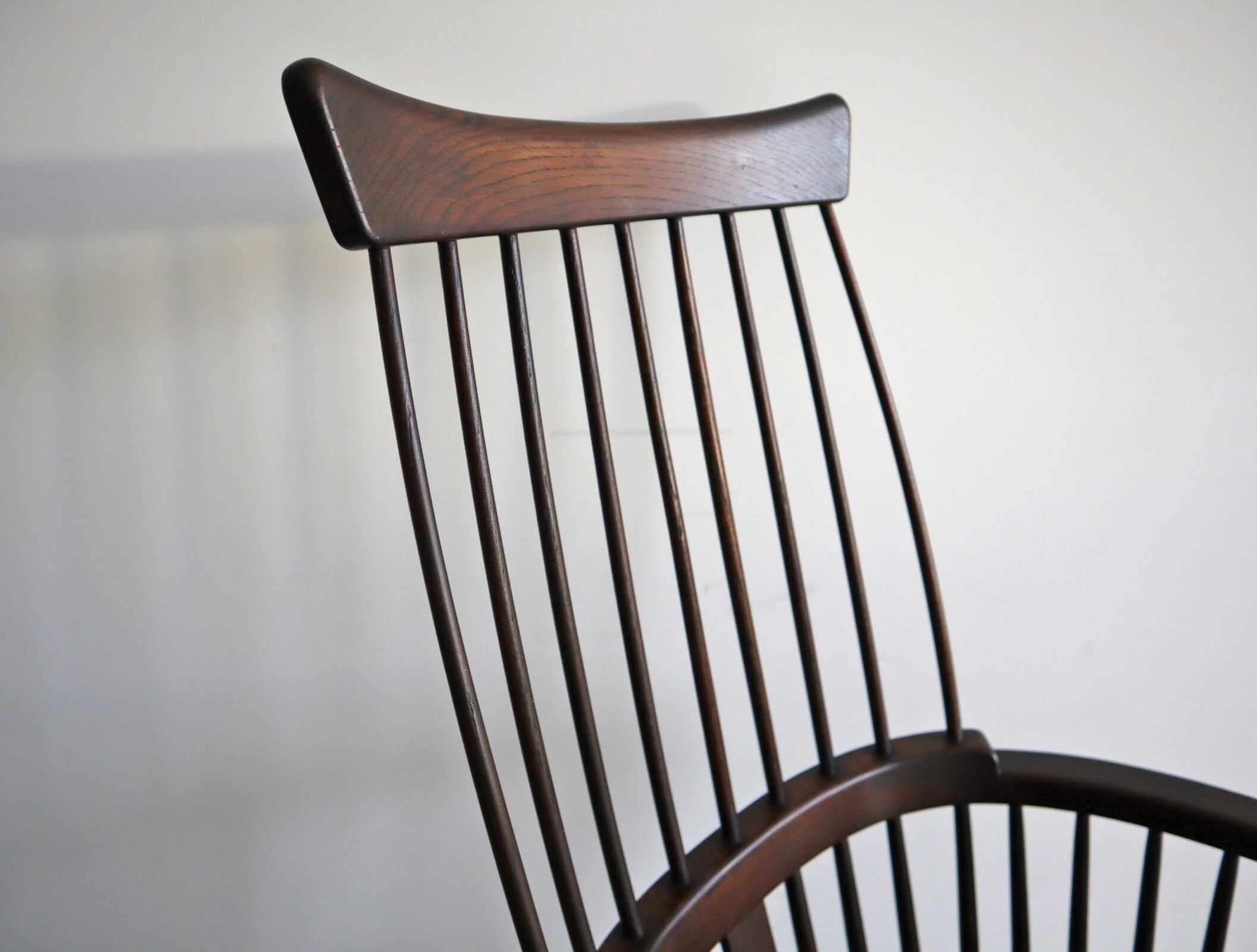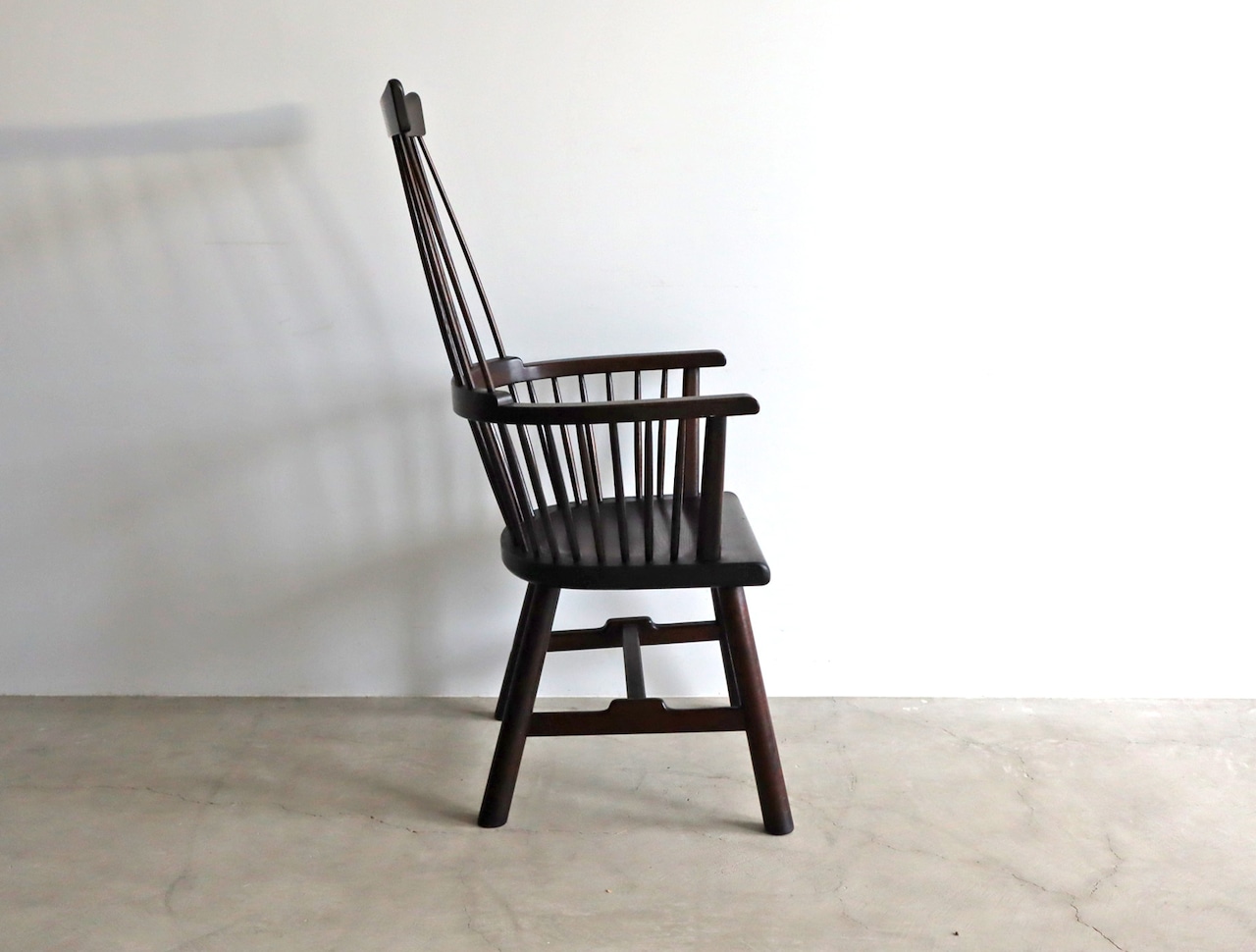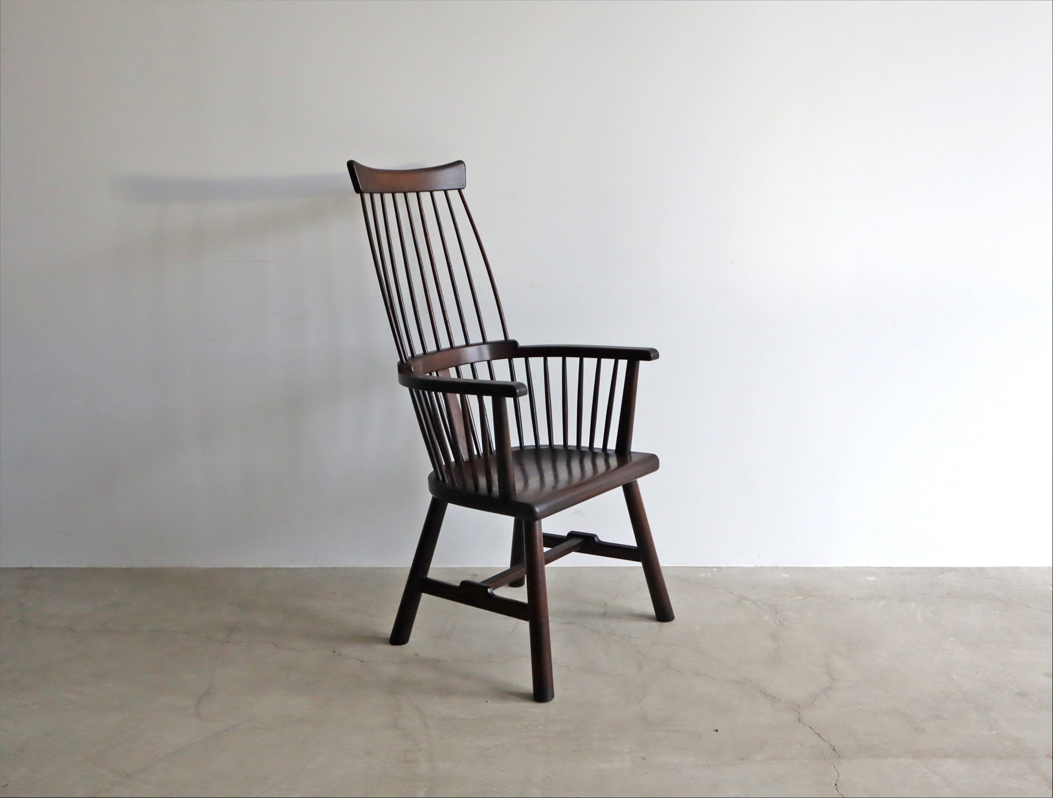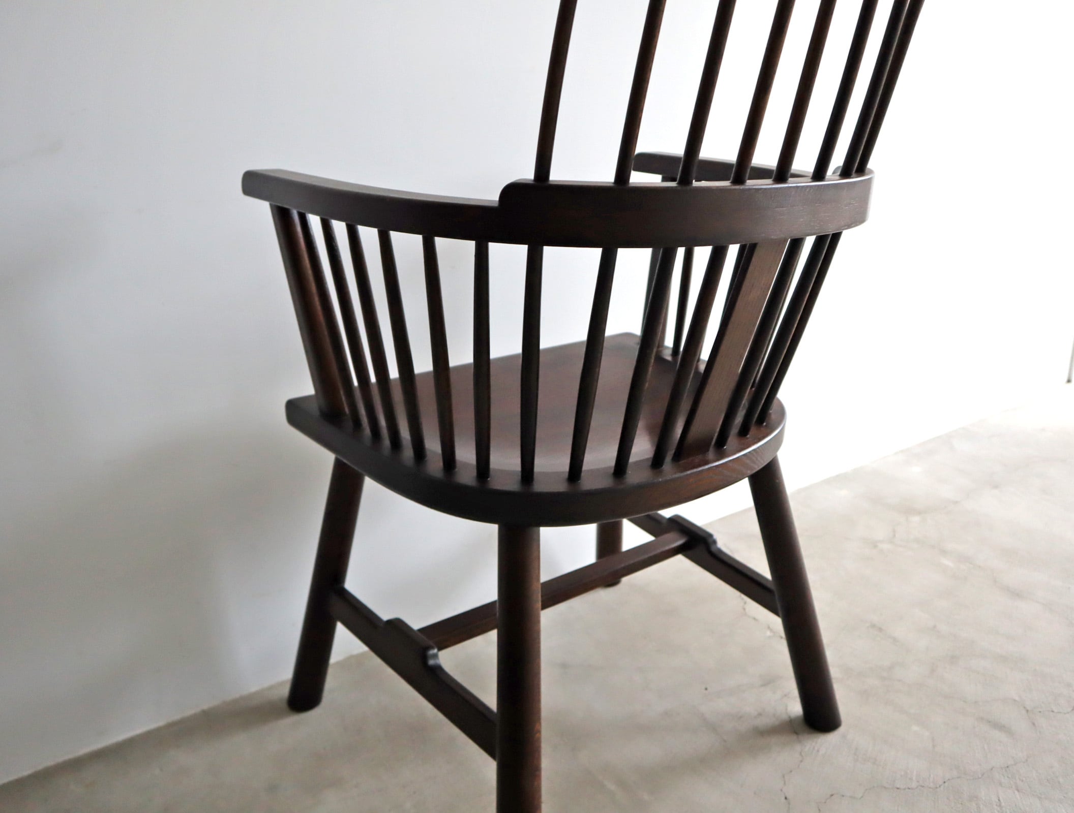 線の細い凛とした佇まいながら、座くり加工とハイバック仕様により安定感のある座り心地で、壁際で絵になるシルエットと実用性が共存する、至高の1脚です。
