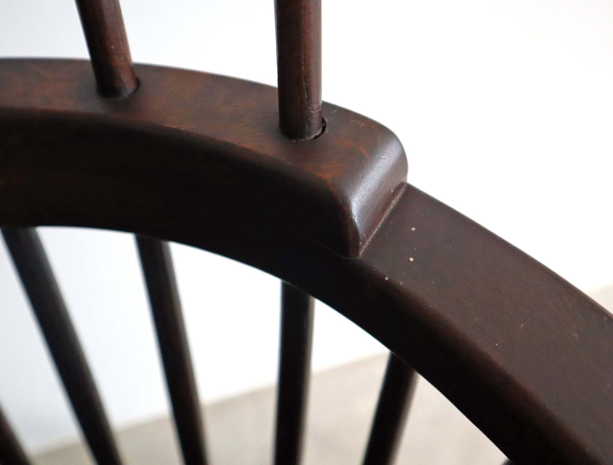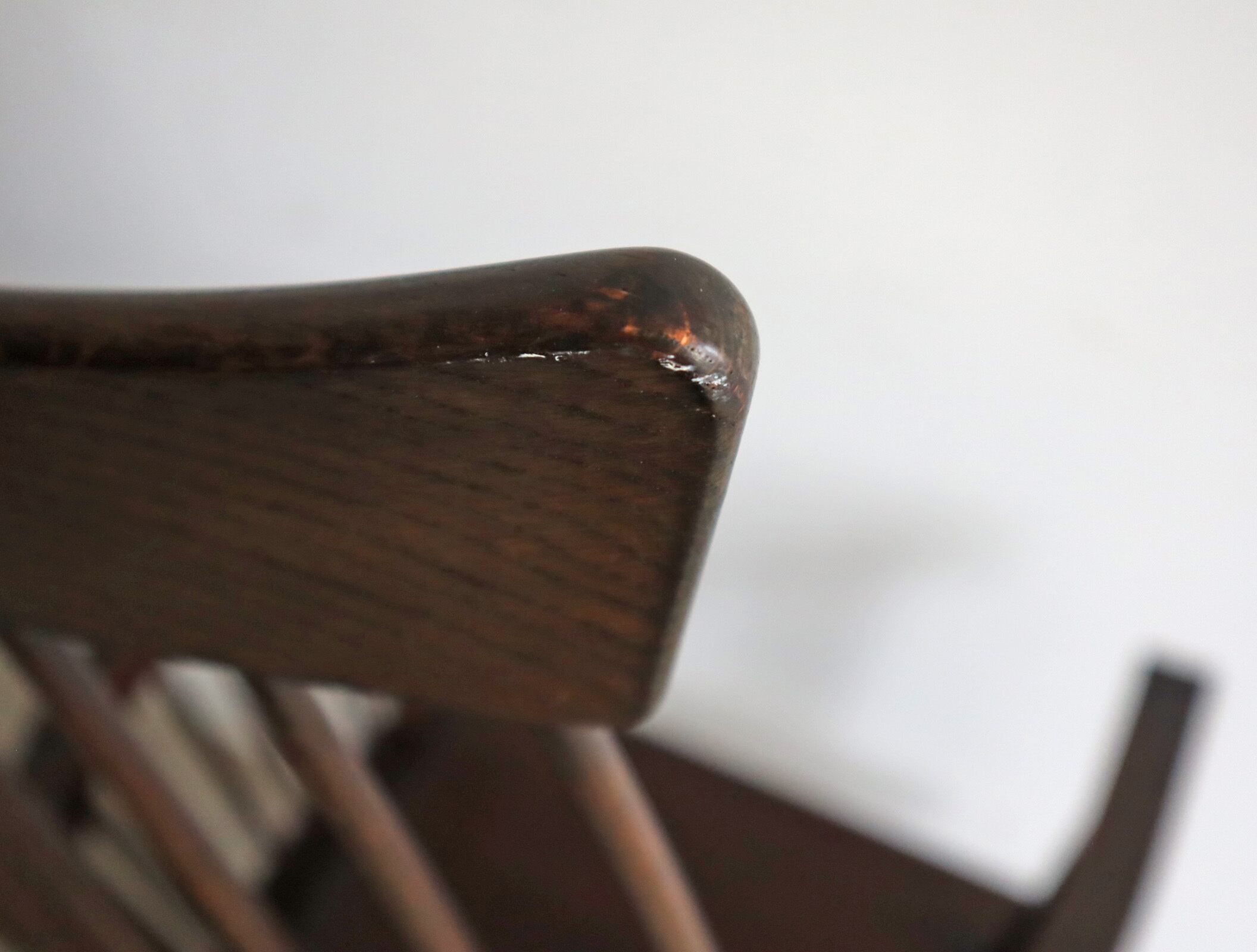 座面や笠木に傷があり、スポーク部分に経年による褪色もありますが、実用による自然な経年変化の範疇となります。