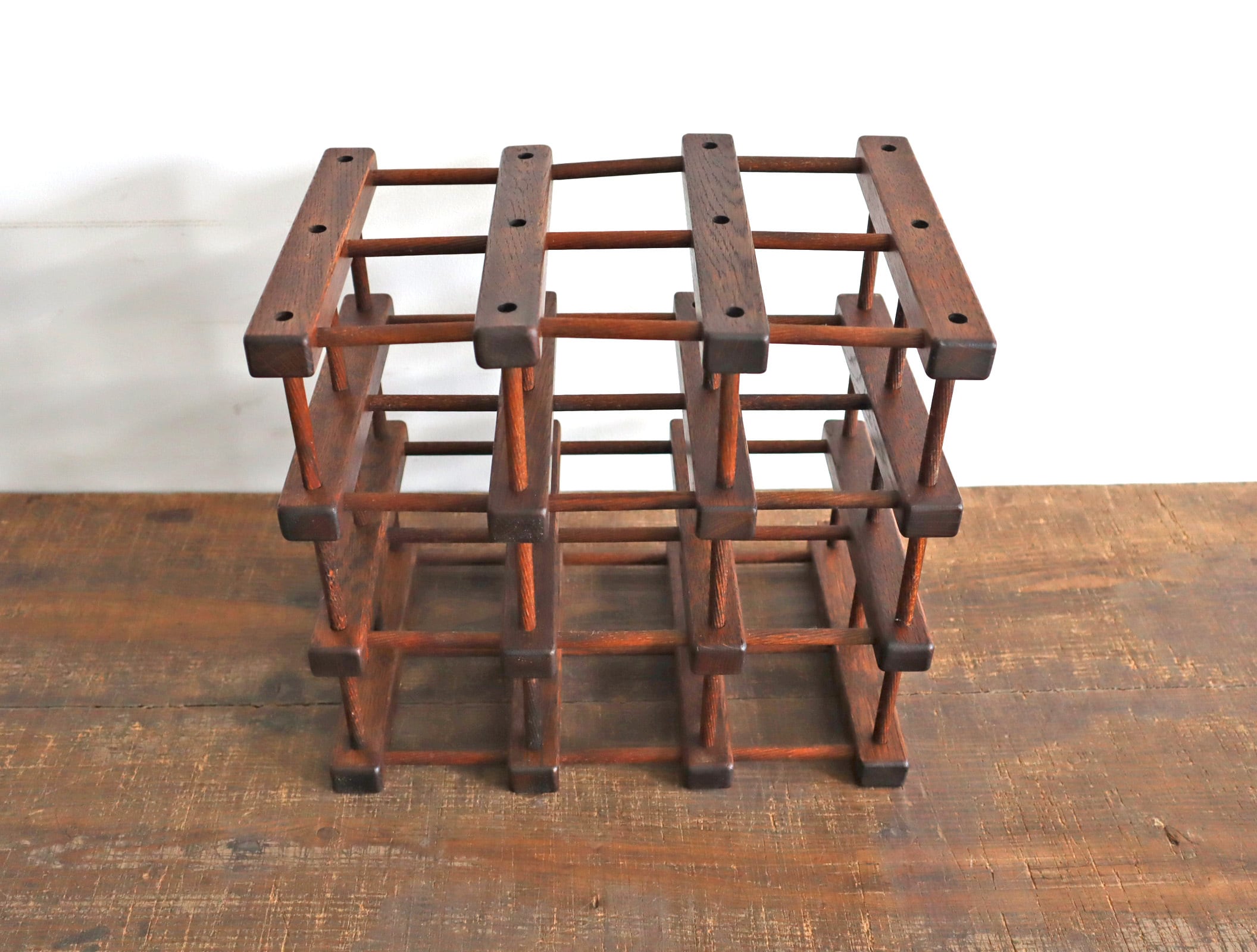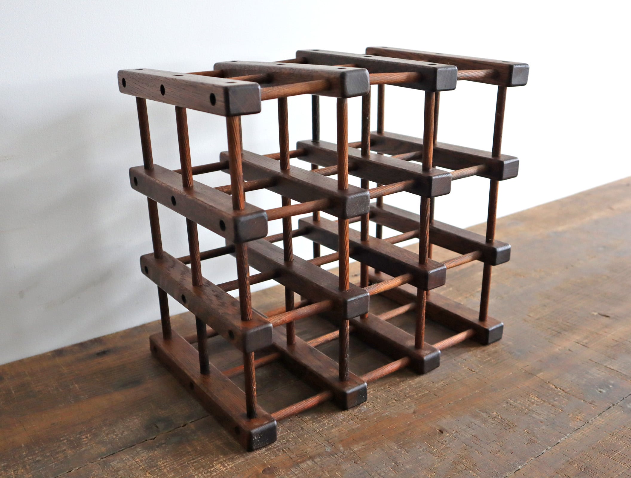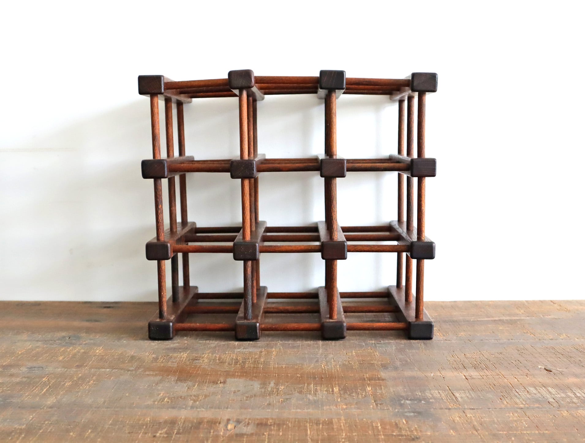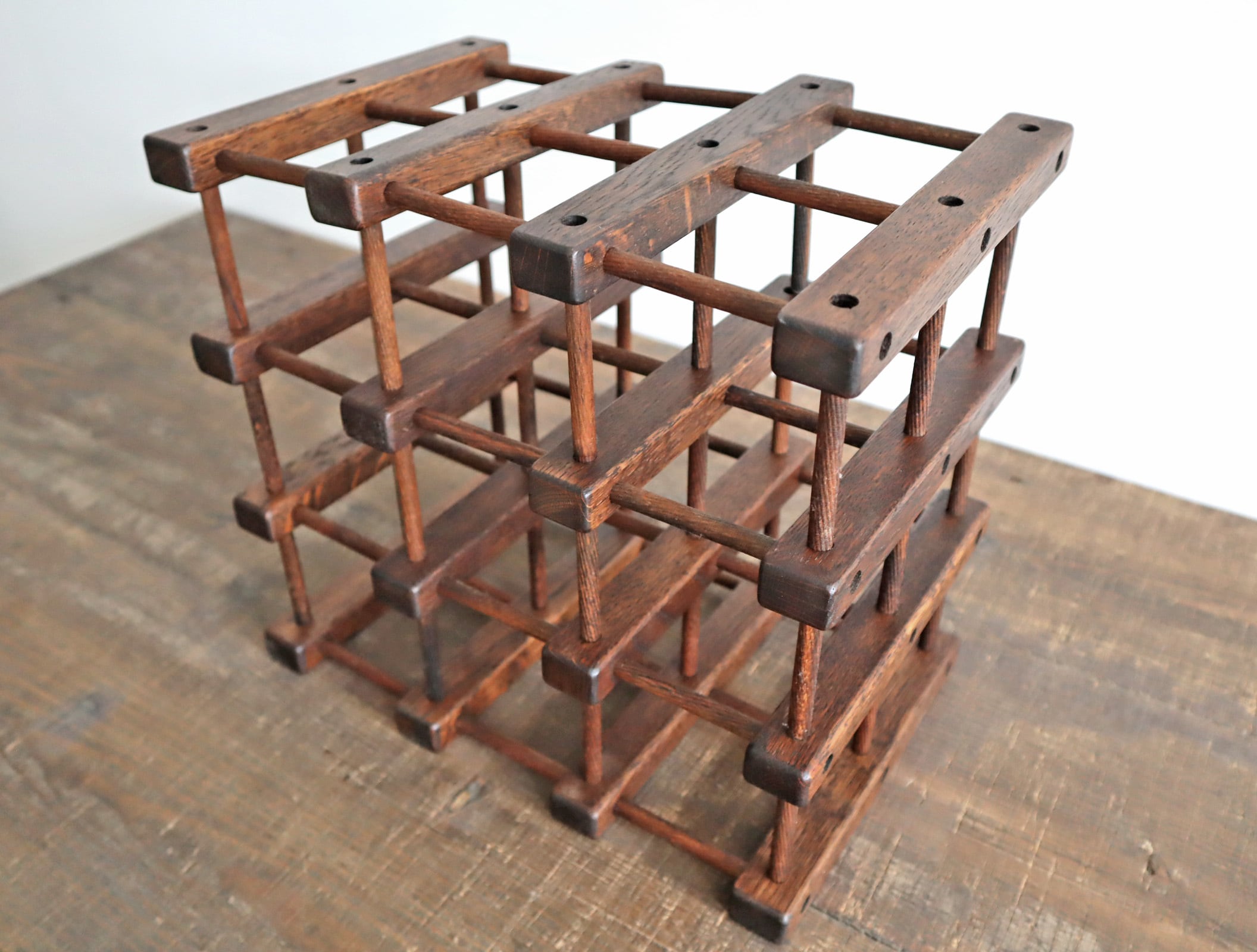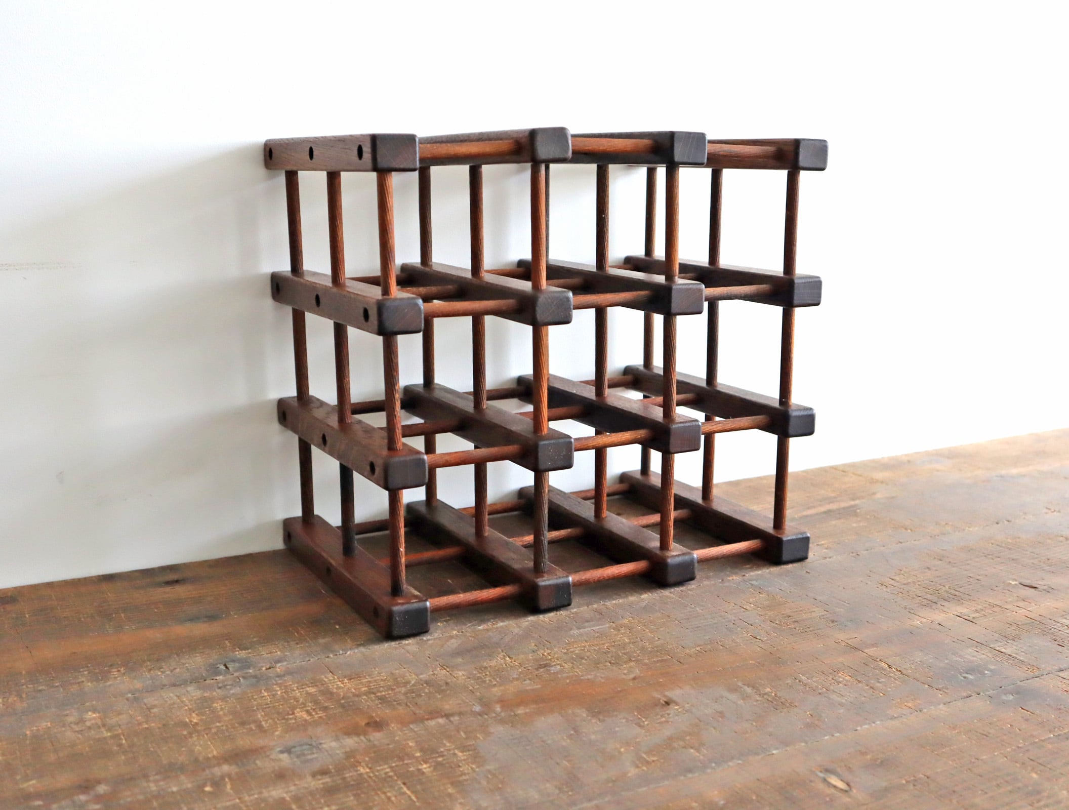 ヴィンテージの風合いが醸し出される木製のオールドワインラック。