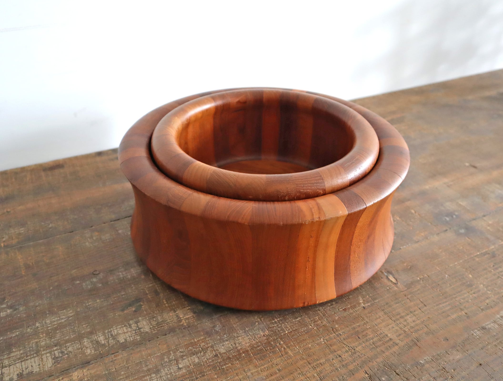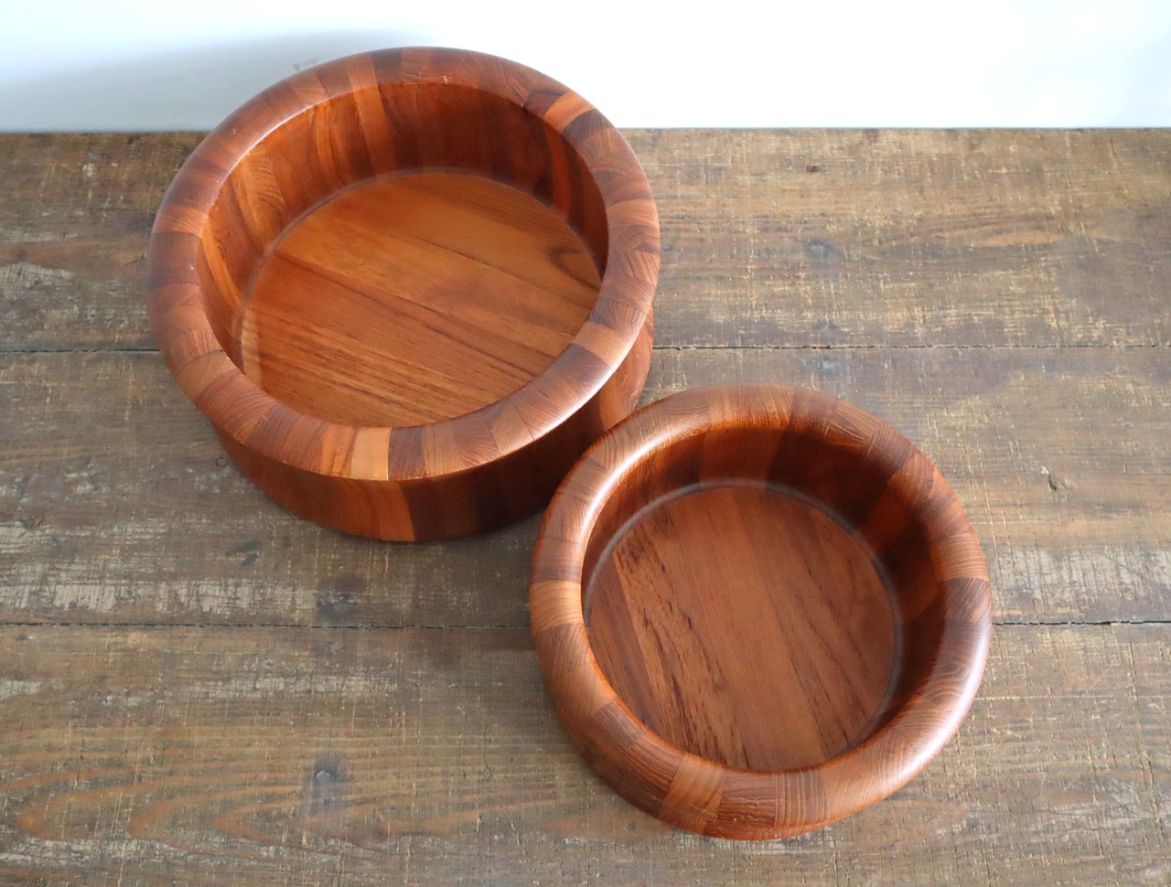 デンマーク ディグスメッド・デザインによるチーク材の美しい木目を活かして仕立てられた、木製ボウル2個セット。