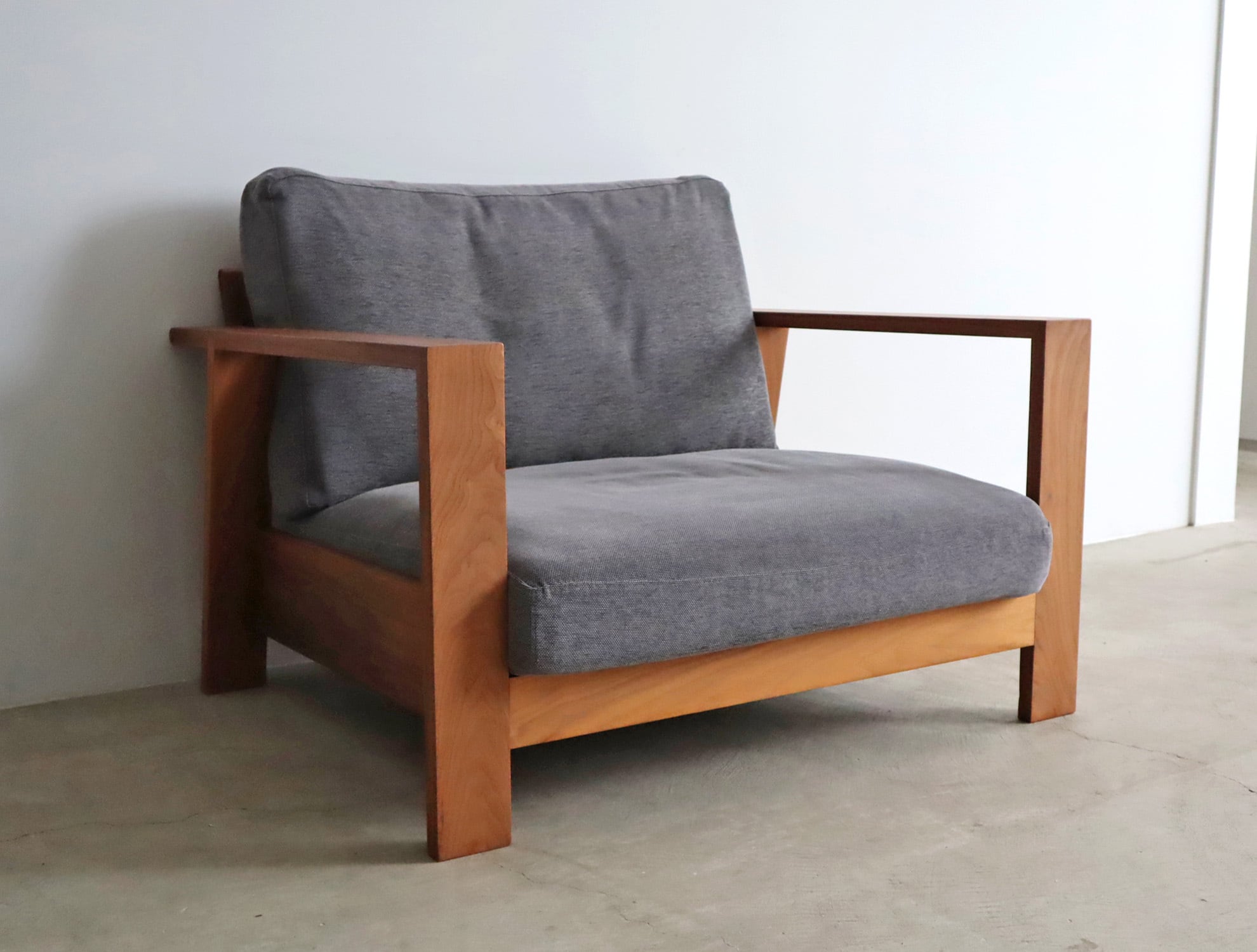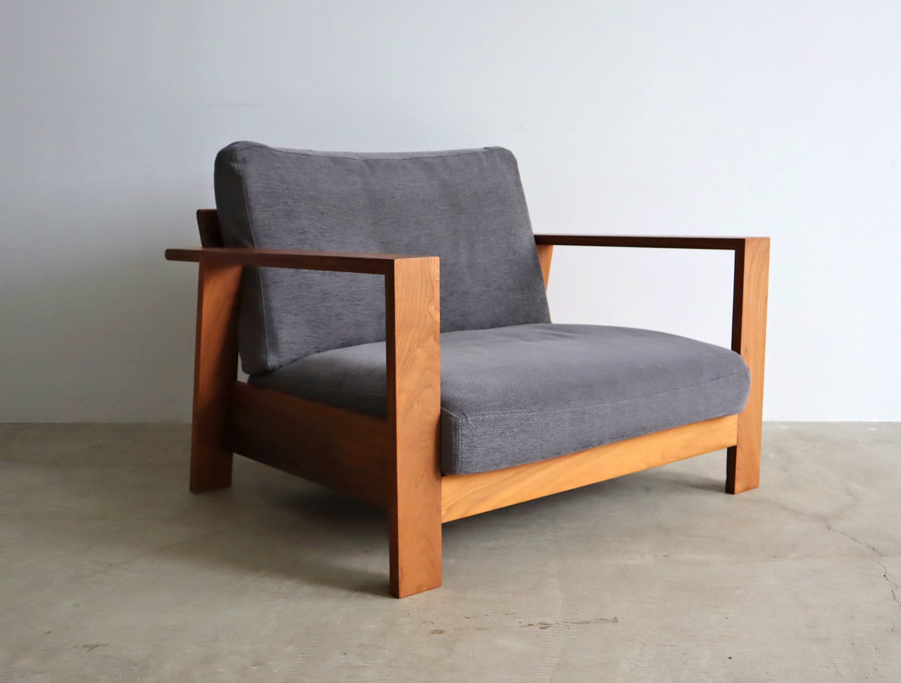 柏木工 幅広のシングルソファ ウォールナット無垢材フレーム