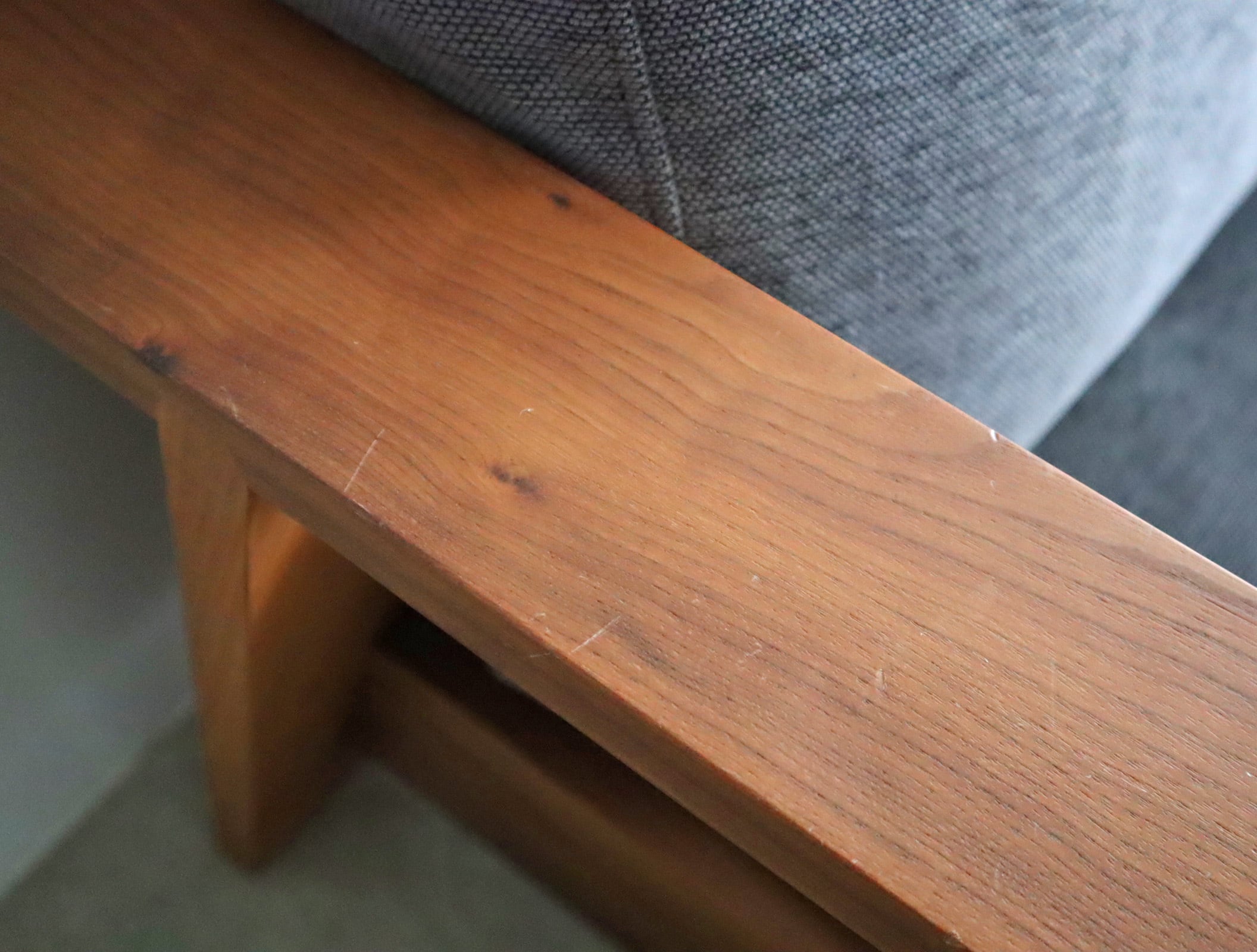 全体的に使用感が見られますが、クッションのファブリックカバーは専門業者によるドライクリーニングが完了。