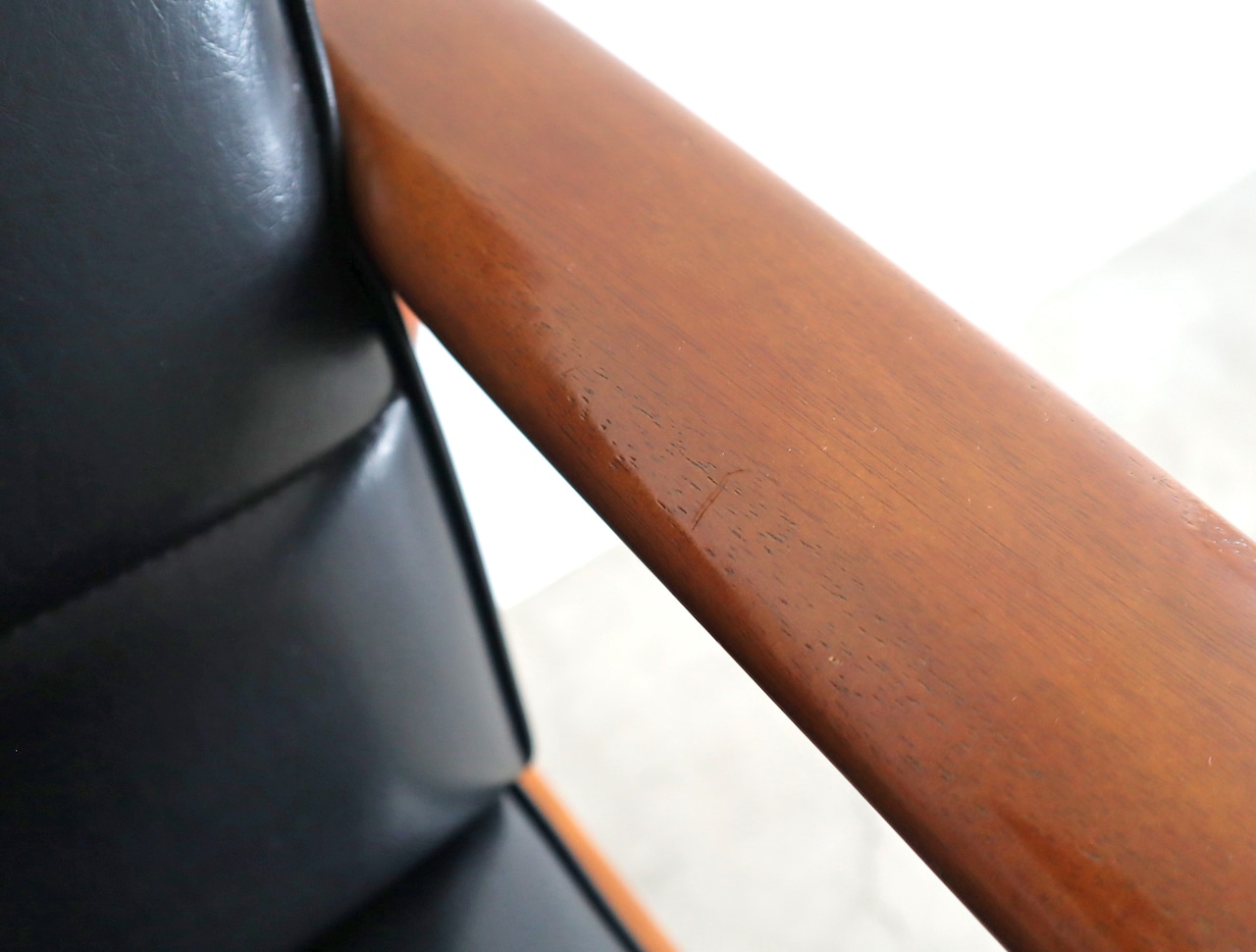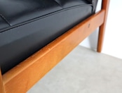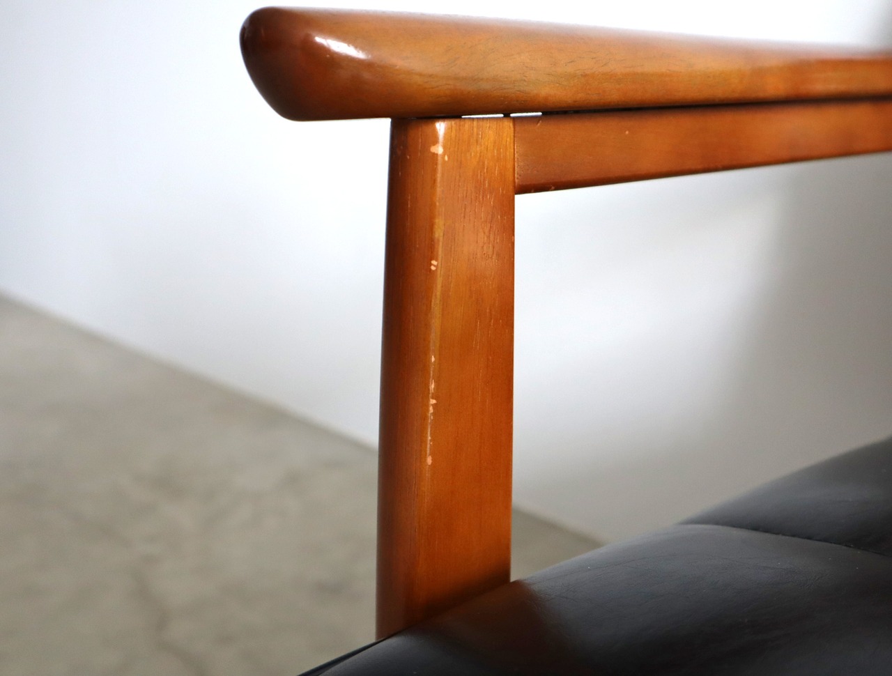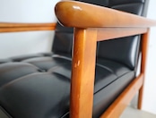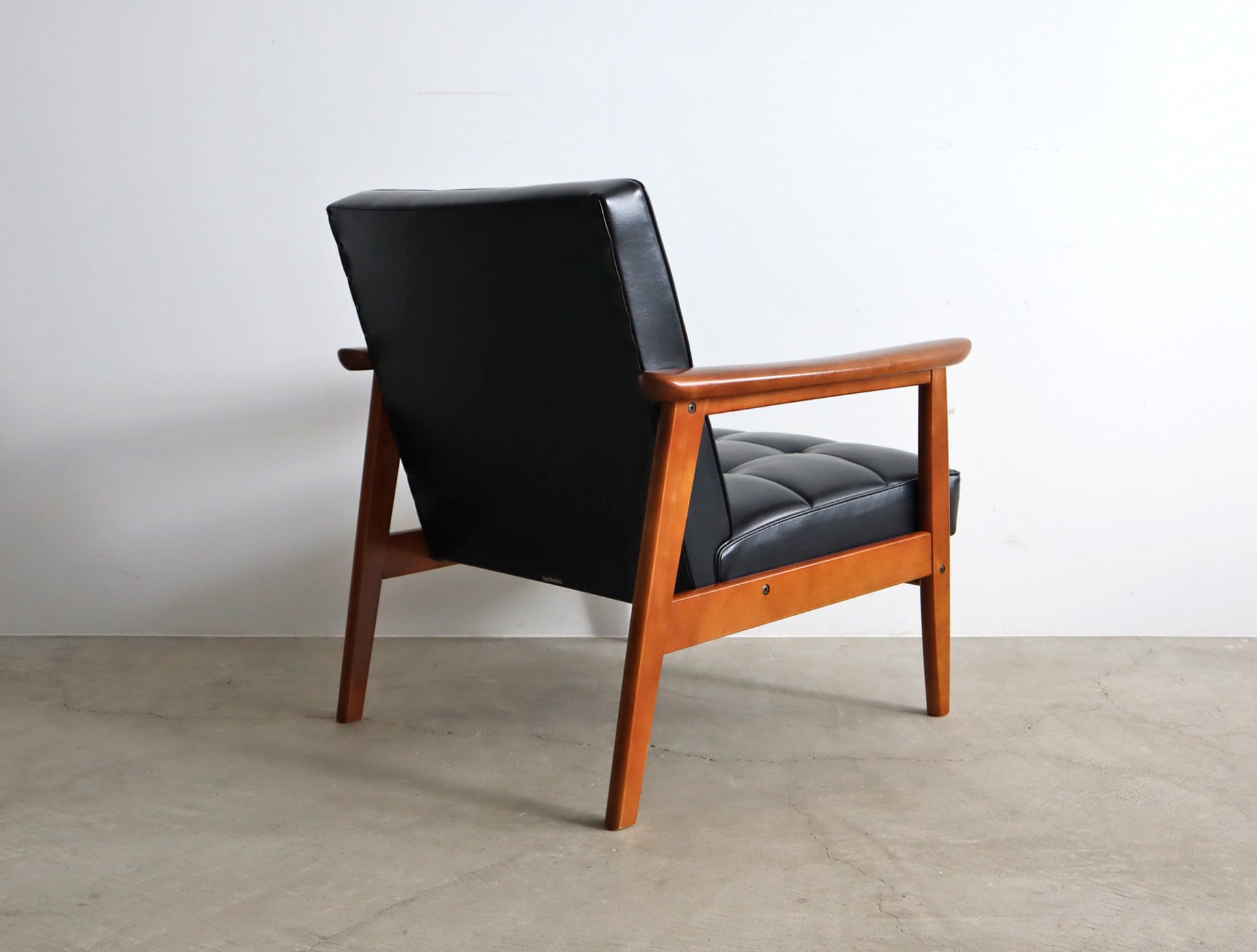 座面は当店でウレタンを交換したのちオリジナルの合成皮革を張り直してあり、座面裏のシーチングをブラックに変更済み。