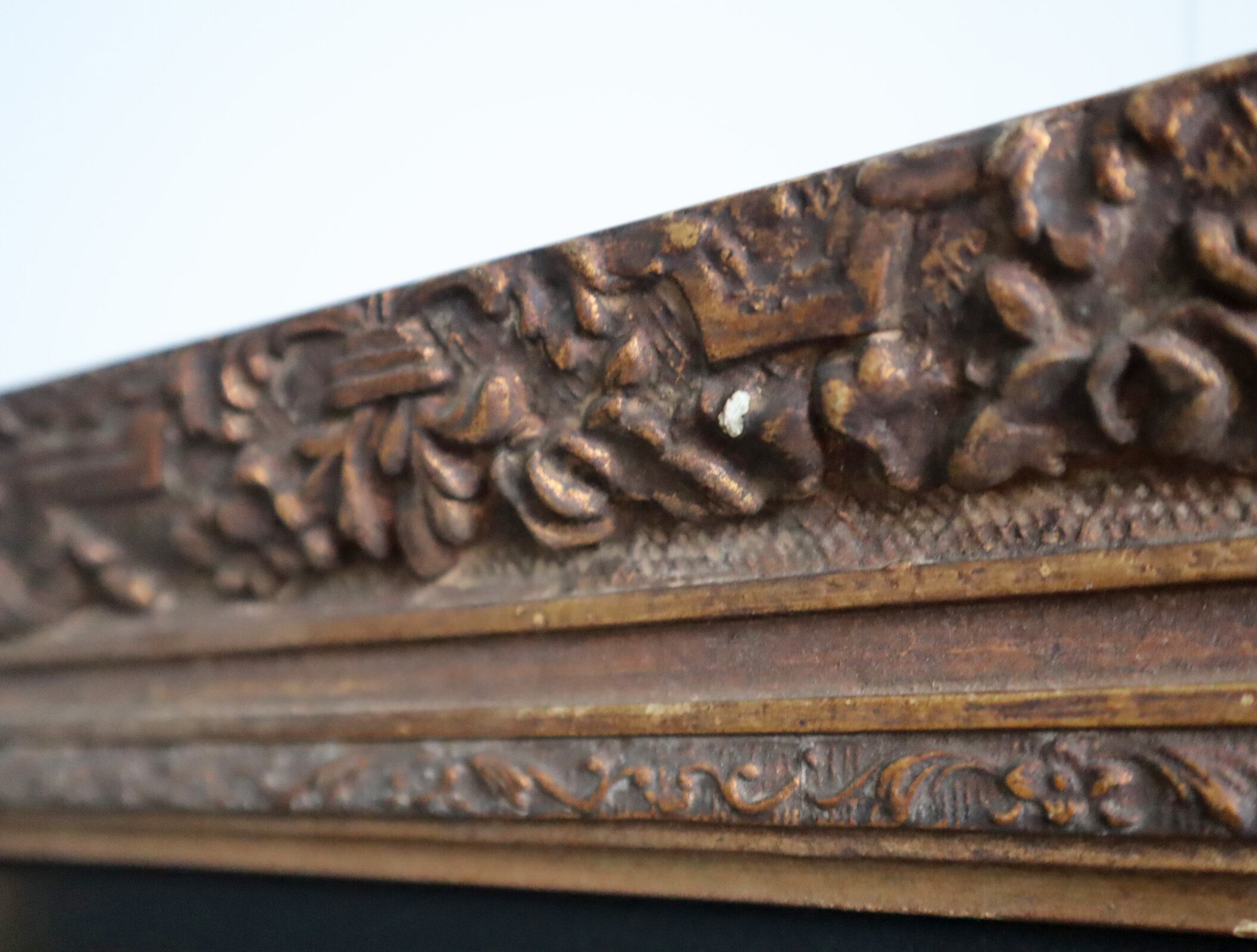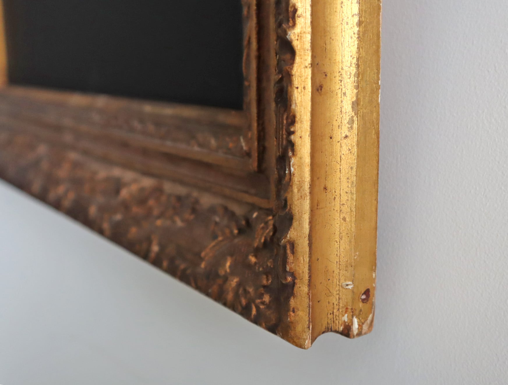 一連のシリーズ中でも最も古いアンティークフレームのため、欠け等そのままに簡易クリーニングが完了。