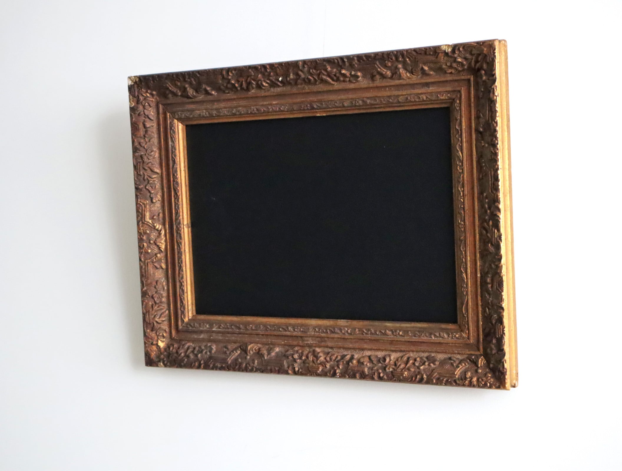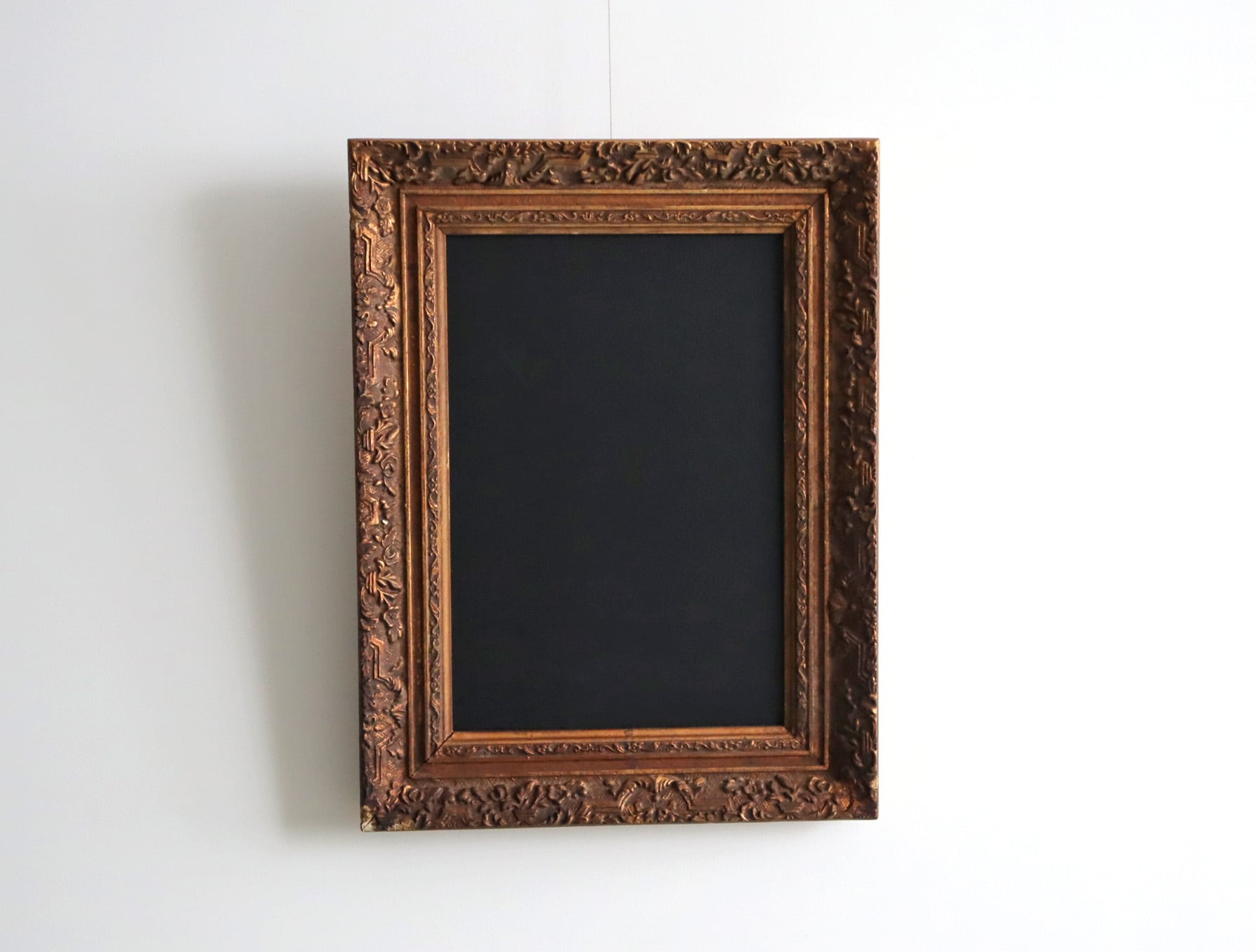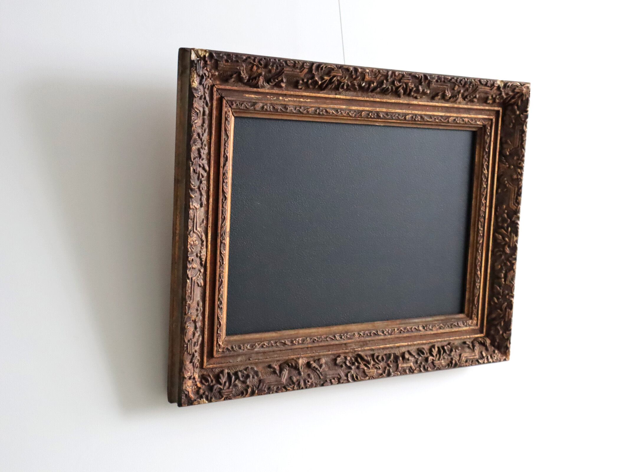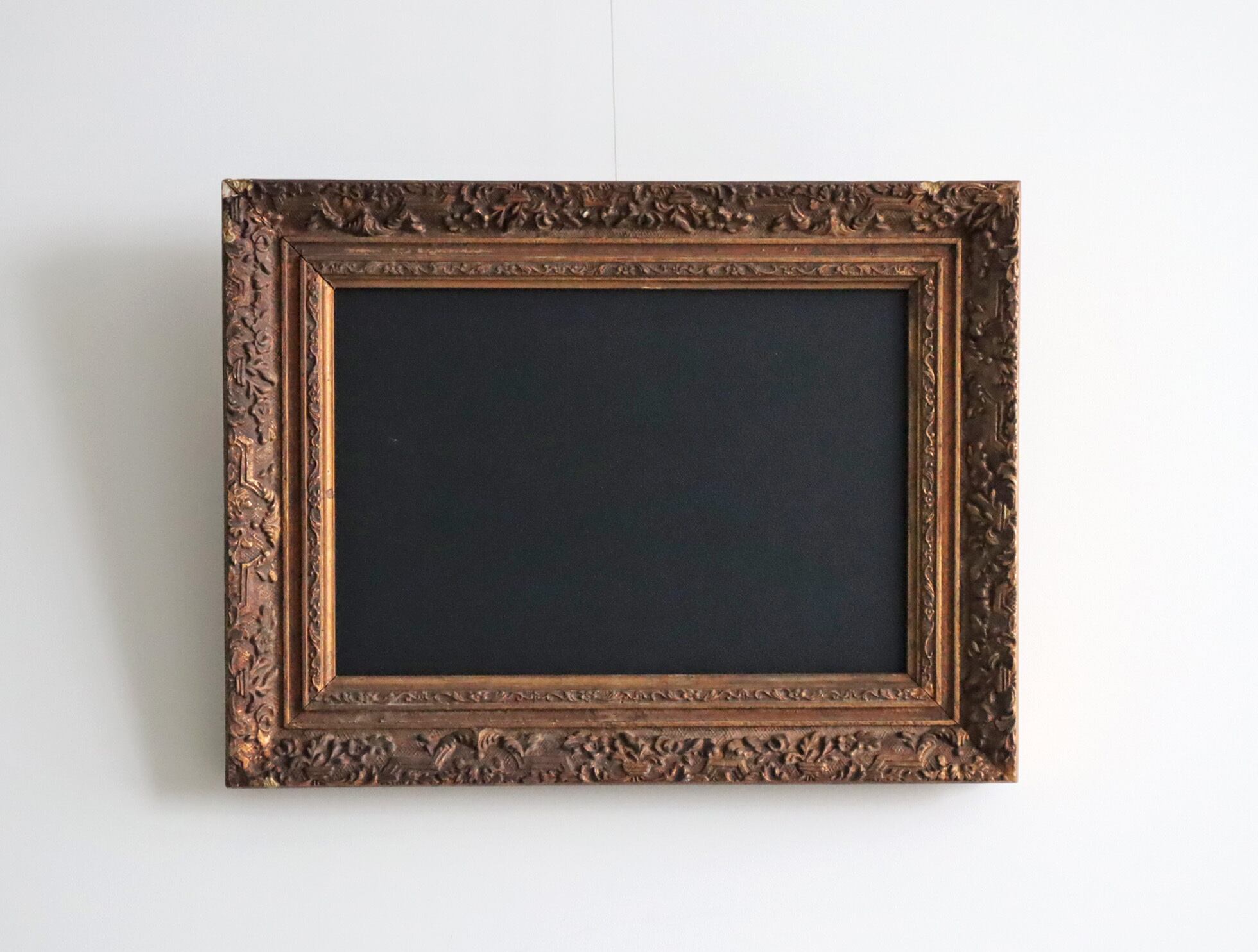 重厚なアンティークフレームに、あえて黒板を組み合わせたリメイクアイテムです。