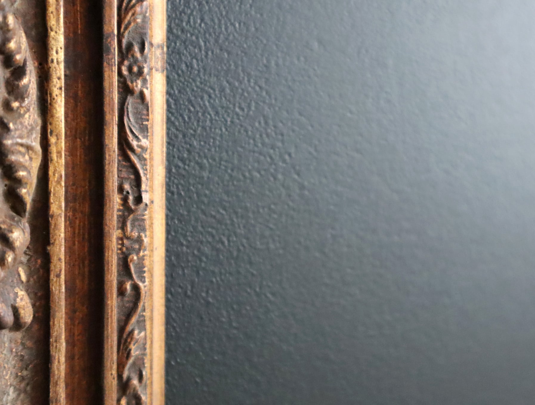 装飾性の高い彫刻フレームが持つクラシカルな存在感と、黒板の素朴で実用的な表情。そのコントラストが、空間にほどよい緊張感と遊び心をもたらします。