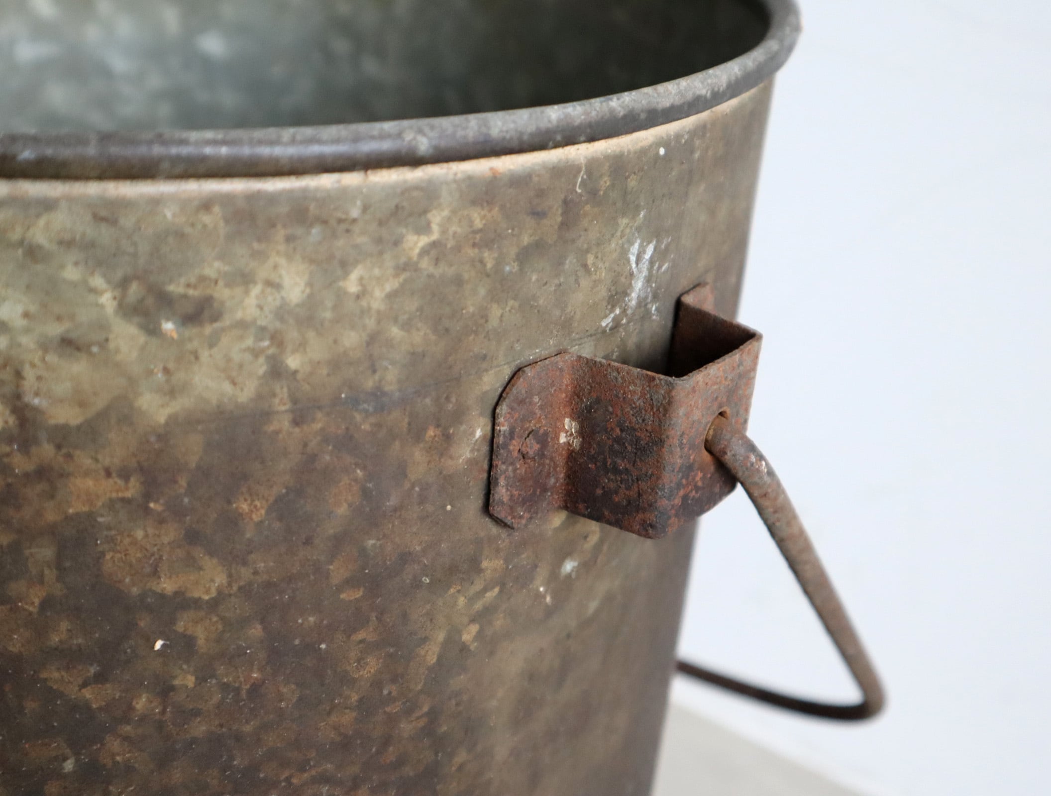長い年月を経て辿り着いた、無骨で静かな存在感を放つヴィンテージのブリキバケツ。