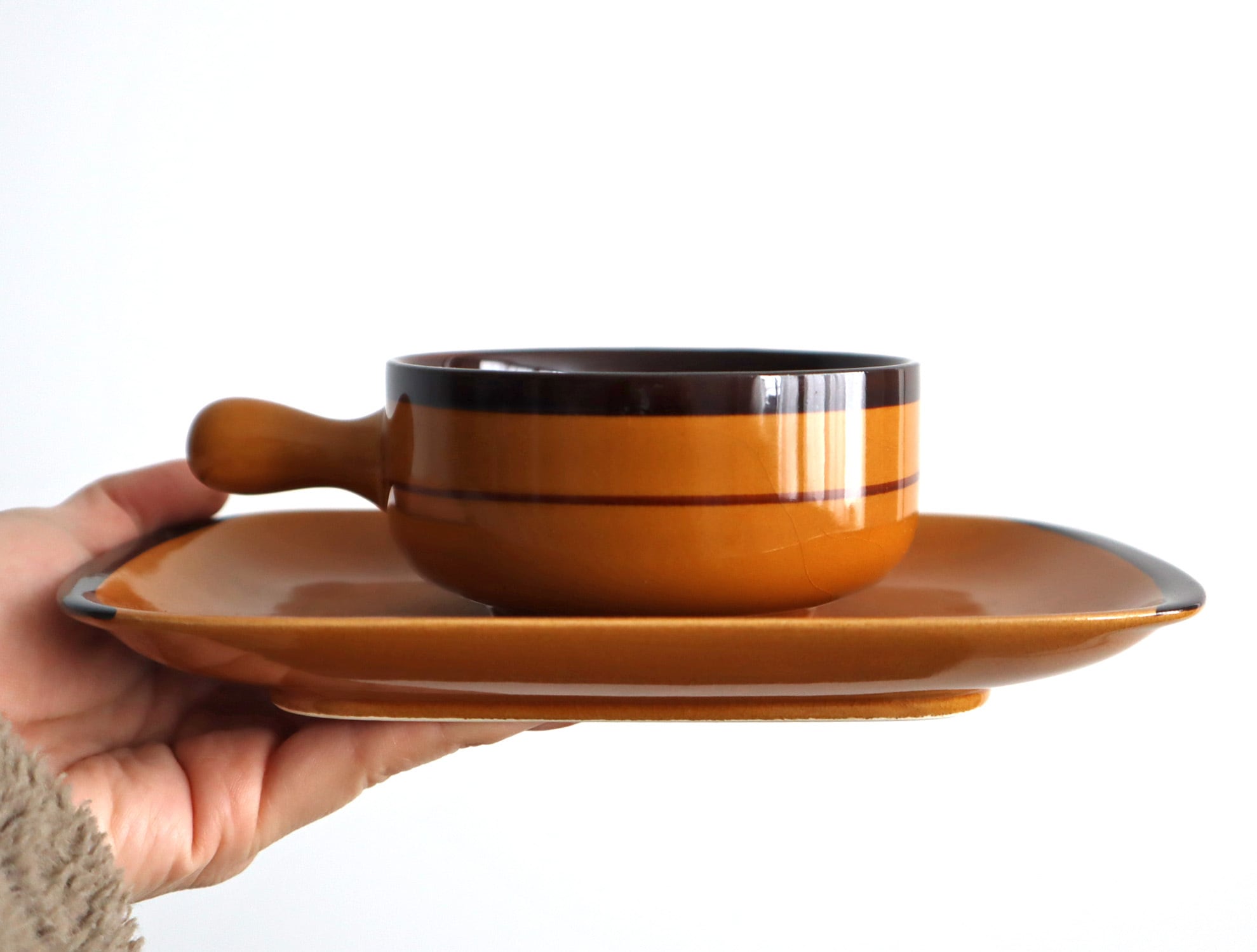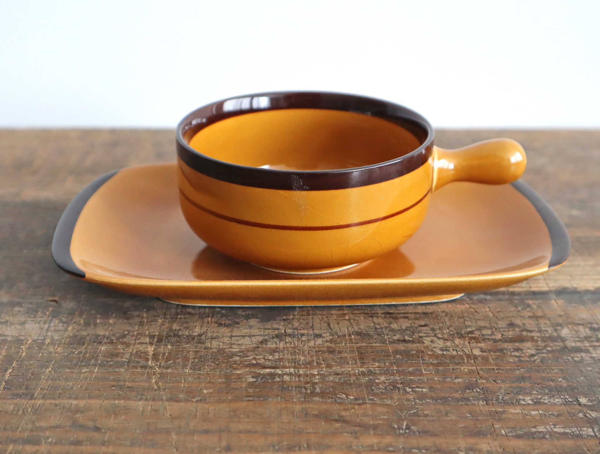 持ち手付きで扱いやすく、ソーサーは鍋敷きや受け皿としても活躍。