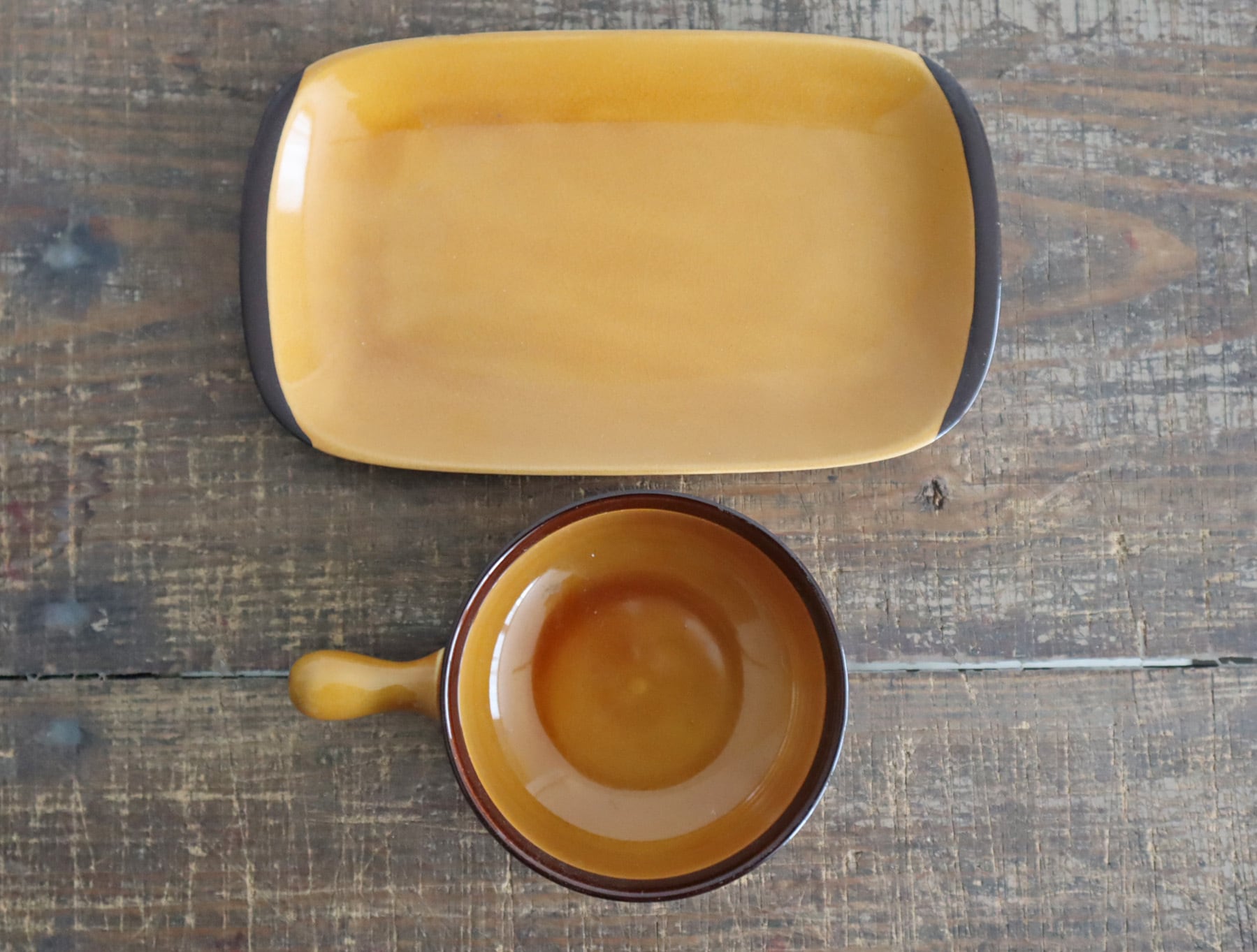 温もりのある飴色の釉薬が美しい、ヴィンテージのグラタン皿です。