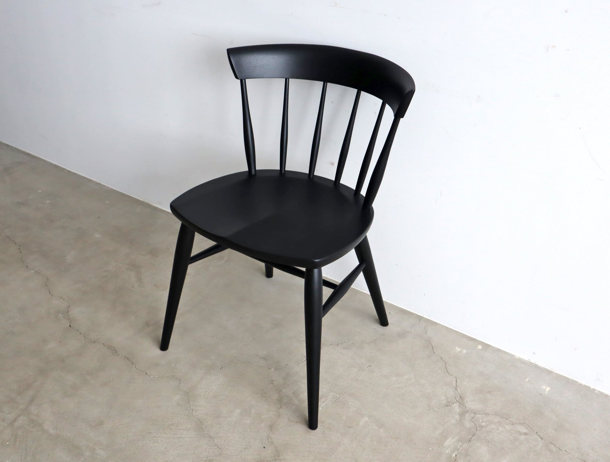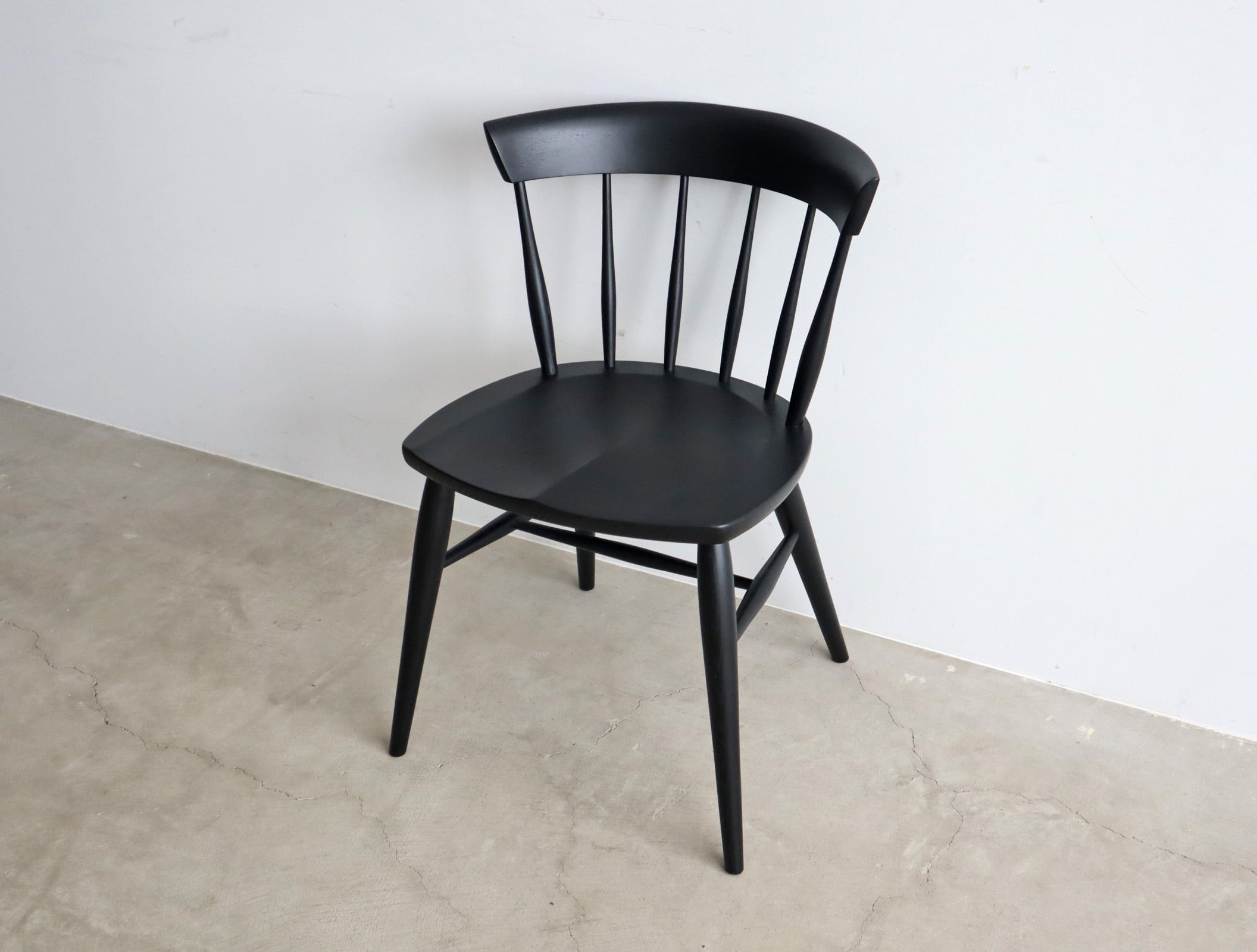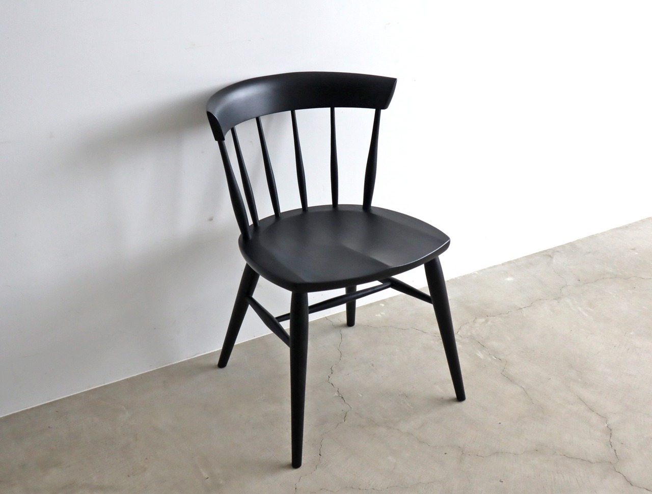 マットブラックで仕上げられた木部は、クラシックなウィンザーチェアの輪郭を引き締め、モダンな空間にも溶け込む佇まいに。ダイニングはもちろん、デスクチェアやアクセントチェアとしても使える、汎用性の高いデザインです。