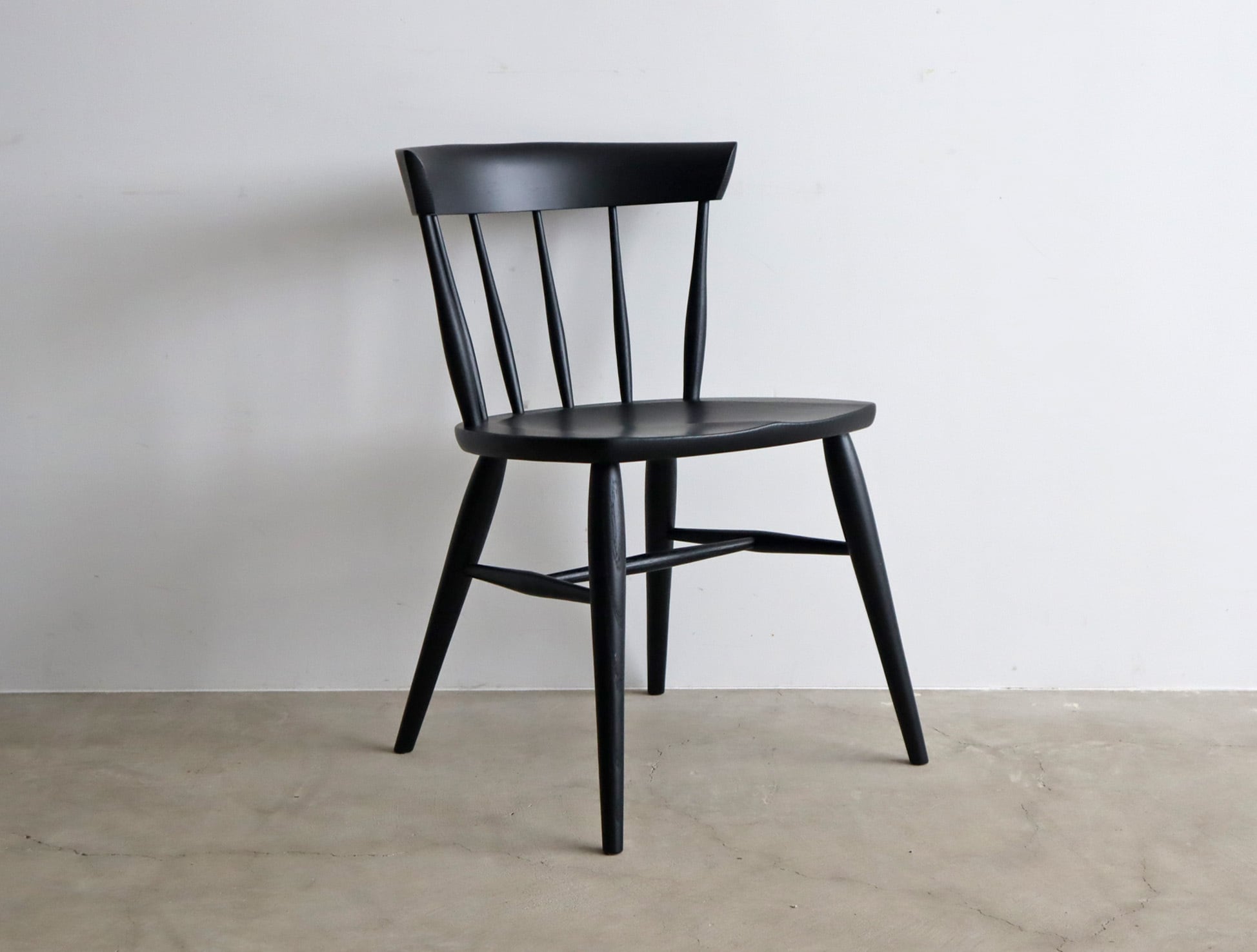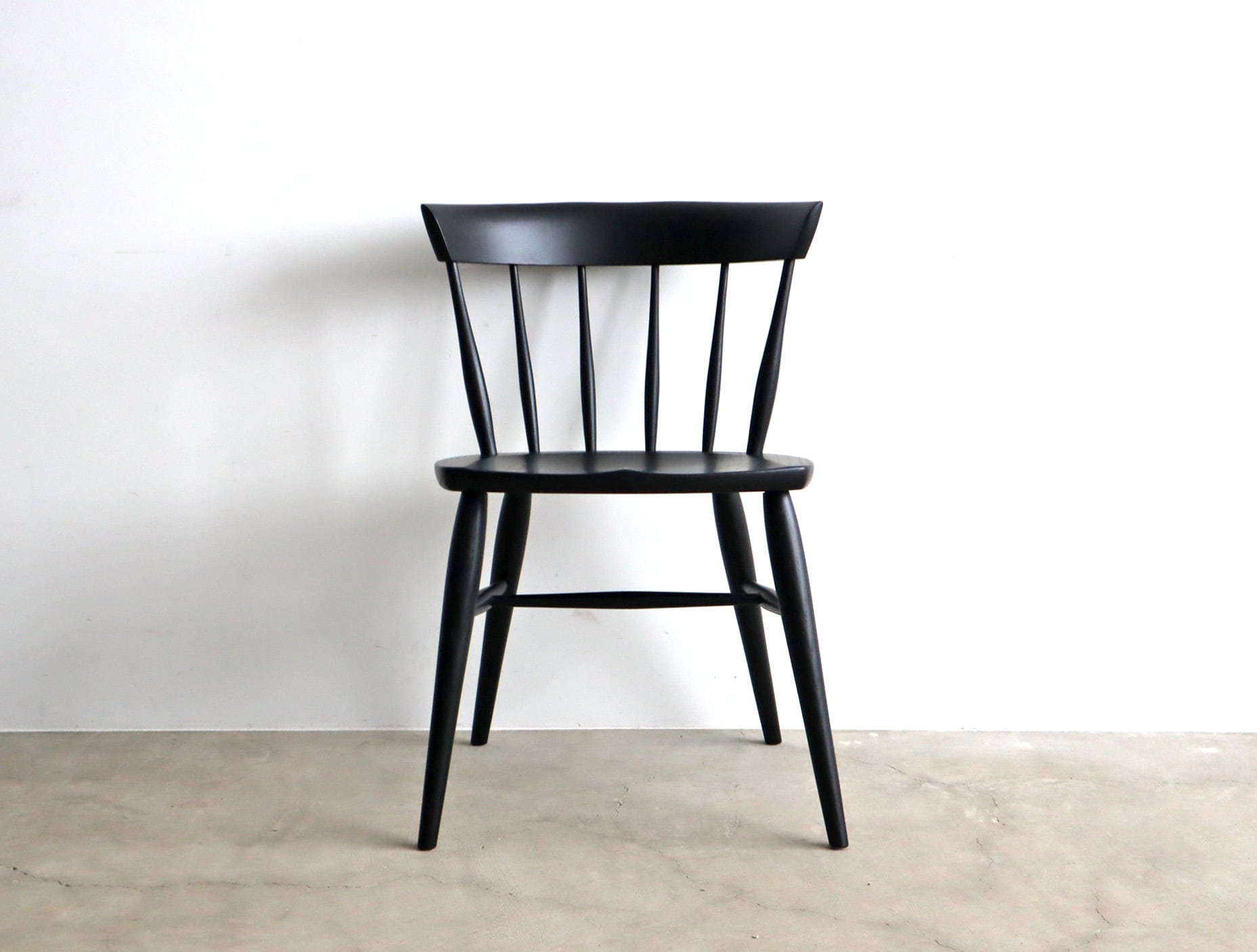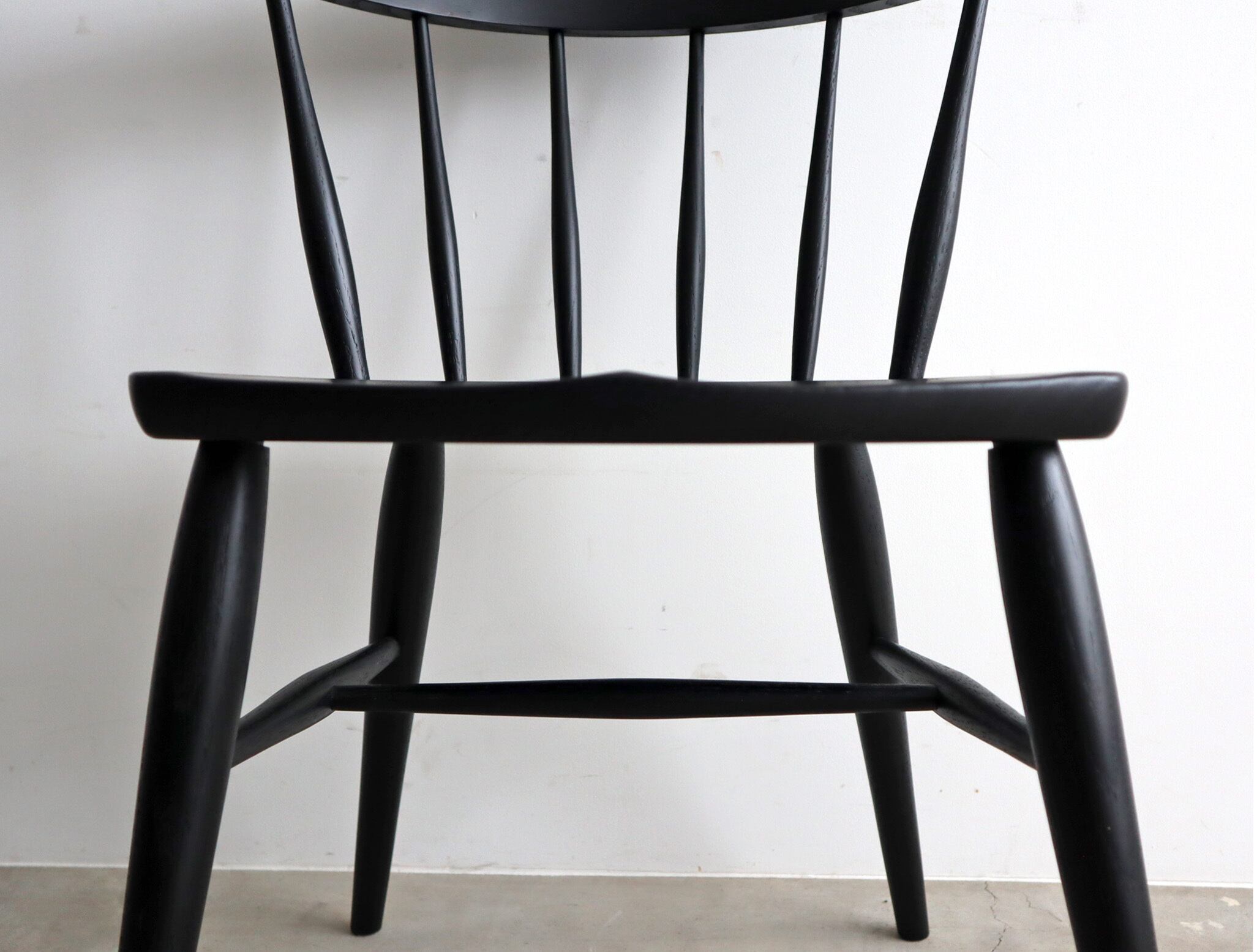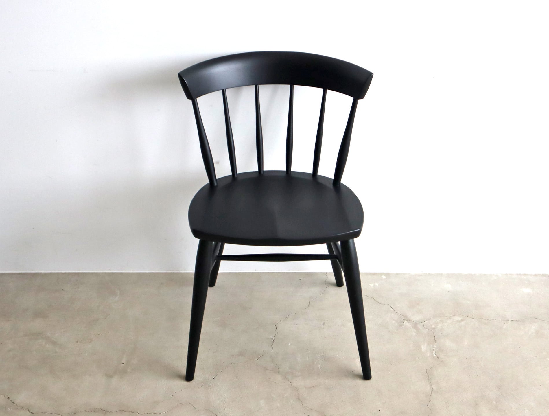 マットブラックで仕上げられた木部は、クラシックなウィンザーチェアの輪郭を引き締め、モダンな空間にも溶け込む佇まいに。ダイニングはもちろん、デスクチェアやアクセントチェアとしても使える、汎用性の高いデザインです。