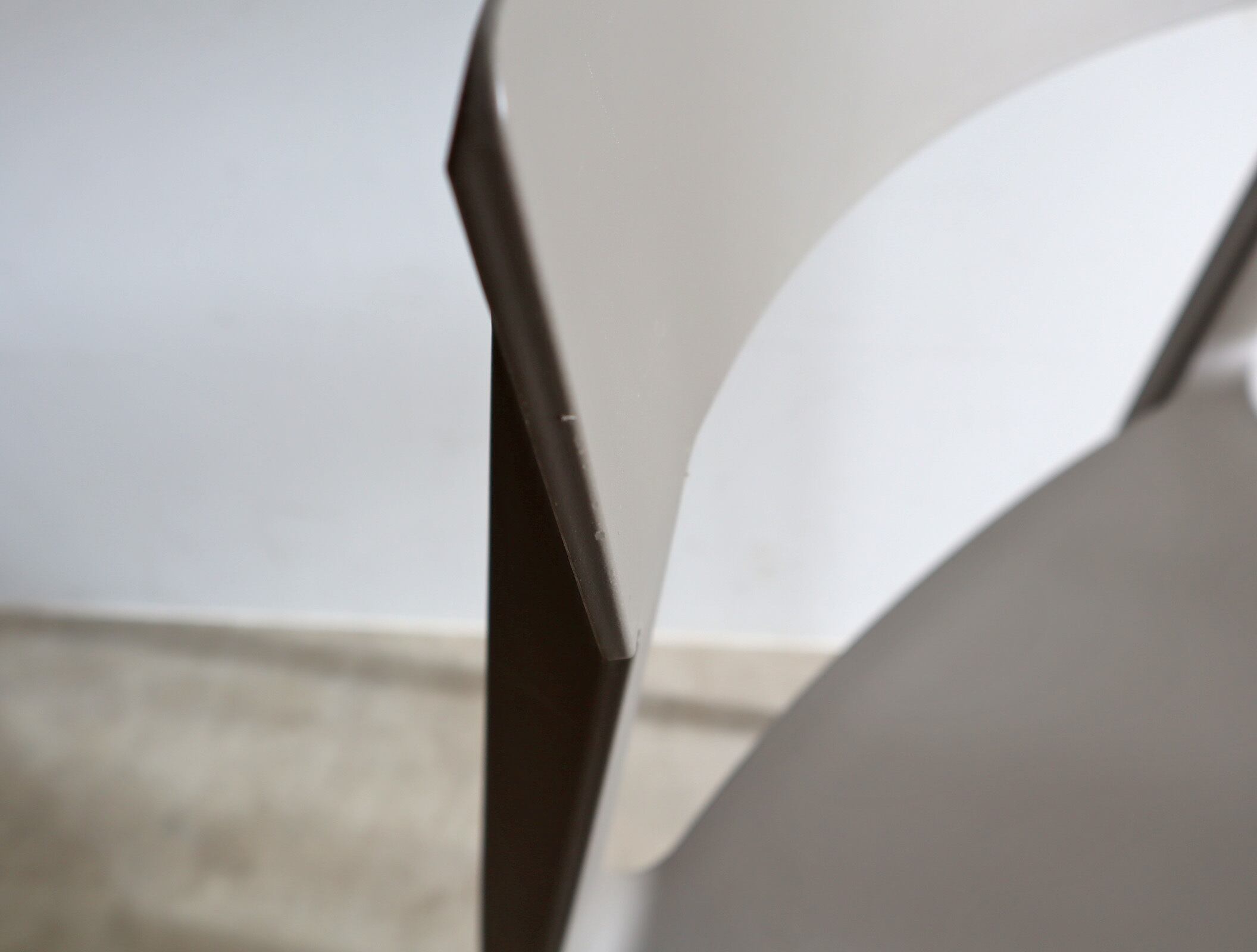 繋ぎ目のない滑らかな手触りのスタッキングチェアSKIN (スキン)は、無駄を削ぎ落としてエッジのあるミニマルなデザインが人気となっています。