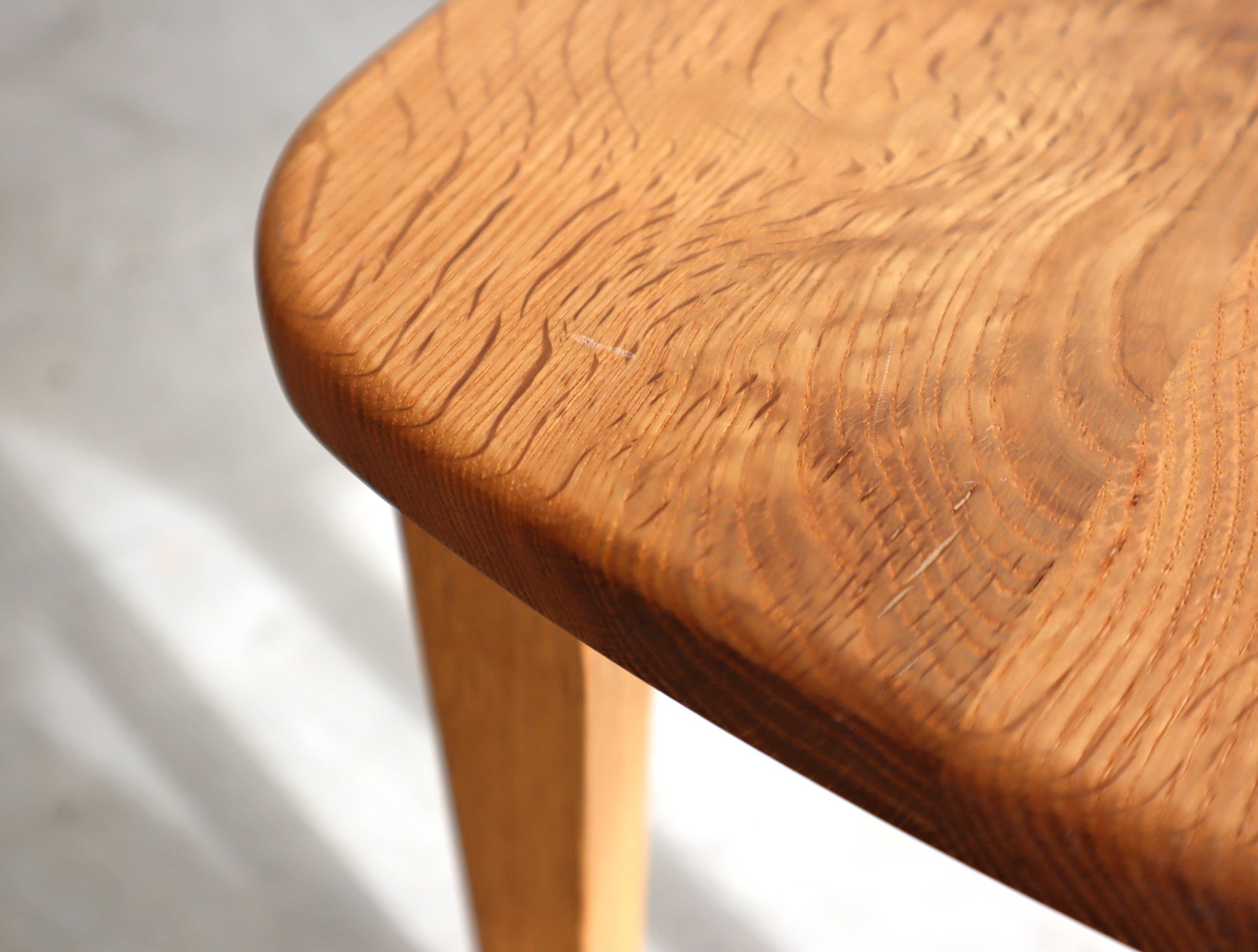 なだらかに面取りされた座面と、すっと伸びる脚部。視覚的に軽やかでありながら、しっかりとした安定感を備え、ダイニングベンチとしても、玄関や廊下の腰掛けとしても、美しく空間に馴染み、無垢材の木目や節の表情は一脚ごとに異なり、使い込むほどに艶と深みを増していきます。