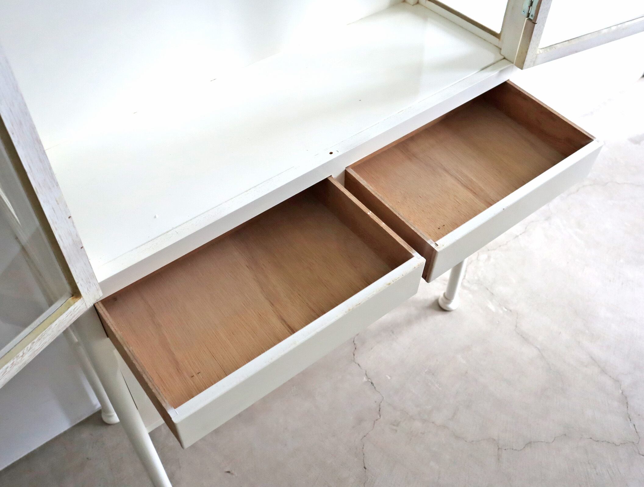 ガラス扉で中を確認でき、必要なものを一目で見つけられる合理的なつくりで、その機能美が今の暮らしの中ではとても静かで、凛とした存在感として映ります。