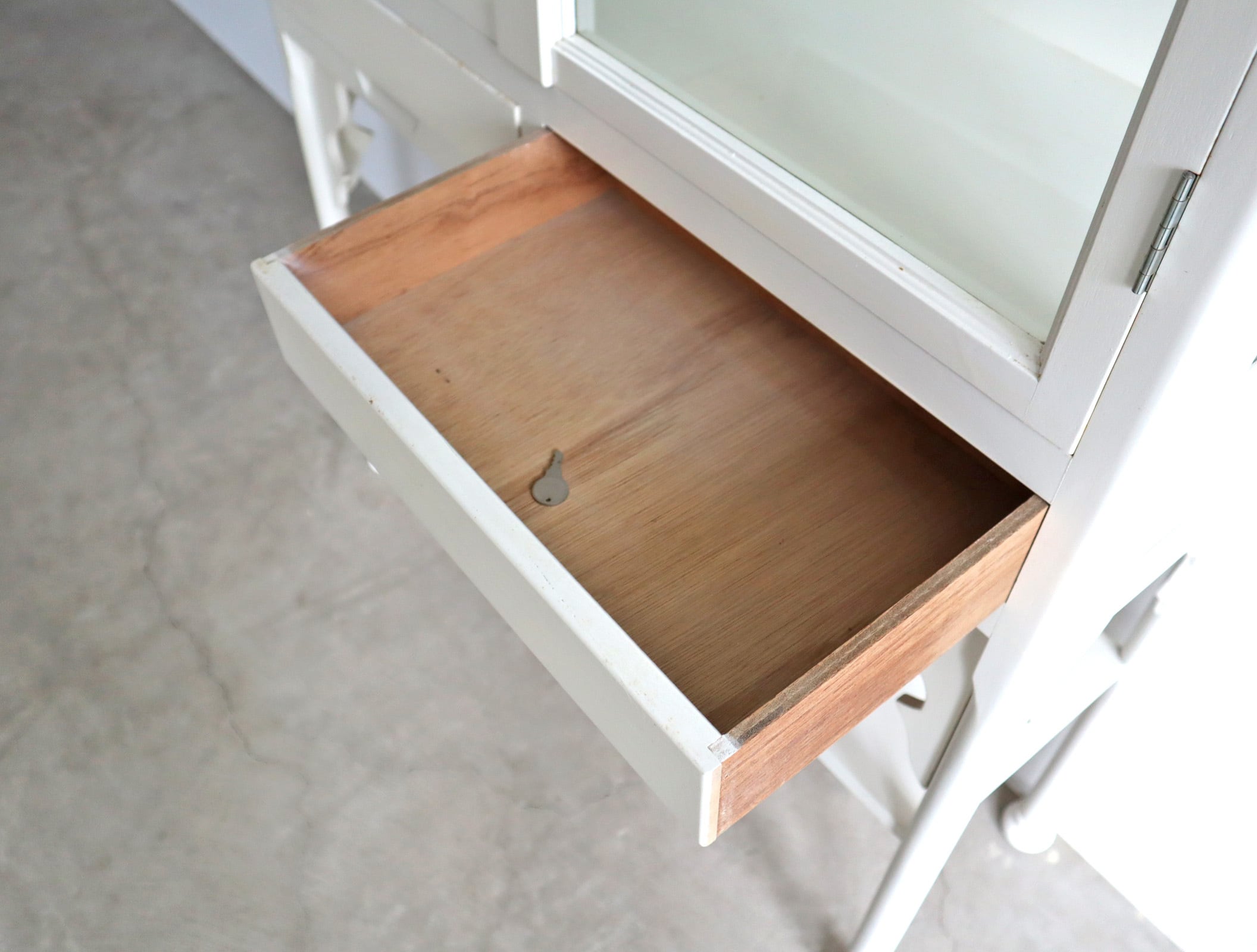 古い物になりますと薬品の匂いが染みついているものが多い印象ですが、こちらはアンティークというほど古い物ではなく、医療施設で使用されていた物ではございませんので、内部古家具特有の匂いはあるものの薬品臭はございません。