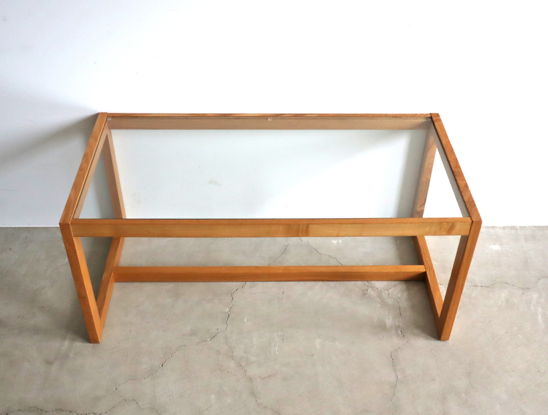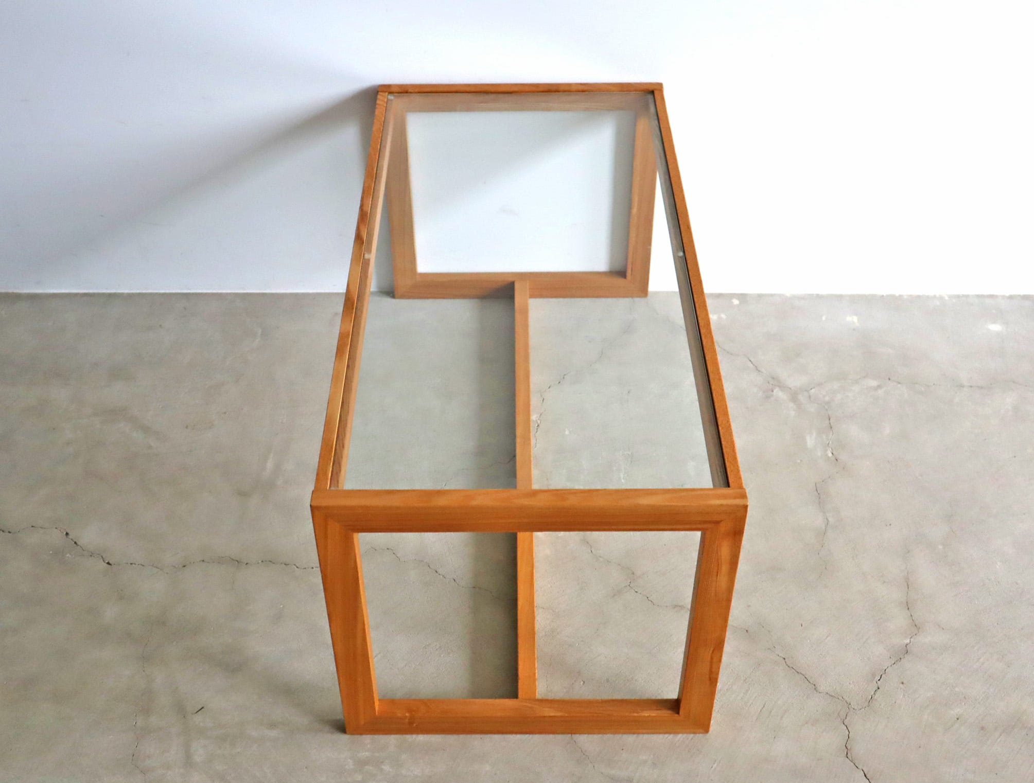 高野木工の生産終了モデル、CUBE 90 GLASS TABLE。