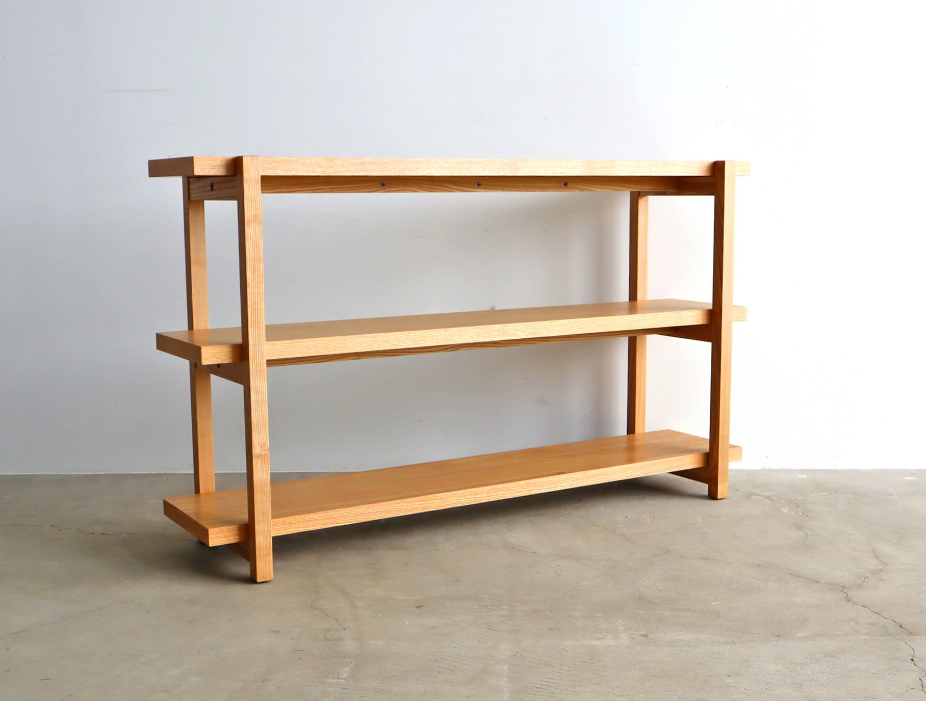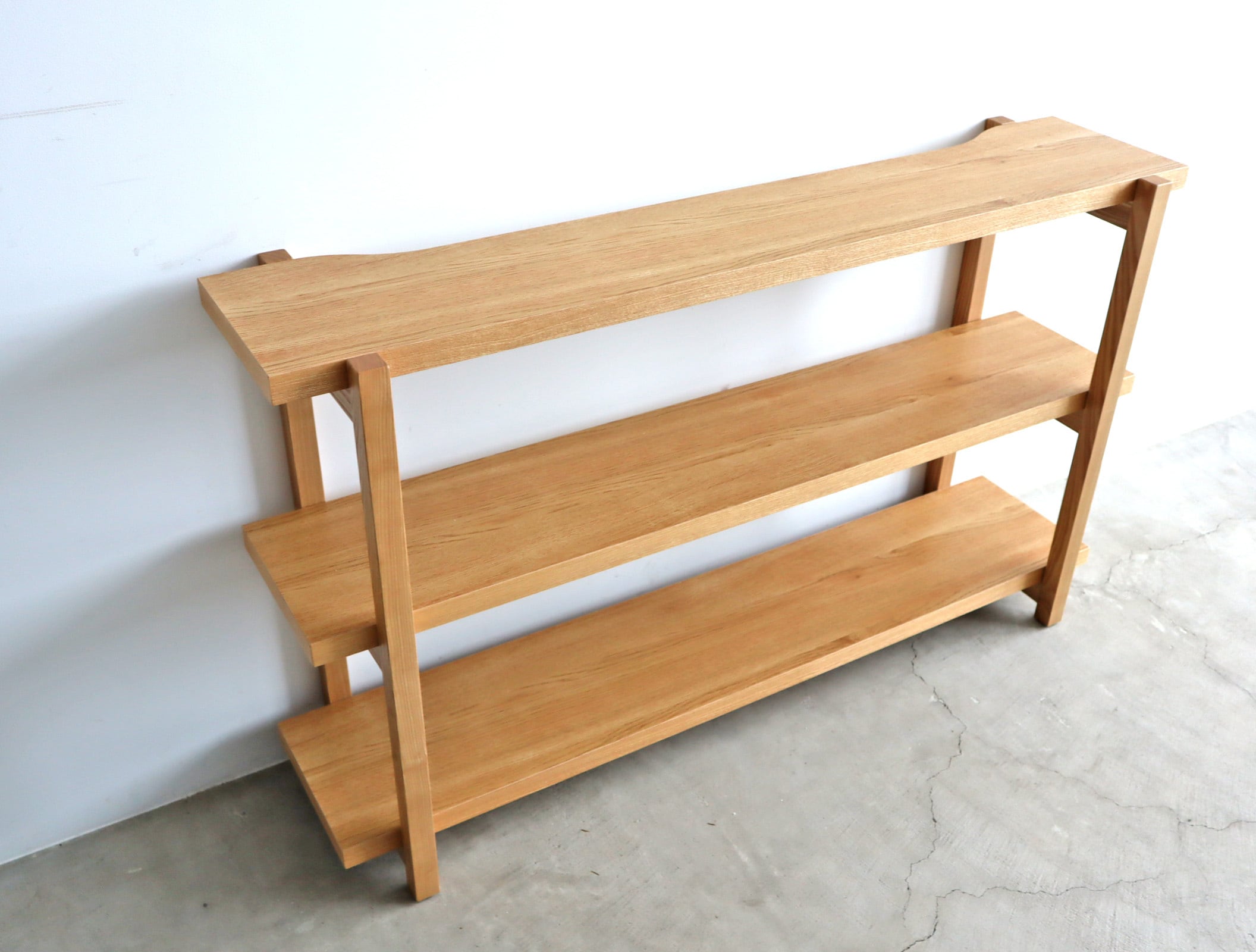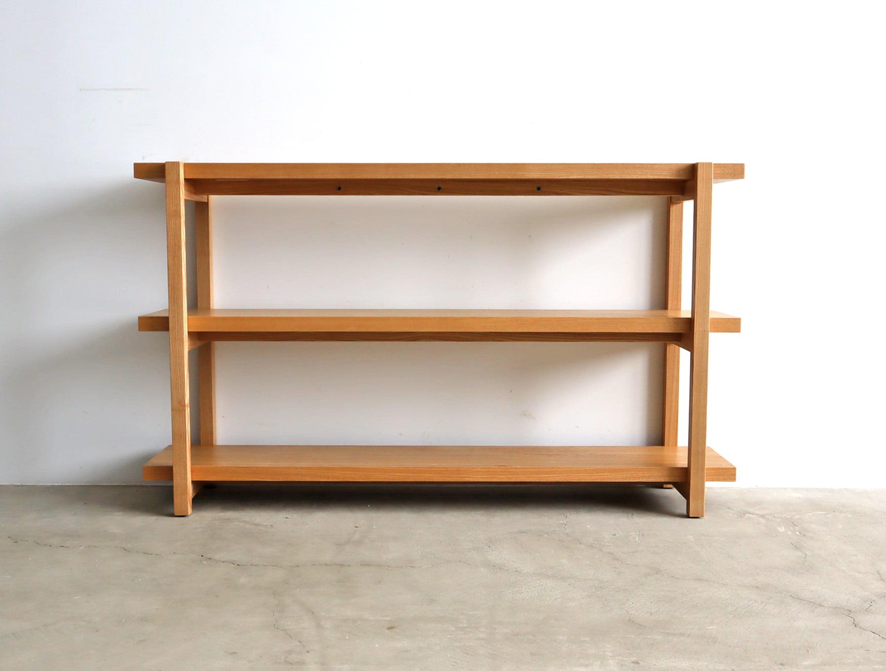 装飾を削ぎ落としたデザインで実用度が高い3段構造は間隔にゆとりがあり、本や器、オブジェ、少し背のあるフラワーベースや照明まで、並べるものを選びません。