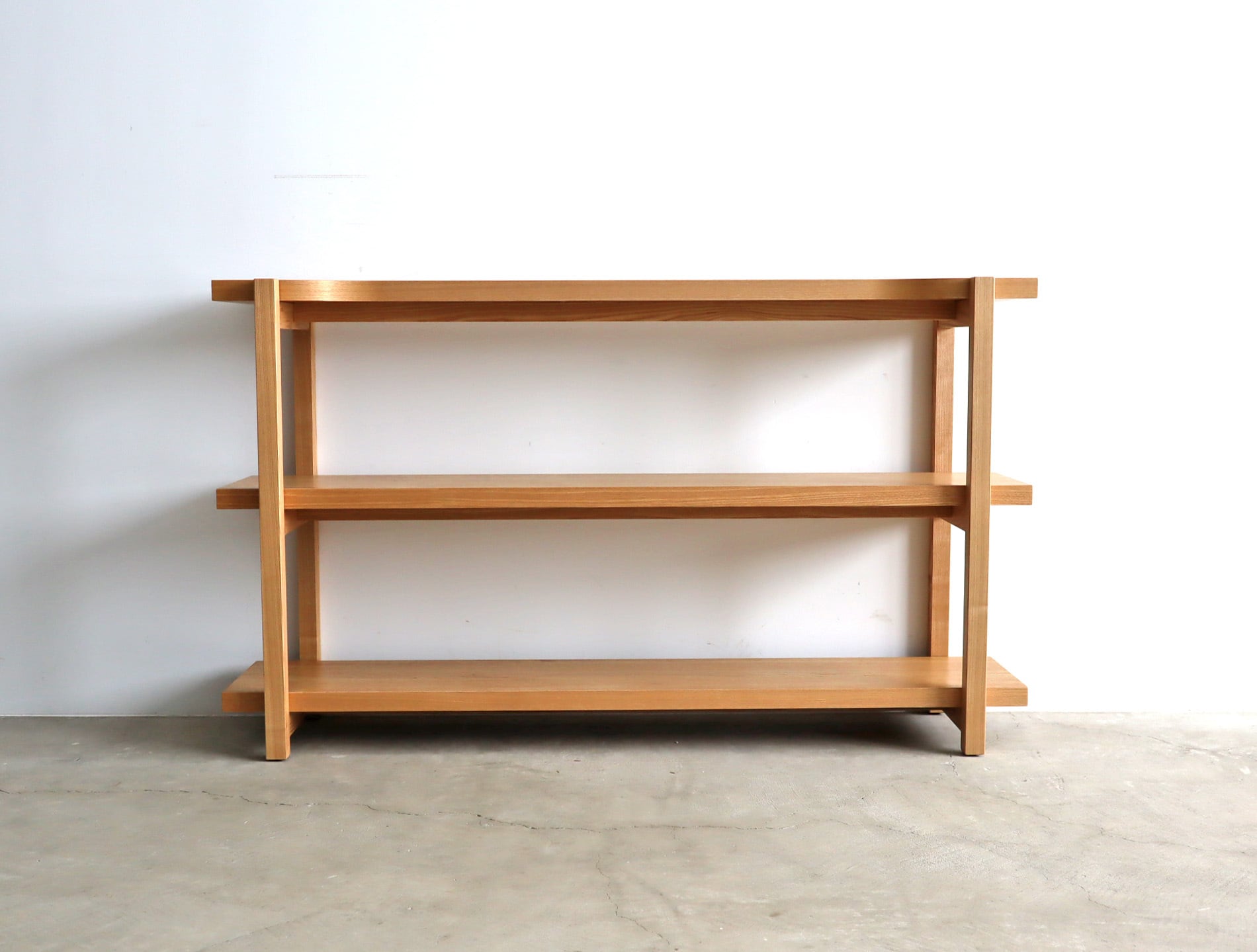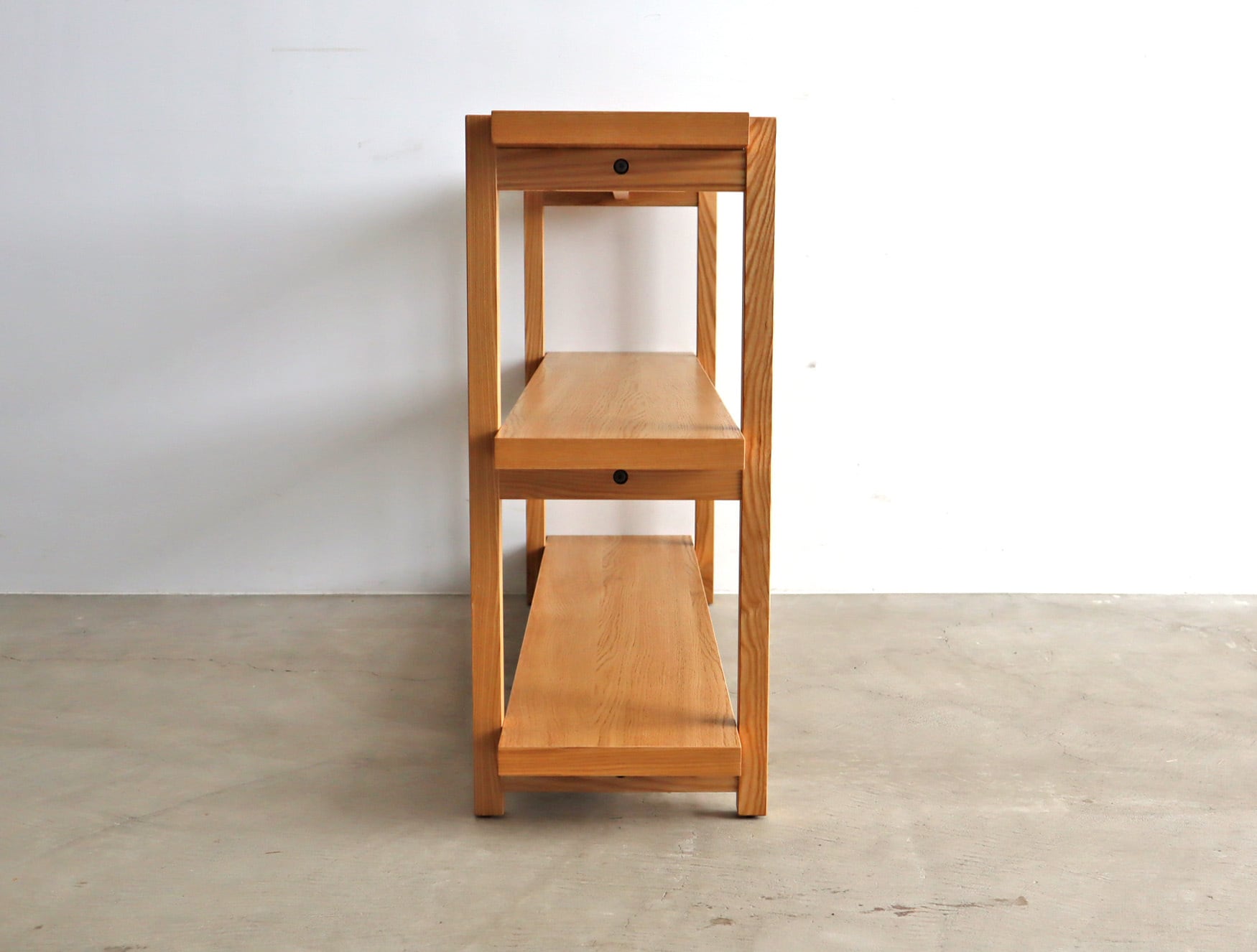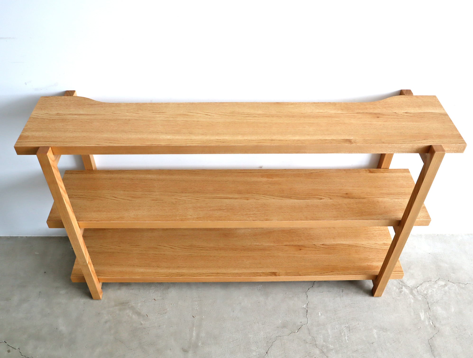 装飾を削ぎ落としたデザインで実用度が高い3段構造は間隔にゆとりがあり、本や器、オブジェ、少し背のあるフラワーベースや照明まで、並べるものを選びません。