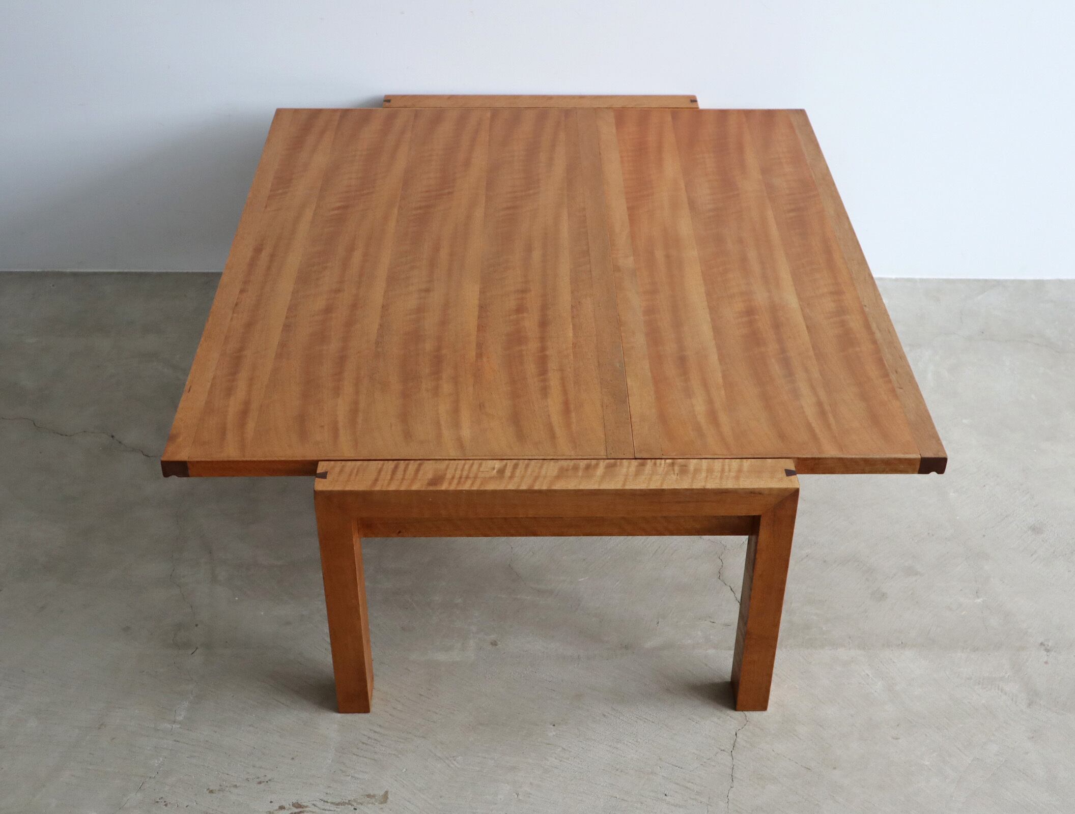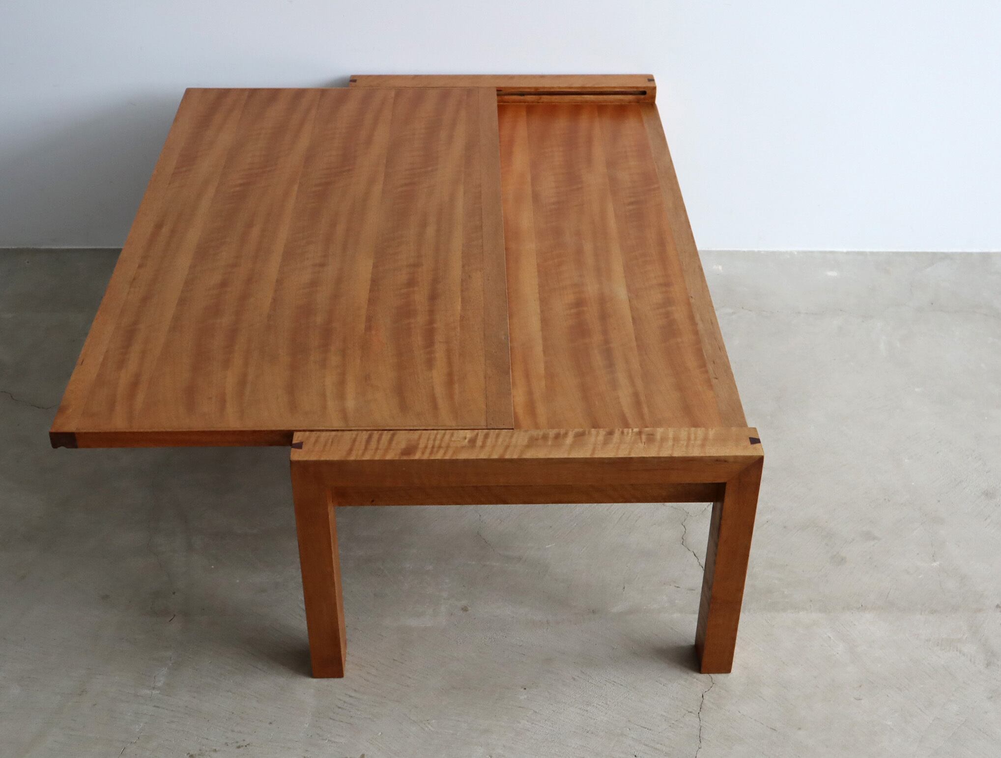 一見すると静かで端正な木製テーブルですが、必要なときに天板を手動で拡張することにより、もうひとつの表情を見せてくれます。