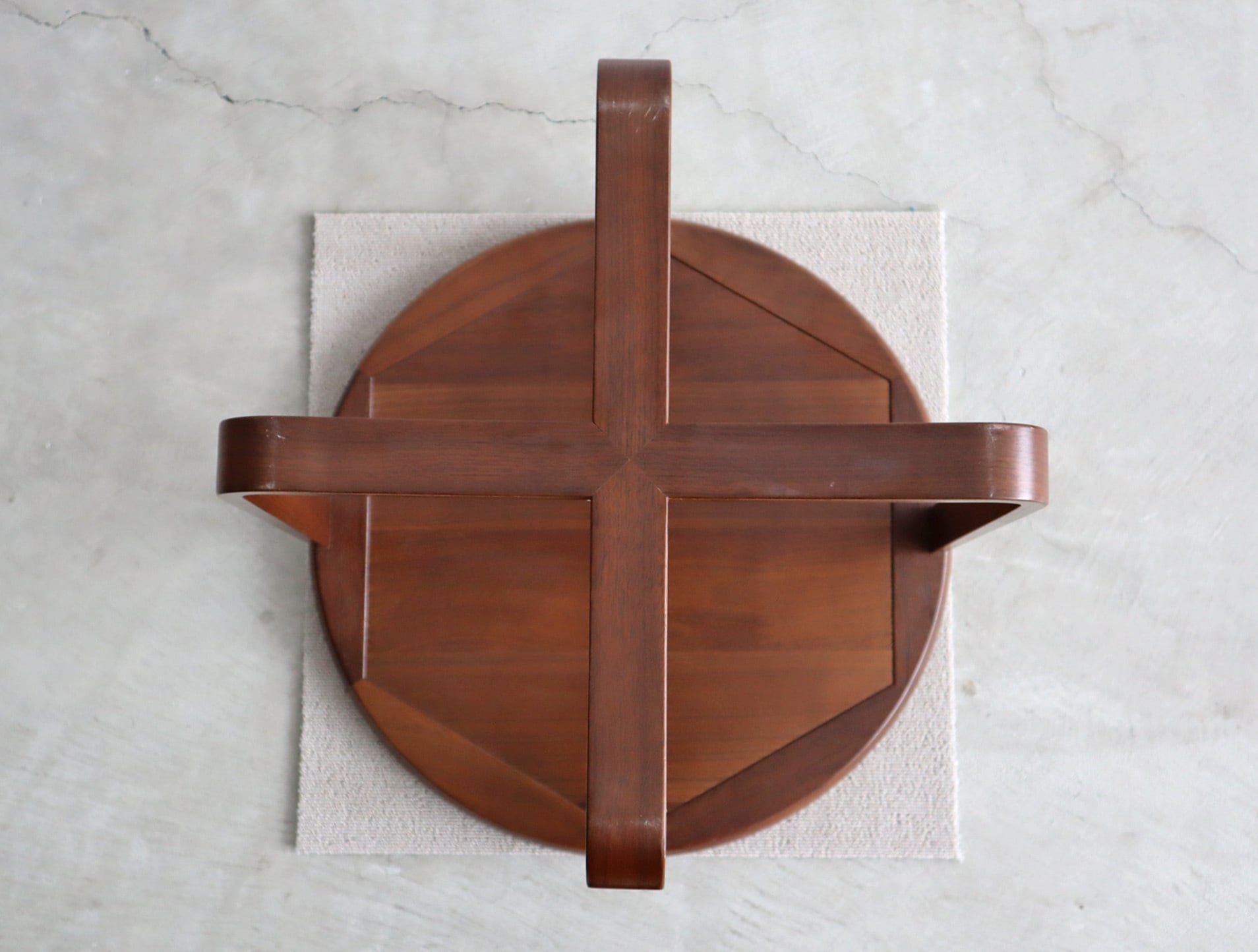 こちらのラウンドサイドテーブルは円形の天板と静かに交差する脚部が特徴。