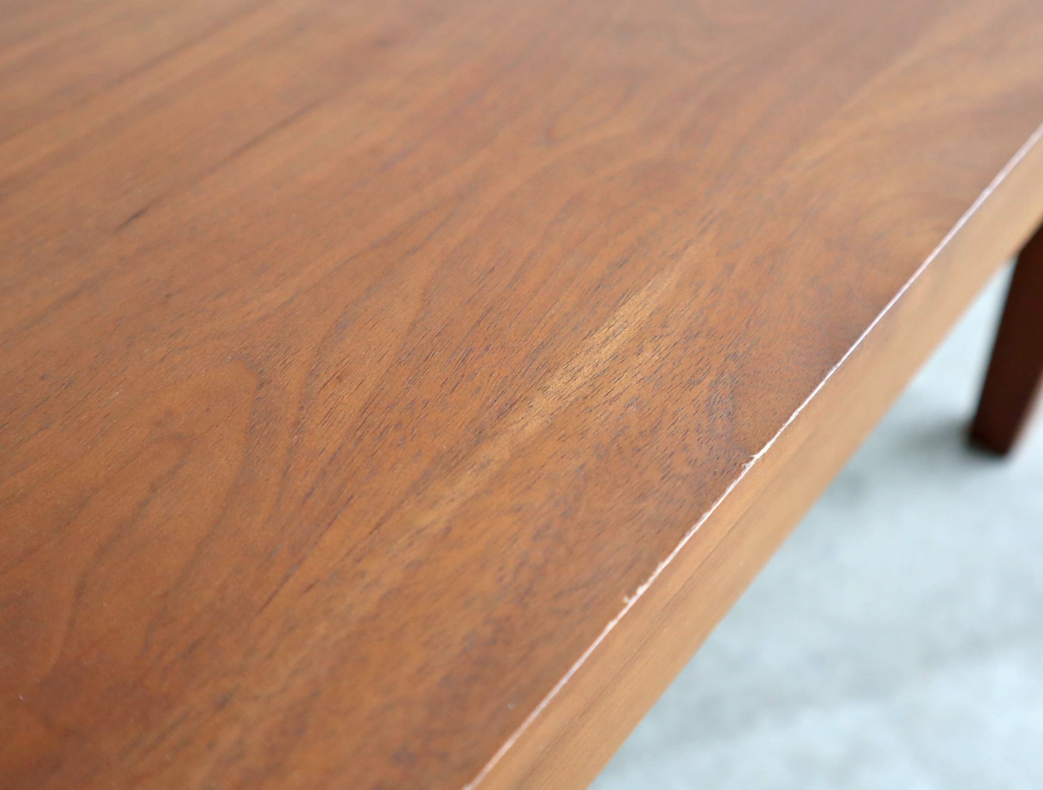 ウォールナット材特有の赤みを帯びた褐色と、流れるような木目は光の当たり方や時間帯によって表情を変え、リビングの中で静かな存在感を放ちます。