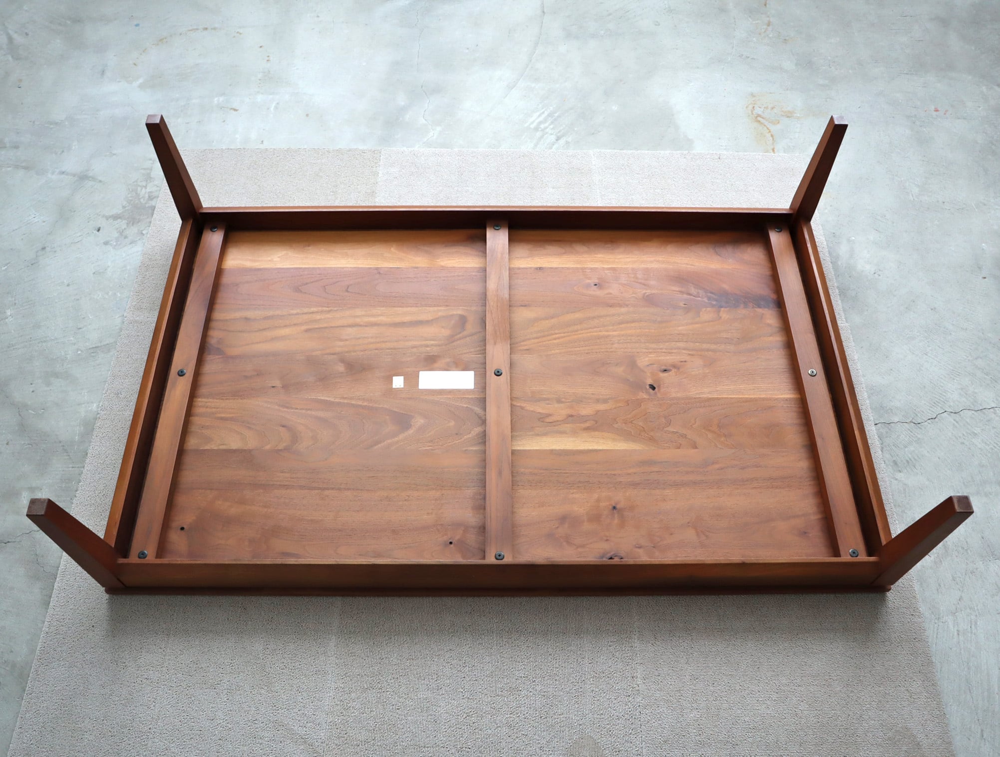 脚部はわずかににテーパーしたシンプルな構造。床に近い目線でも重たく見えず、空間に余白を残してくれる絶妙なバランスです。ソファ前のセンターテーブルとしてはもちろん、禅スタイルのローポジションなライフスタイルにも自然に馴染みます。