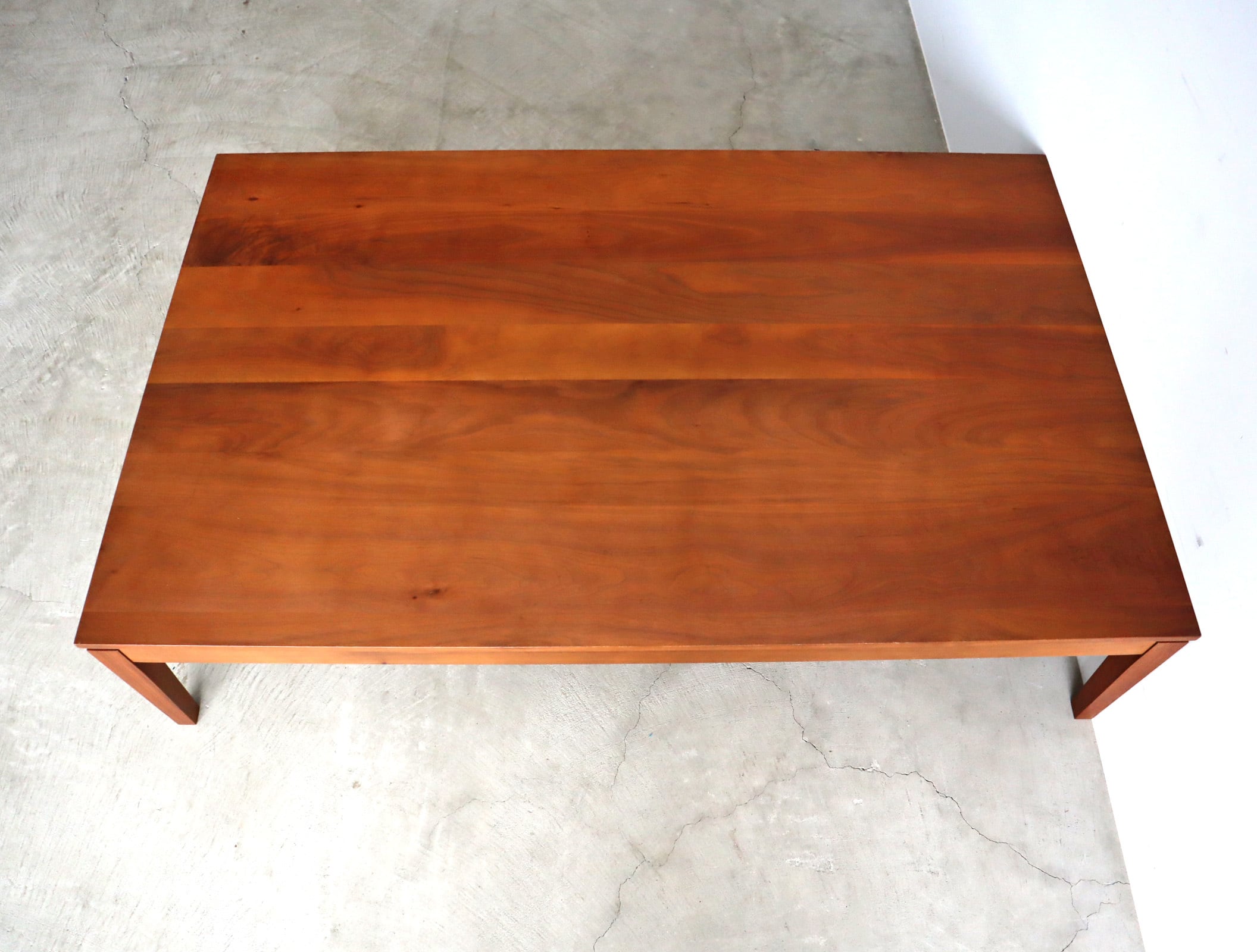 ナガノインテリア製、フローティングしたような天板がデザインポイントの大きなローテーブル。