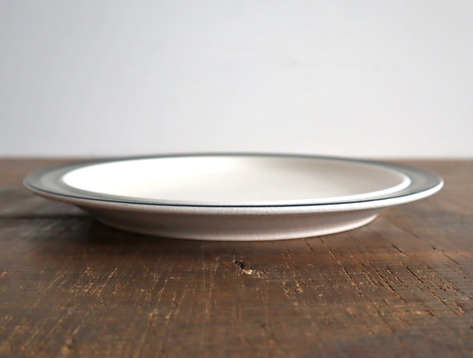 縁にぐるりと入った落ち着いたグレイッシュなグリーンのラインが、全体をきりっと引き締め、和にも洋にも、どこか北欧の空気感にもすっと馴染みます。