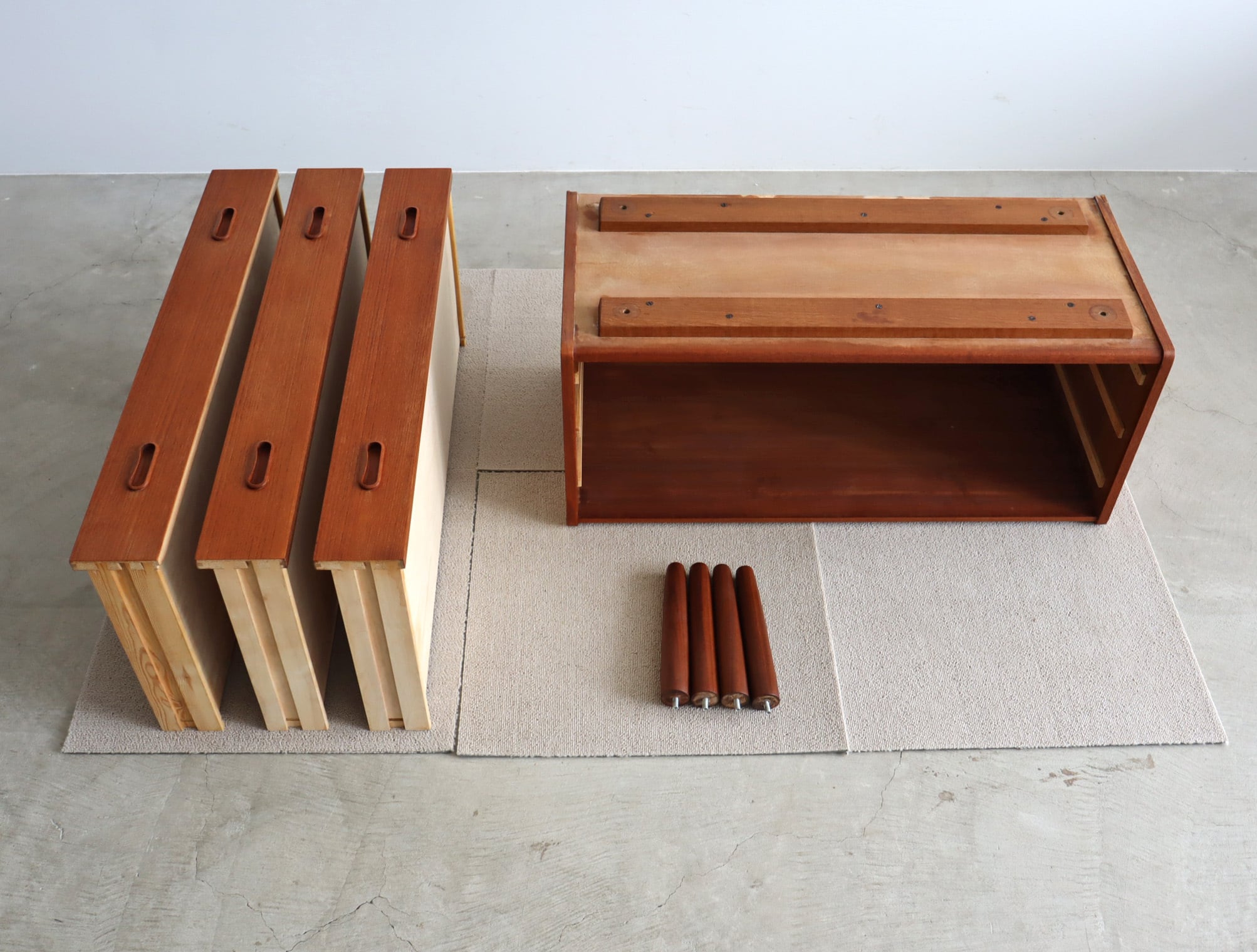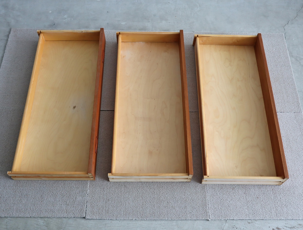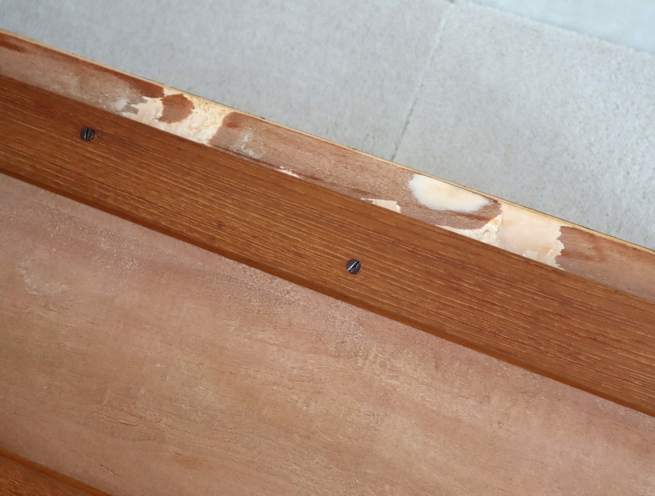 経年により深みを増したチークの色味は、現行品では決して再現できないもの。使い込まれてきたからこそ生まれる柔らかな艶が、この家具の時間を物語っています。