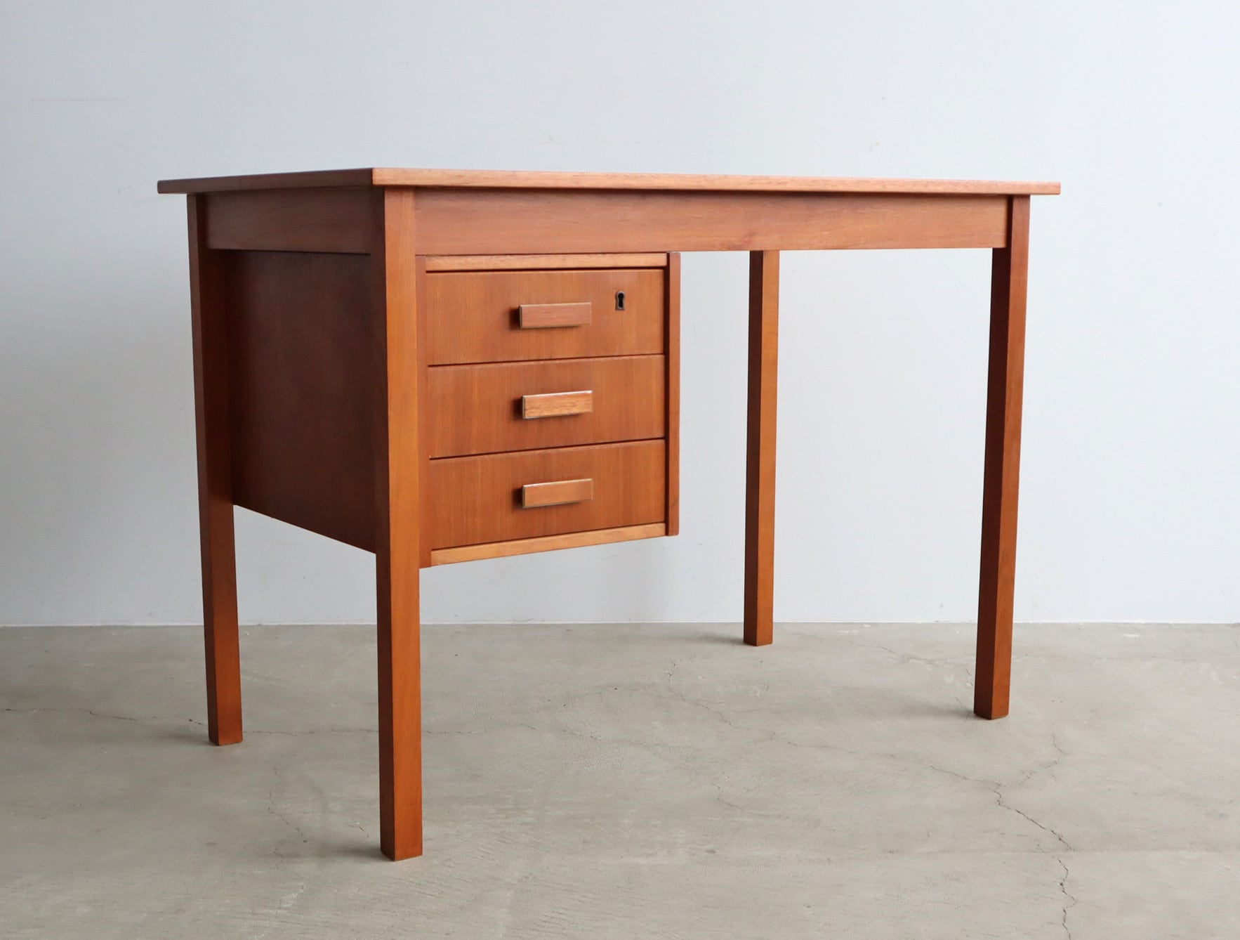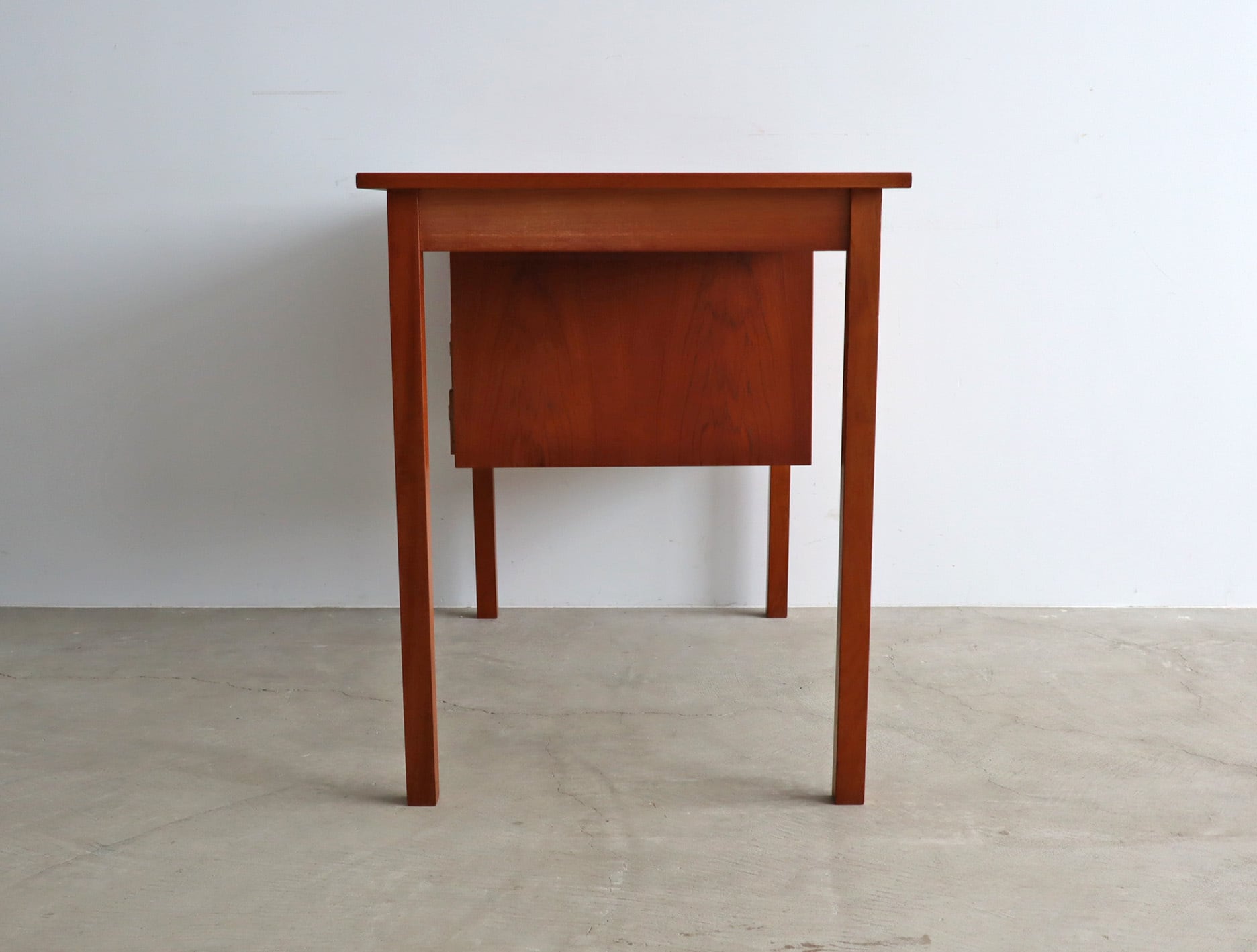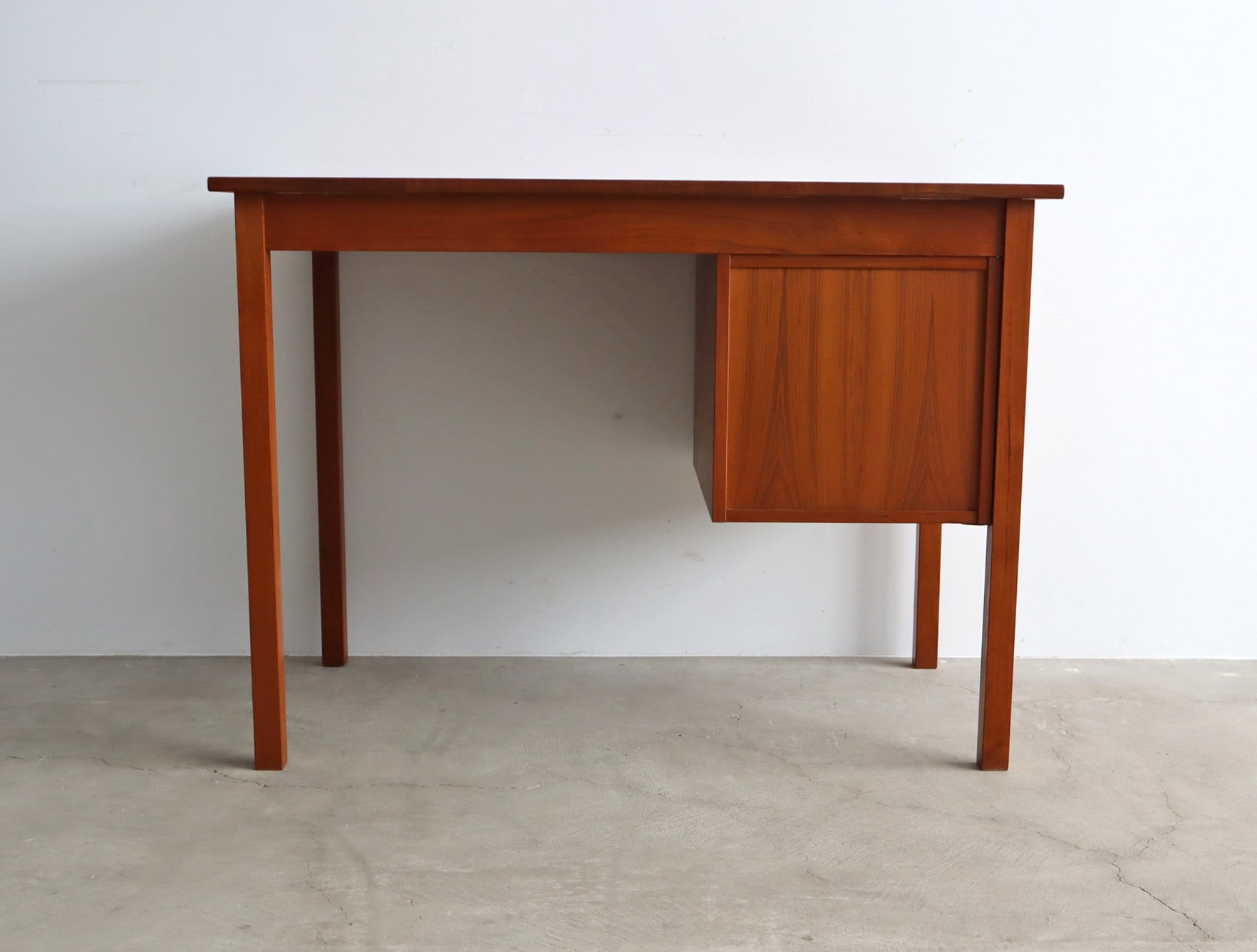 北欧ヴィンテージ チーク材のシンプルで小ぶりな片袖デスク
