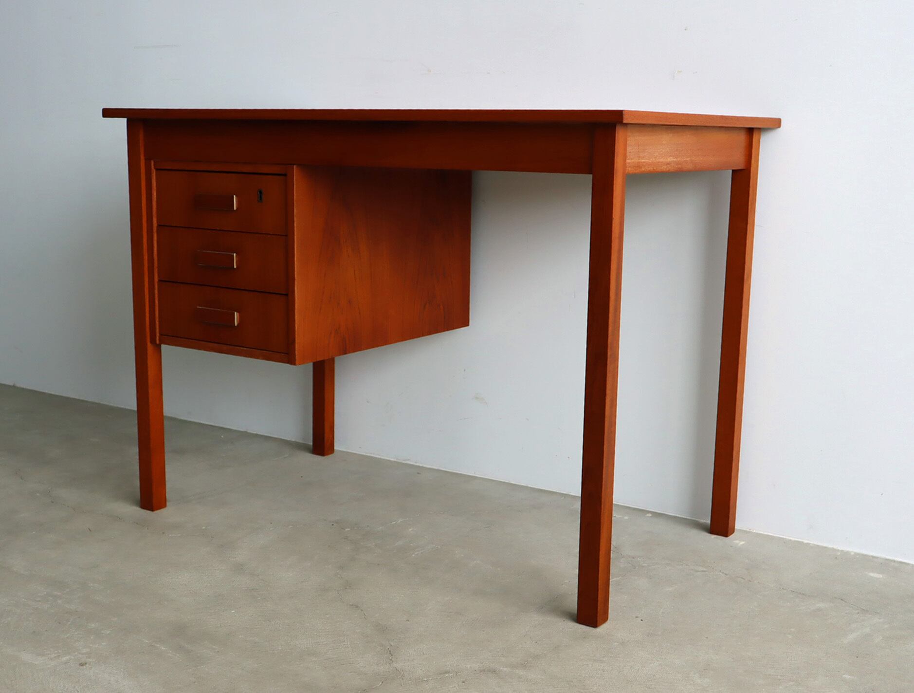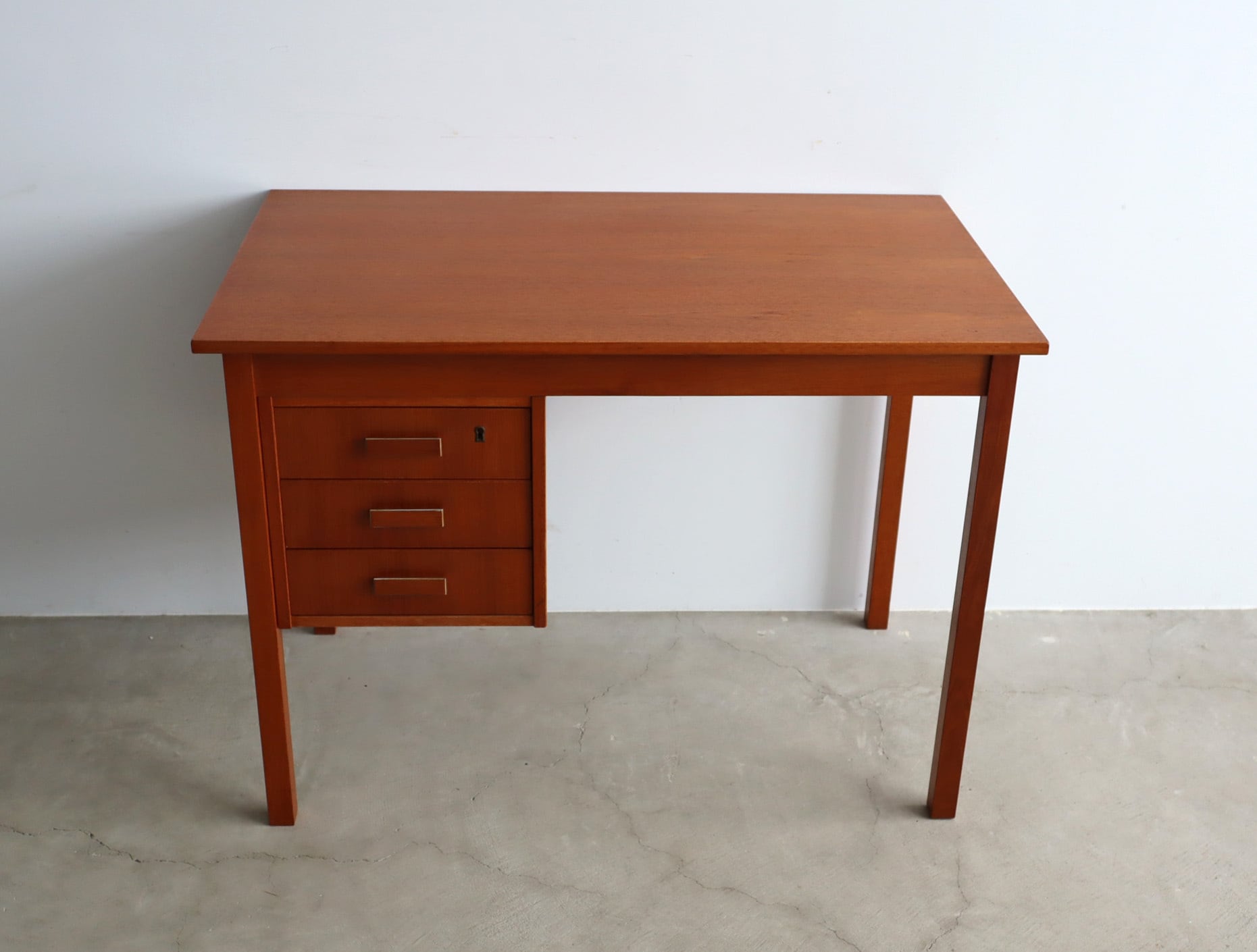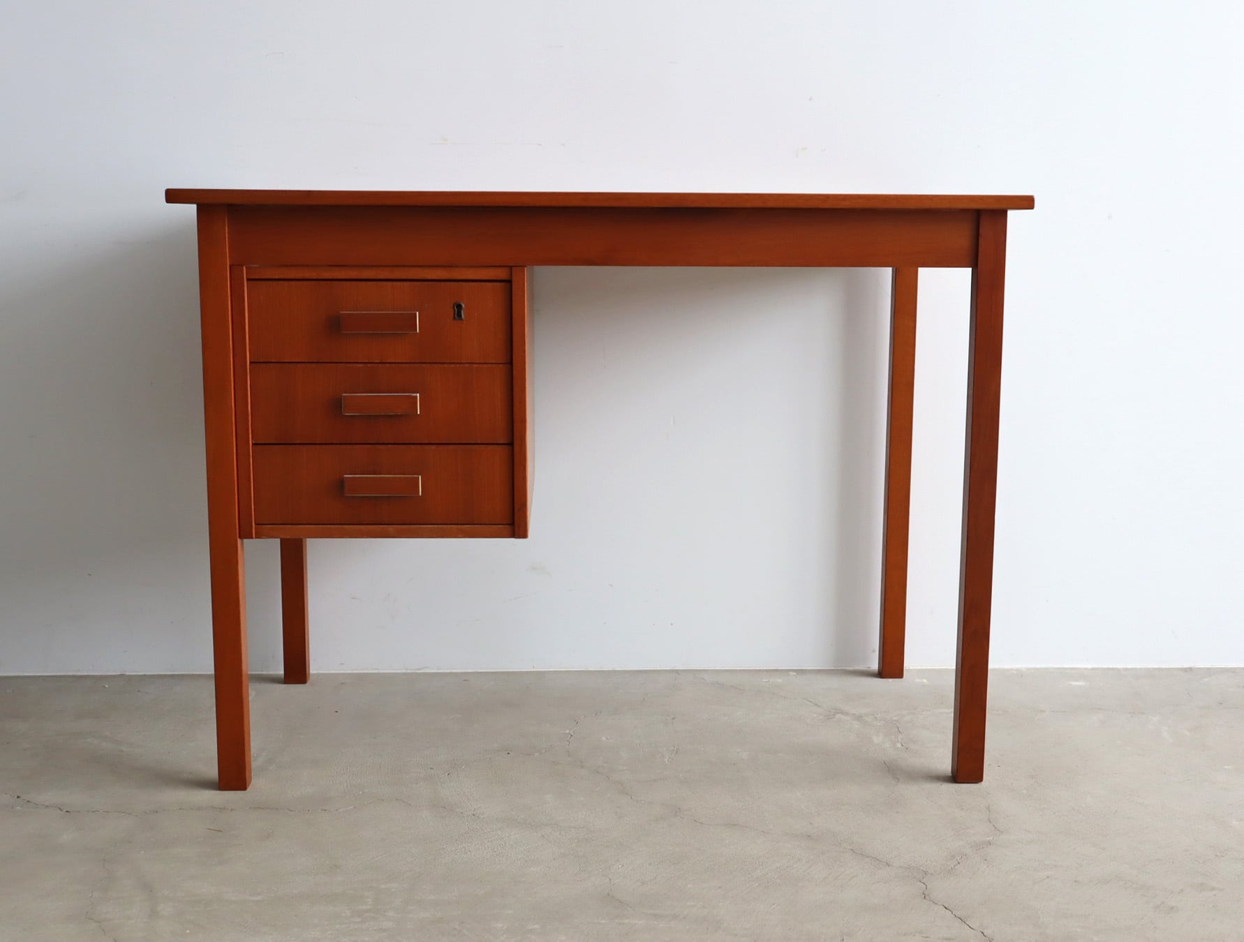 北欧ヴィンテージ チーク材のシンプルで小ぶりな片袖デスク