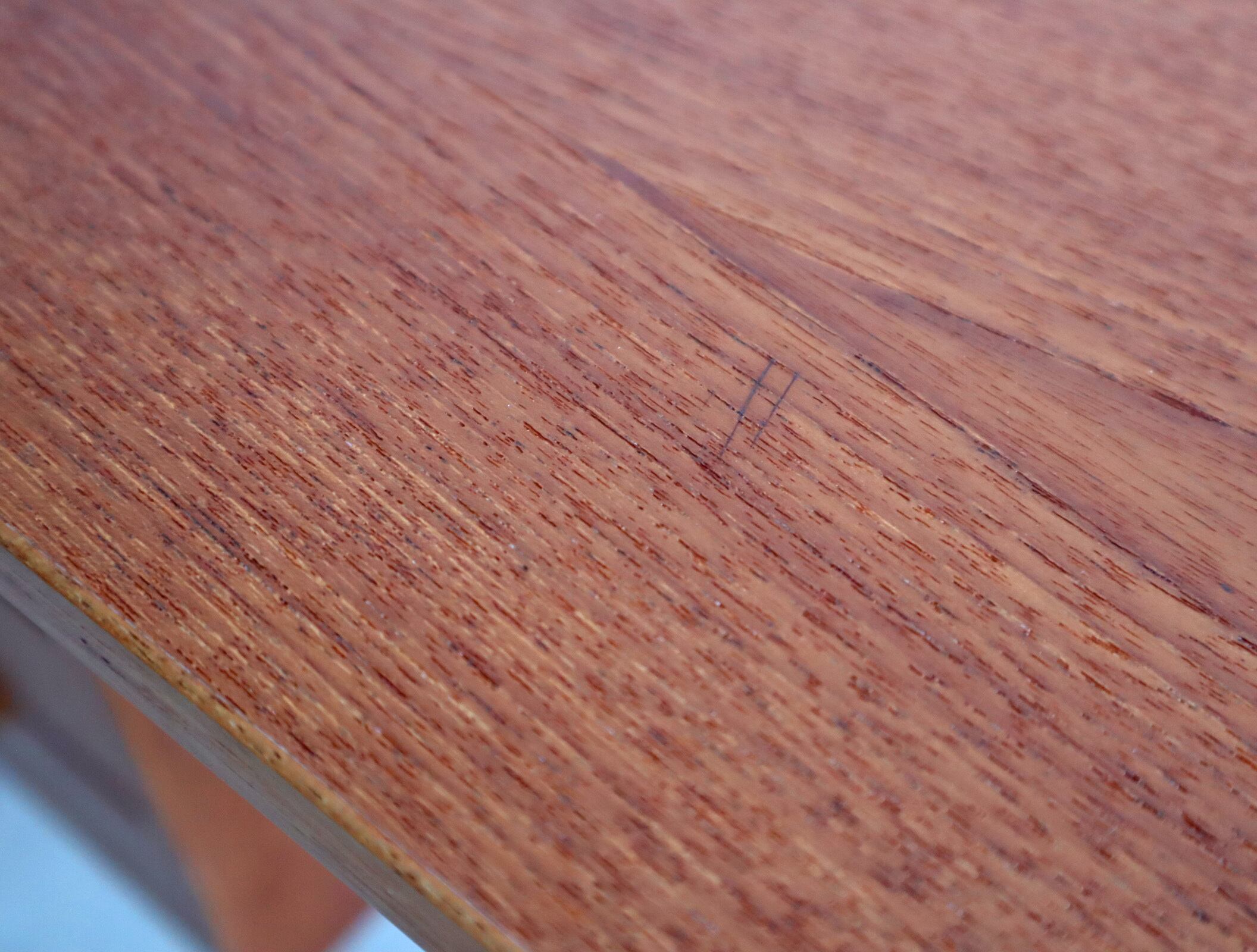 天板や脚部に細かな擦れ、小傷、色ムラなどが見られます。