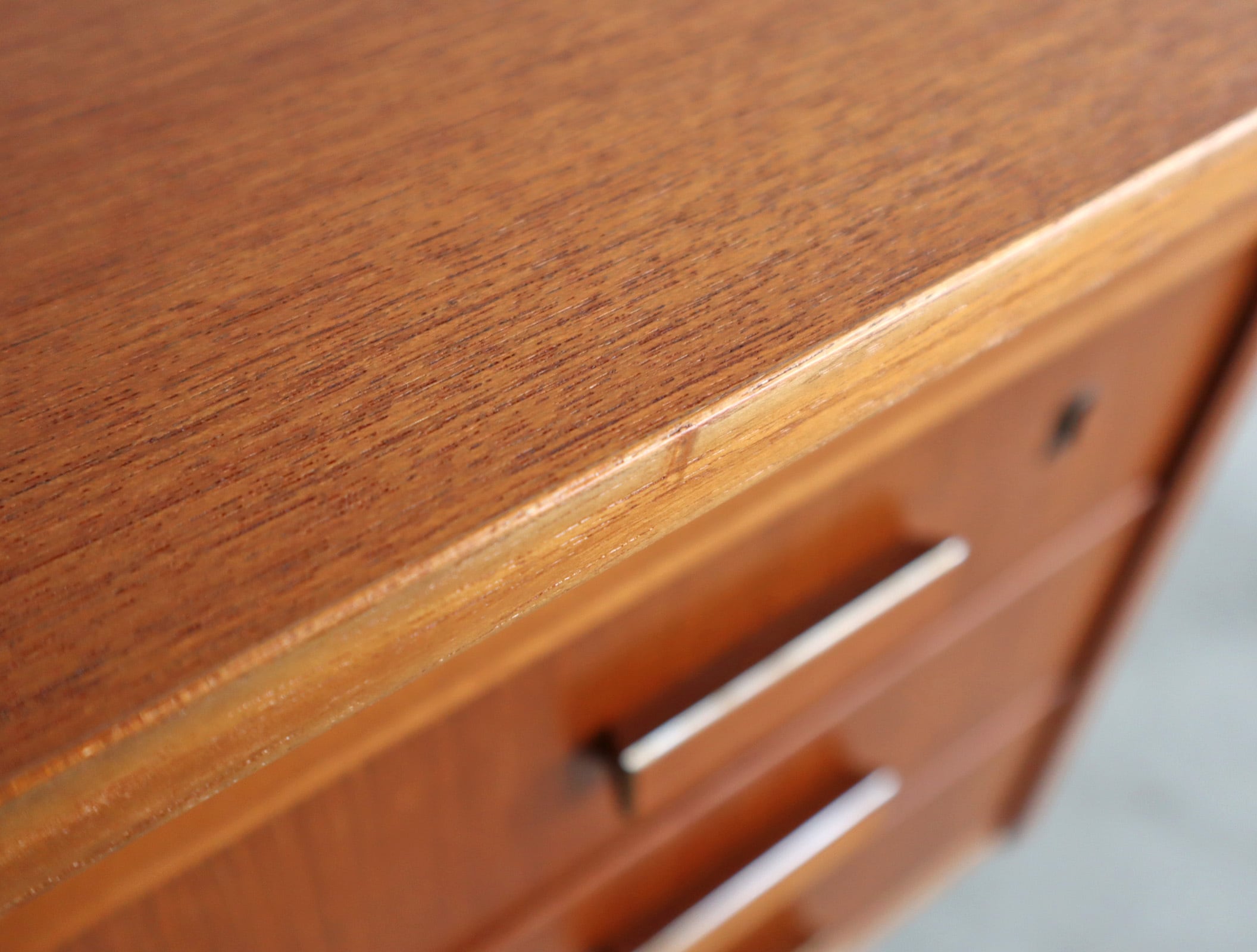 使用に影響のあるダメージはなく、年月を重ねた家具ならではの風合いとしてお楽しみいただける状態で、引き出しの開閉はスムーズです。