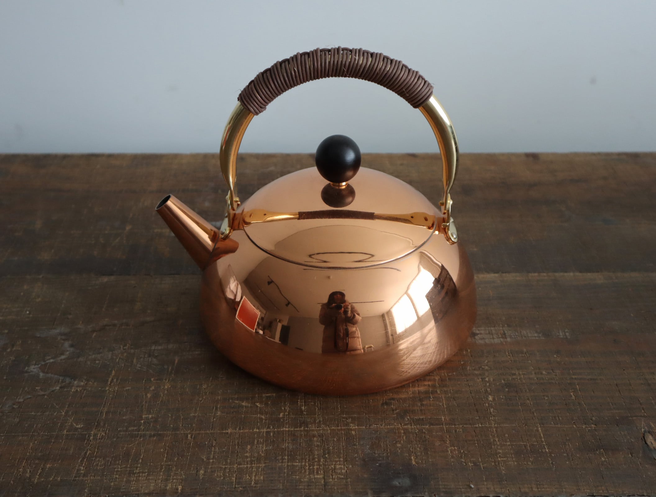 鏡のように磨き上げられた銅肌は、置いてあるだけで空間に静かな存在感を生み出します。