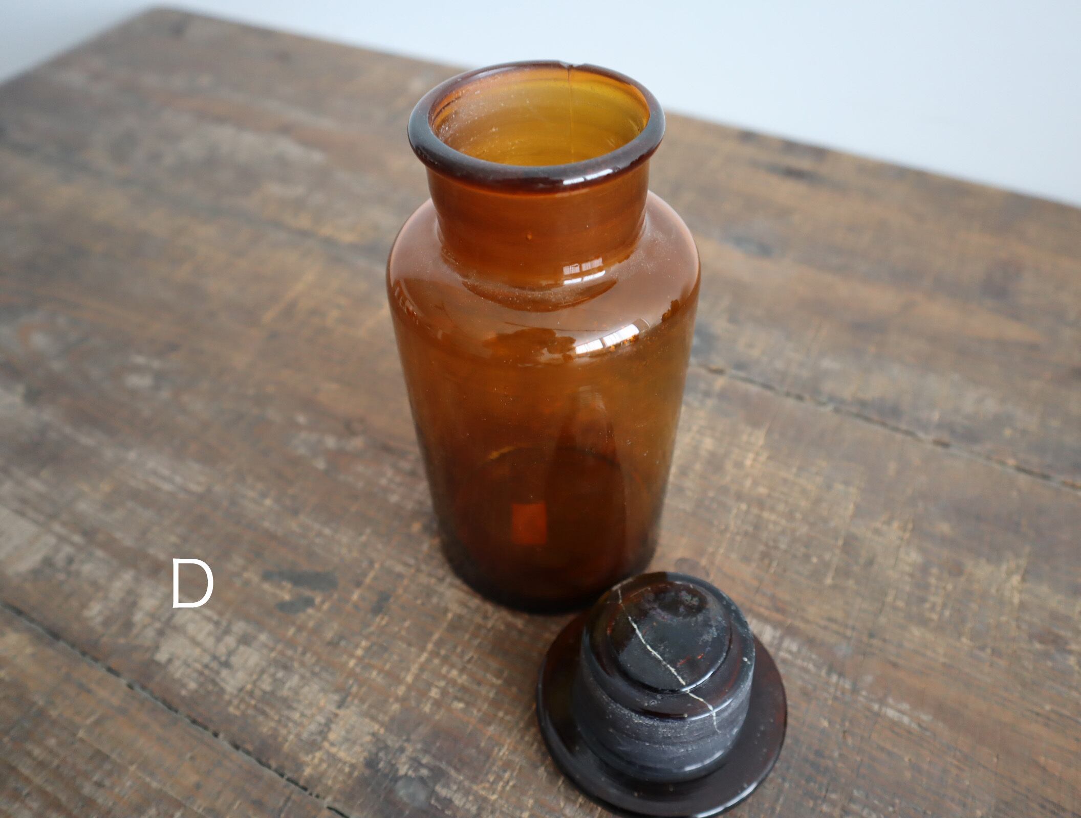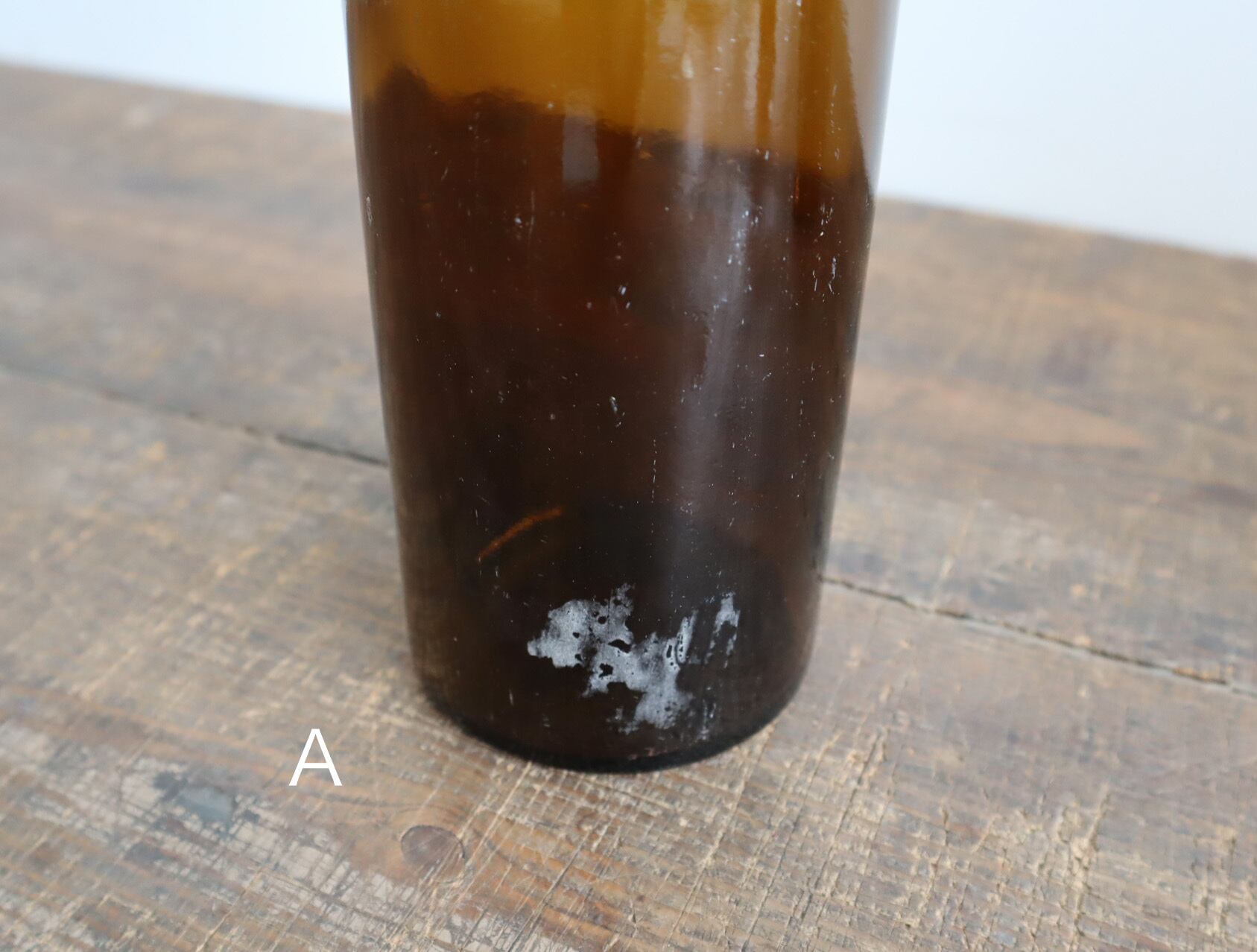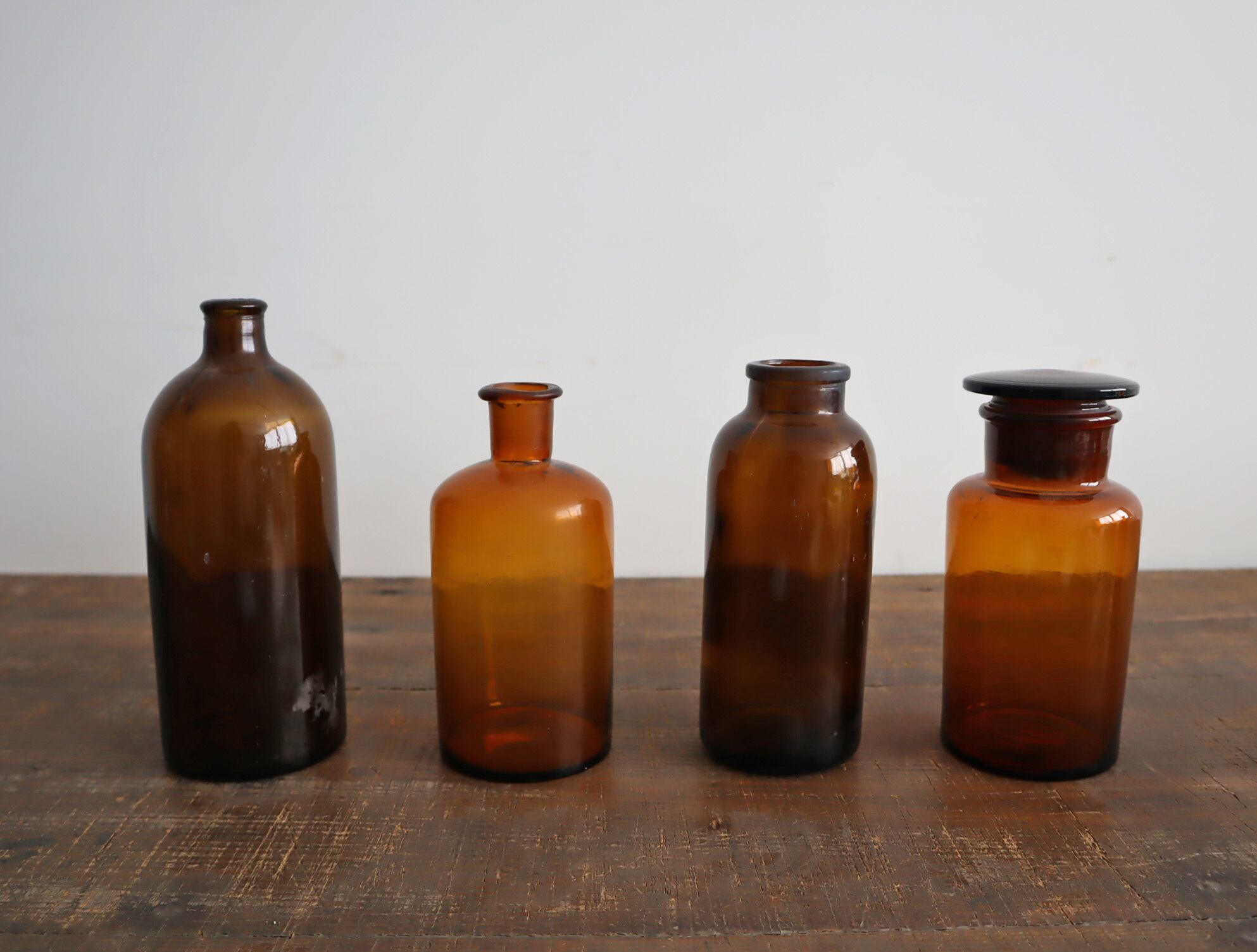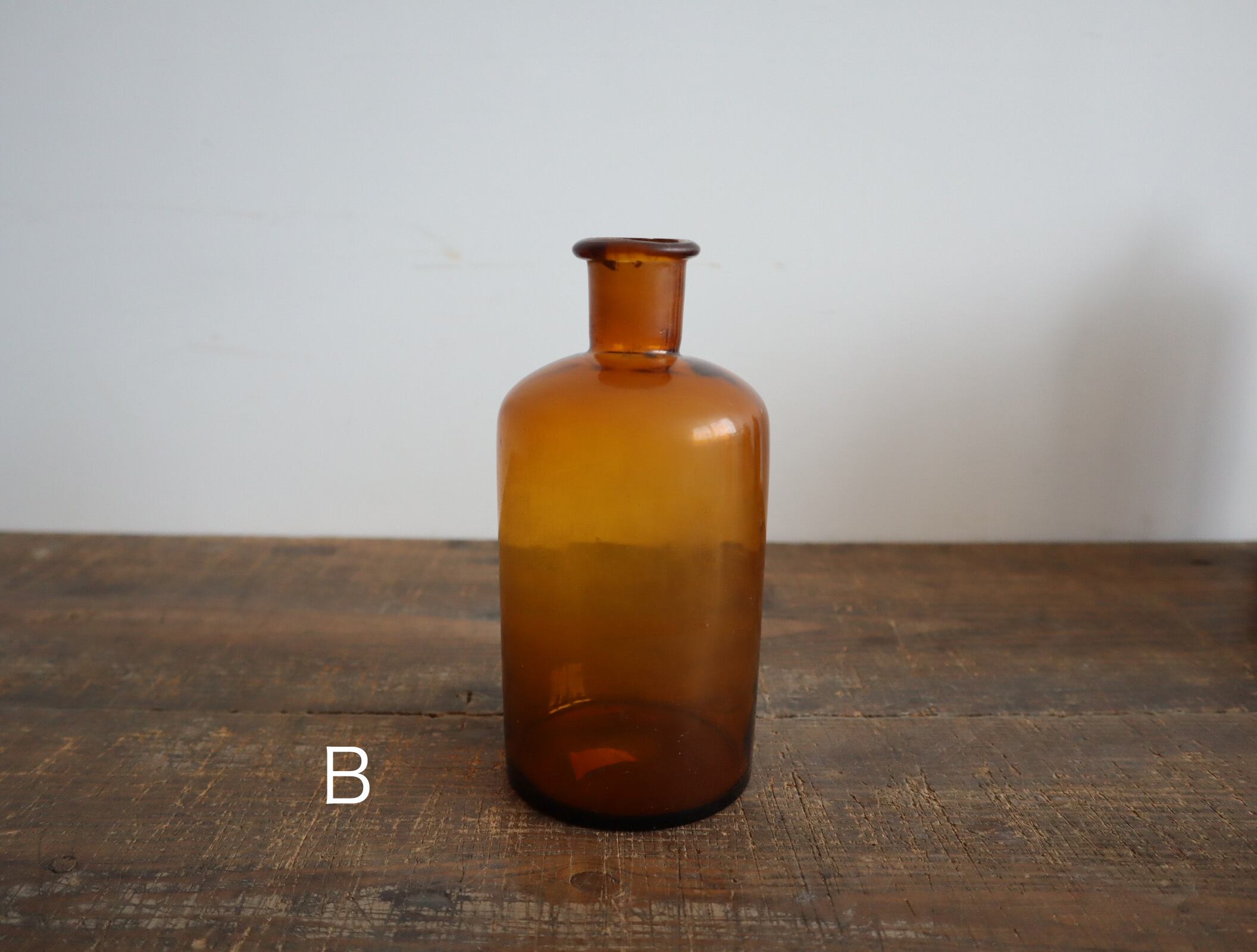 時を重ねたガラスだけが持つ、やわらかな揺らぎと深みのある表情。かつて薬品瓶や保存容器として使われていたヴィンテージのガラスボトルです。