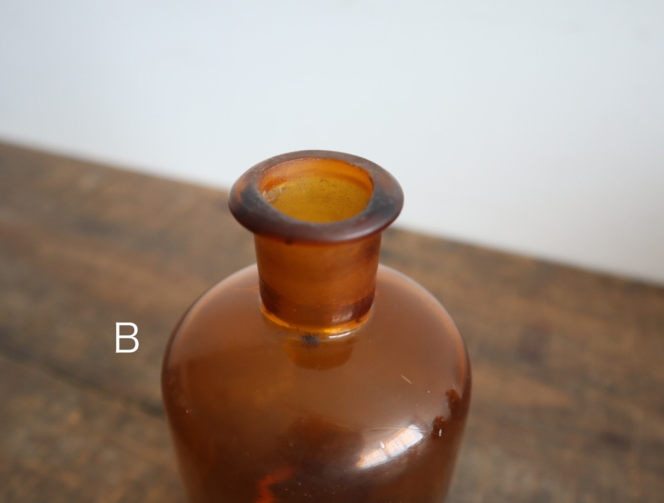 ヴィンテージ感漂うアンバーの古ガラスは、一点一点異なる色合いと厚みが魅力。