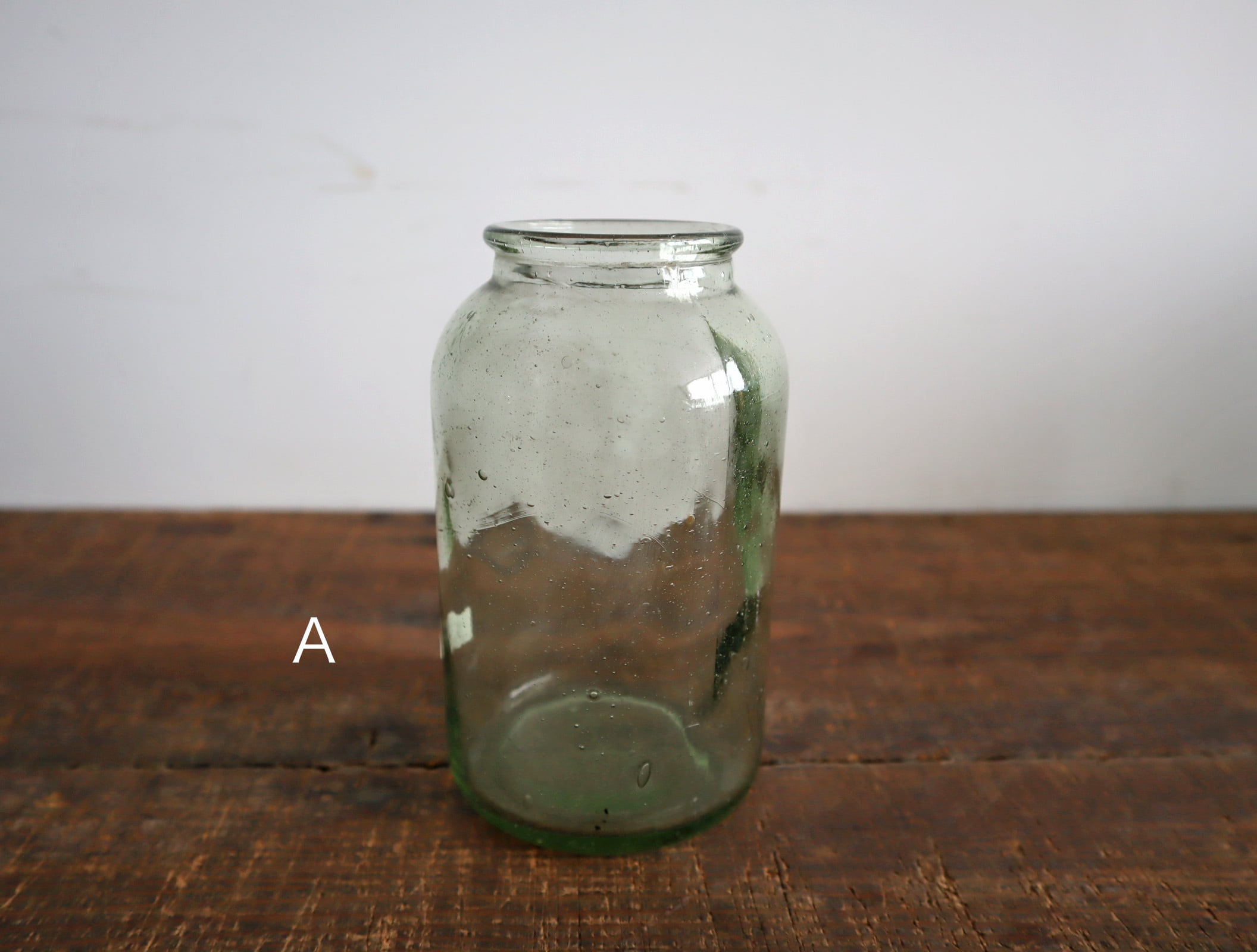 時を重ねたガラスだけが持つ、やわらかな揺らぎと深みのある表情。かつて薬品瓶や保存容器として使われていたヴィンテージのガラスボトルです。