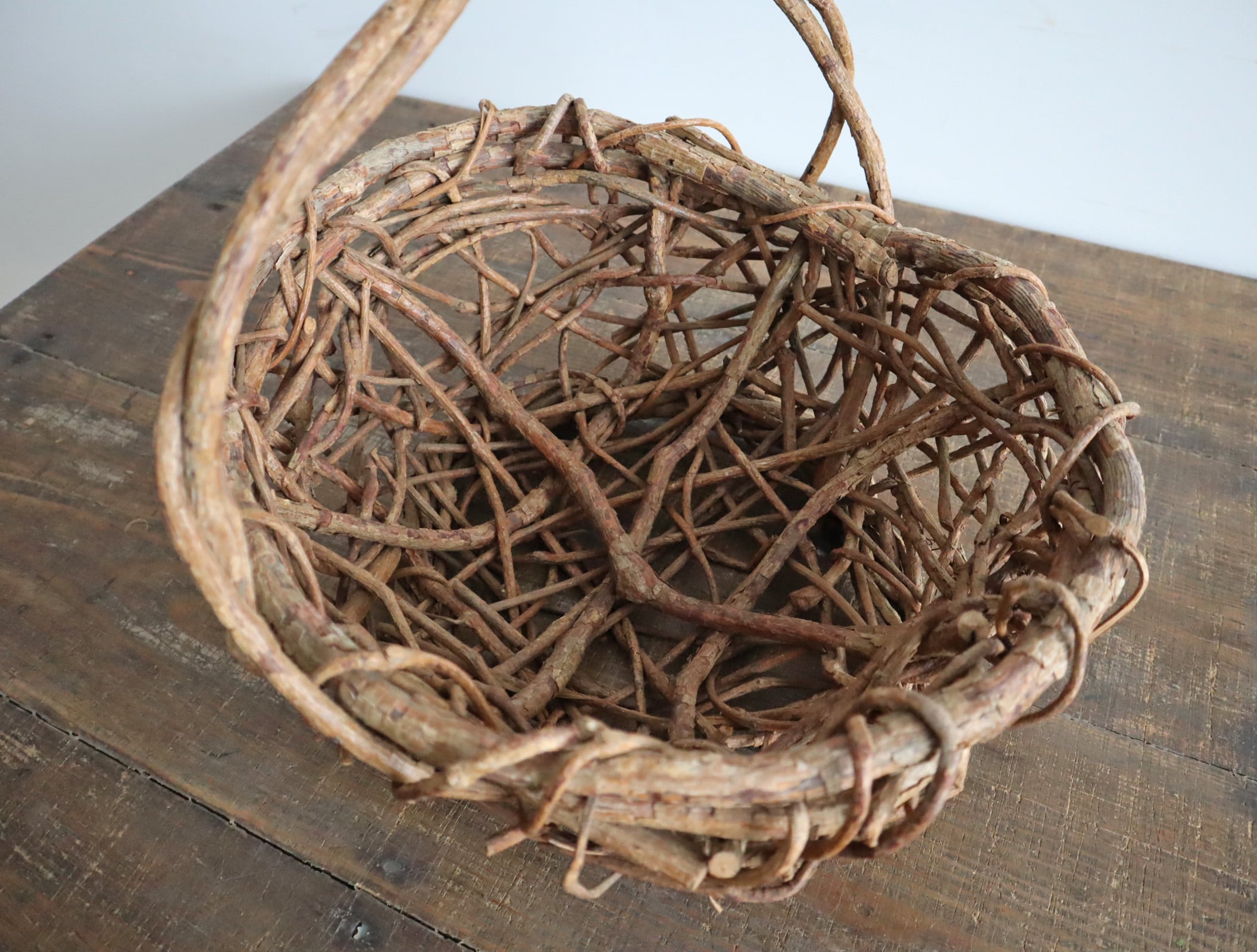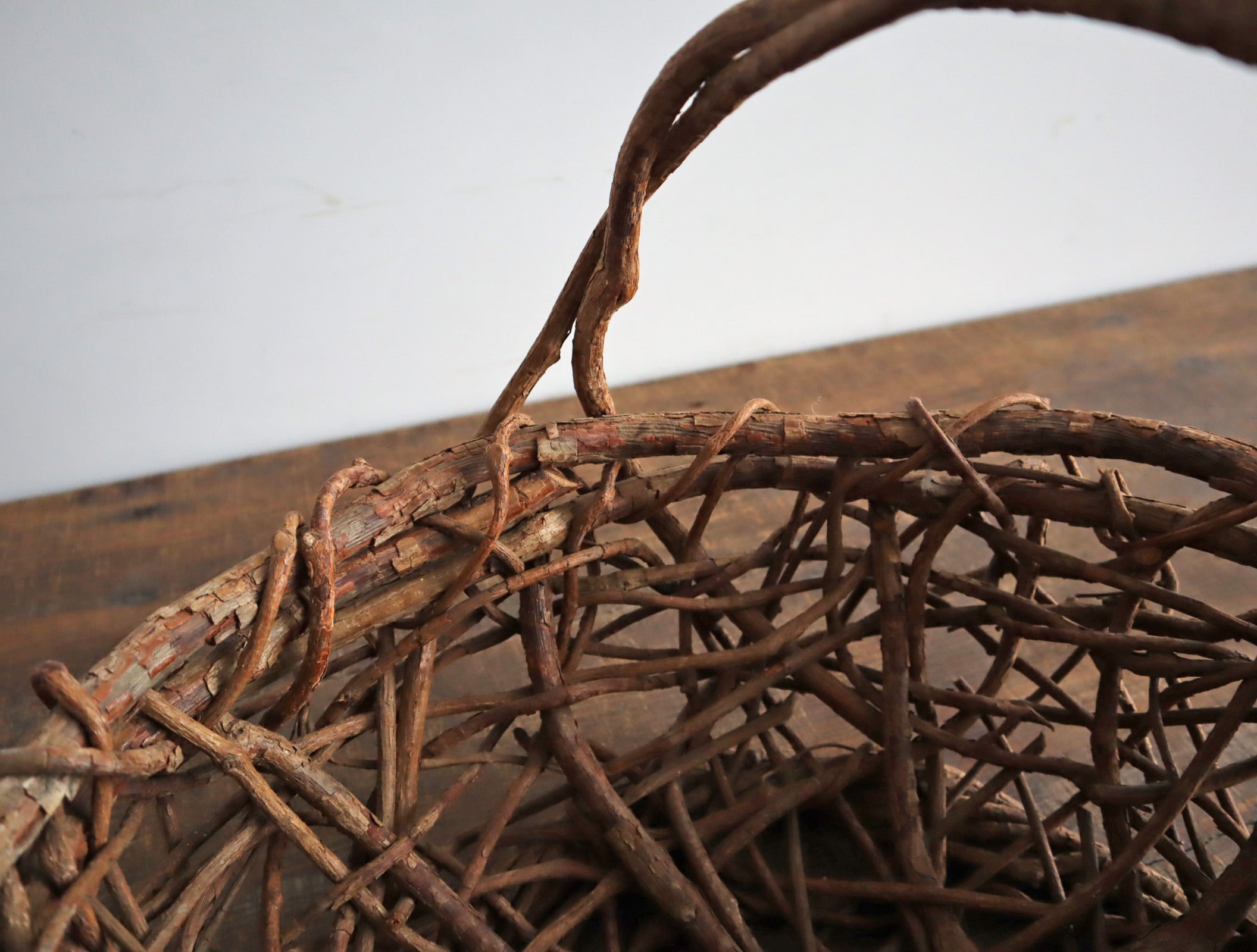 このかごは無造作で無骨、個性的に見えて、その中には計算されたデザイン美がうかがえるように見てとれます。