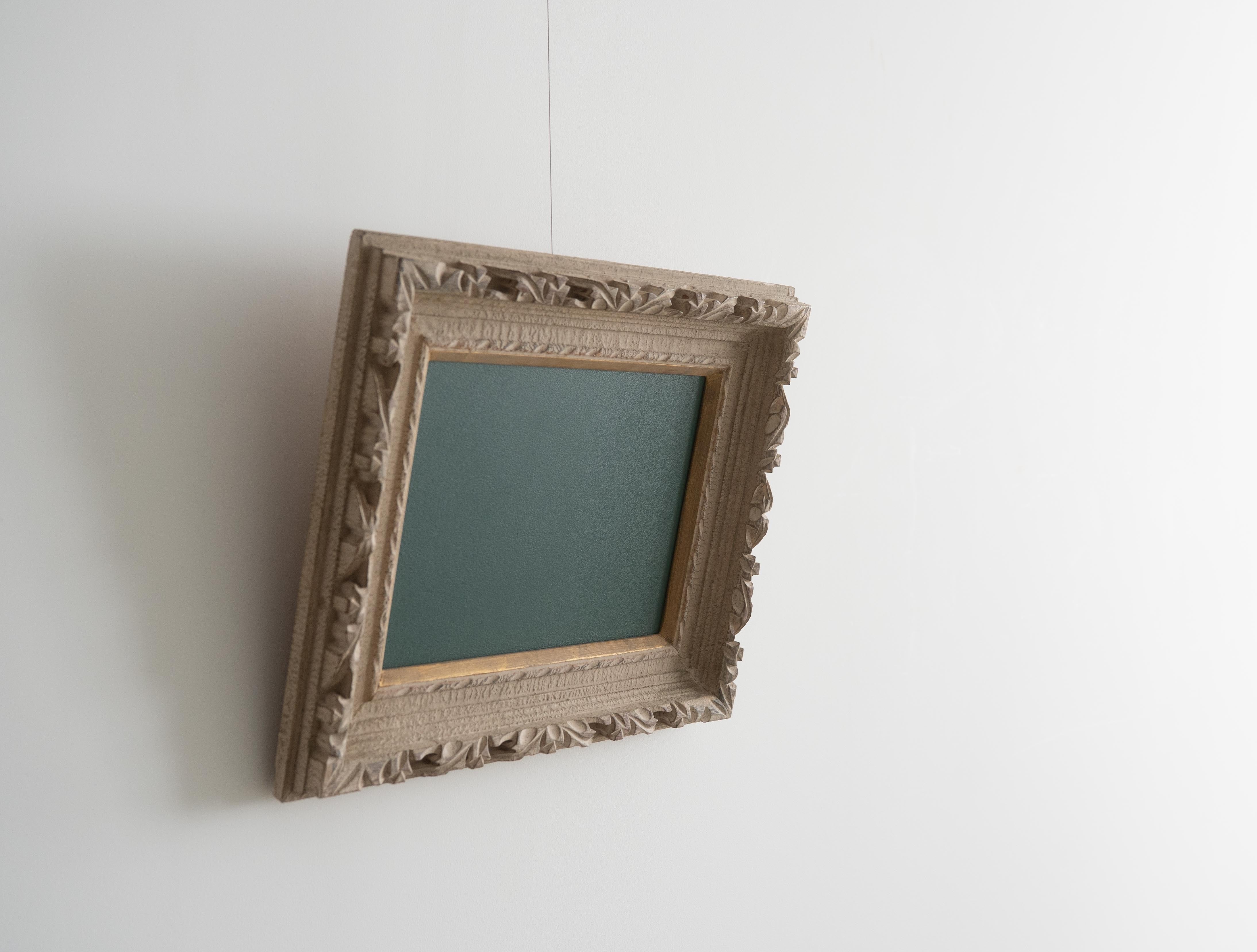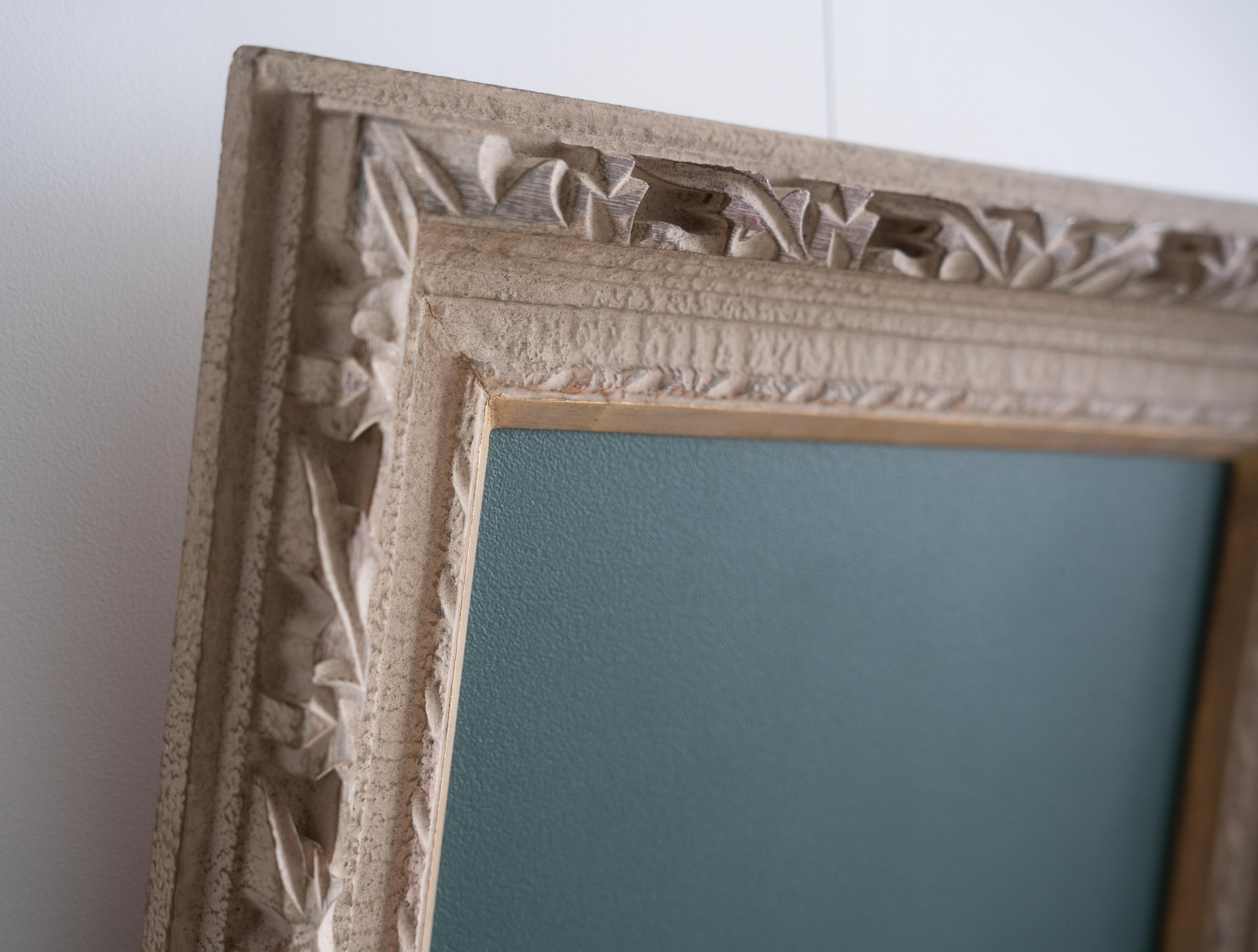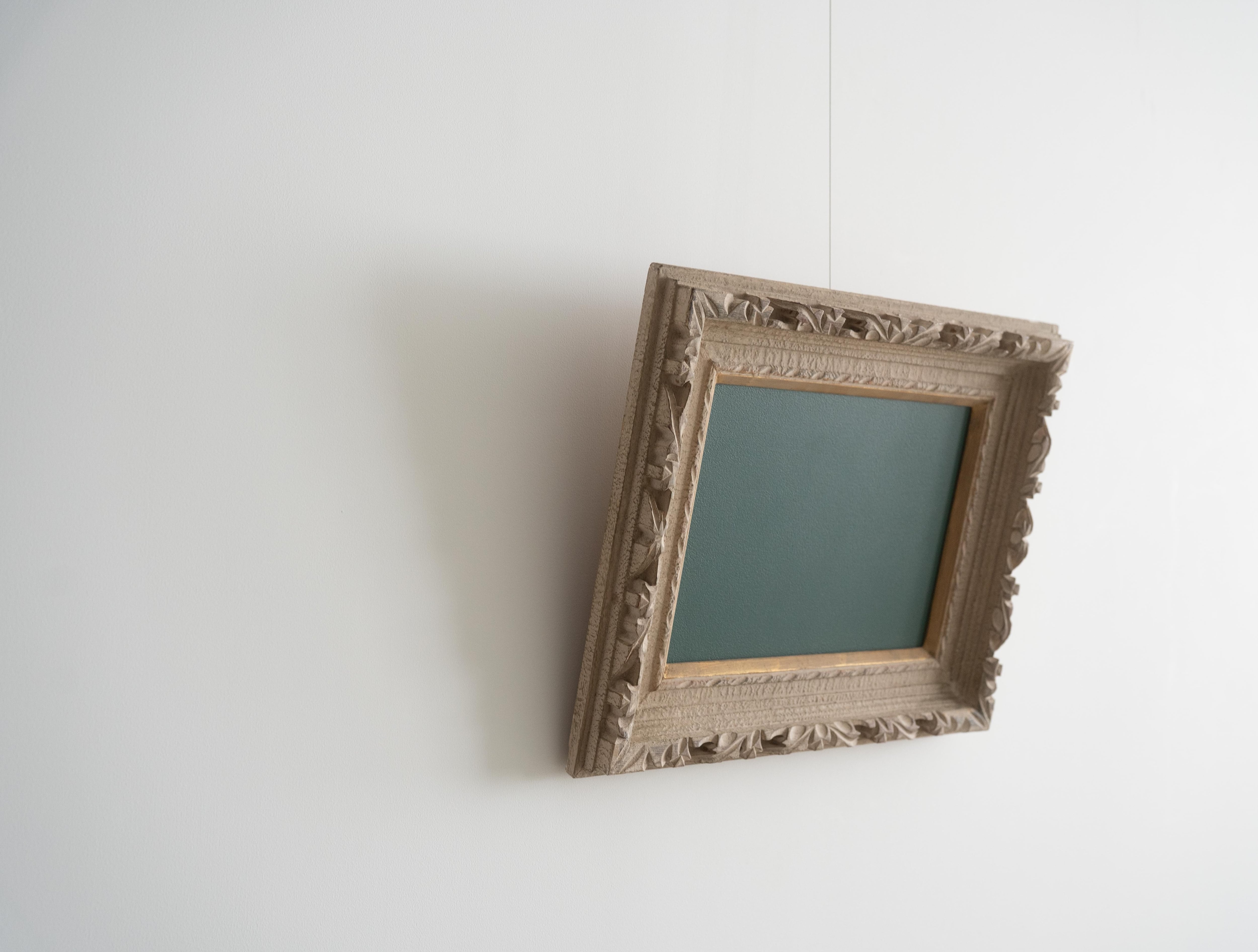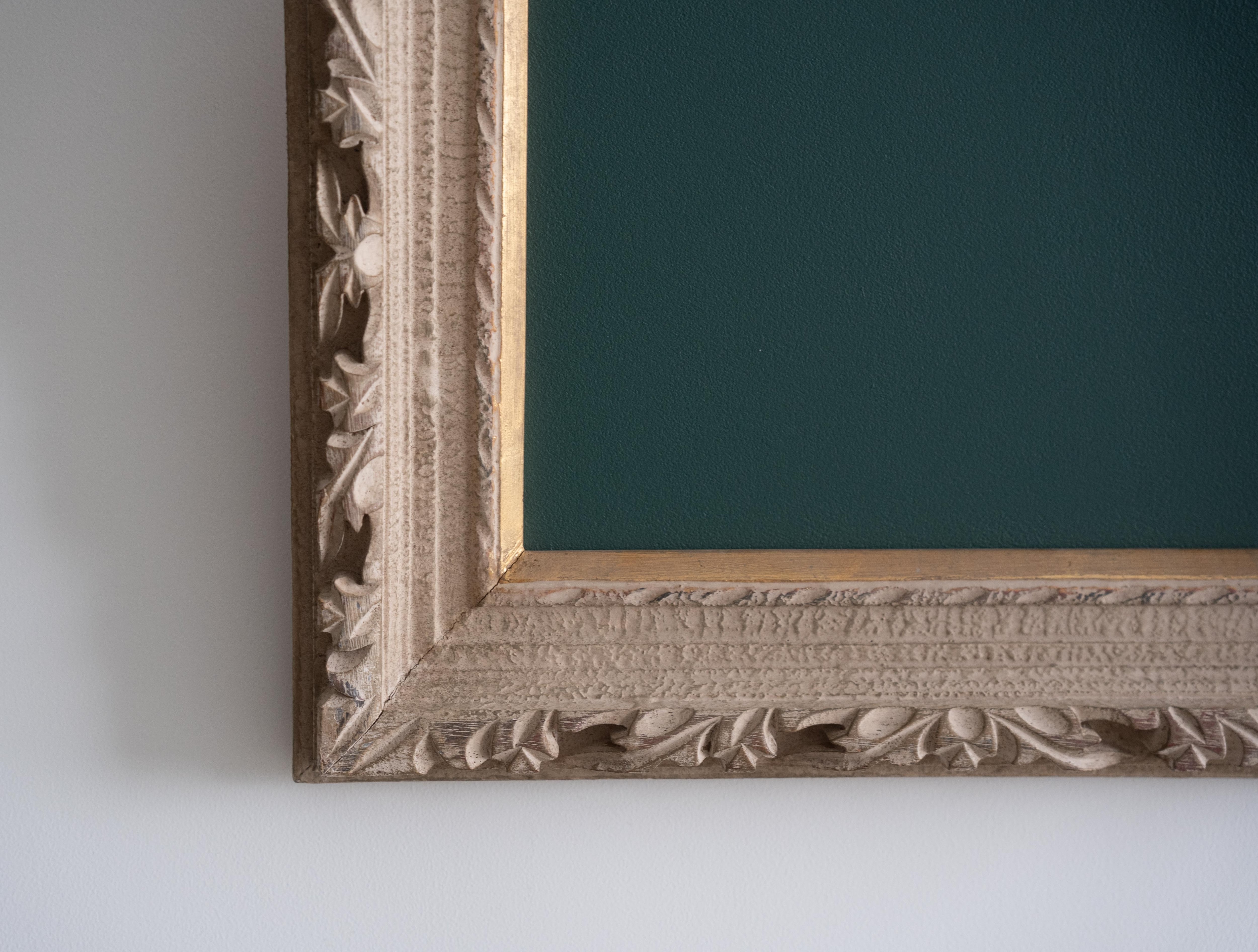 装飾性の高い彫刻フレームが持つクラシカルな存在感と、黒板の素朴で実用的な表情。そのコントラストが、空間にほどよい緊張感と遊び心をもたらします。