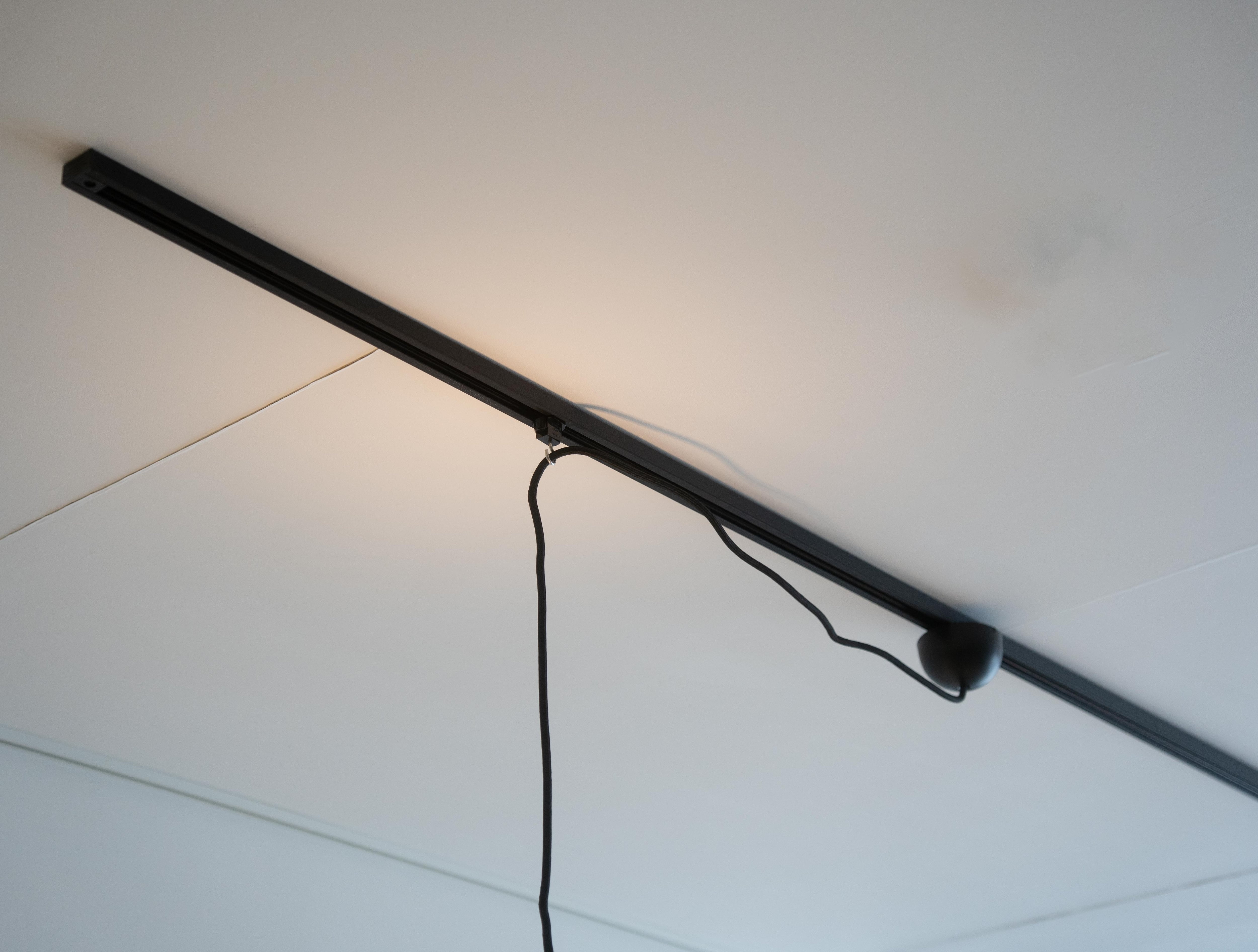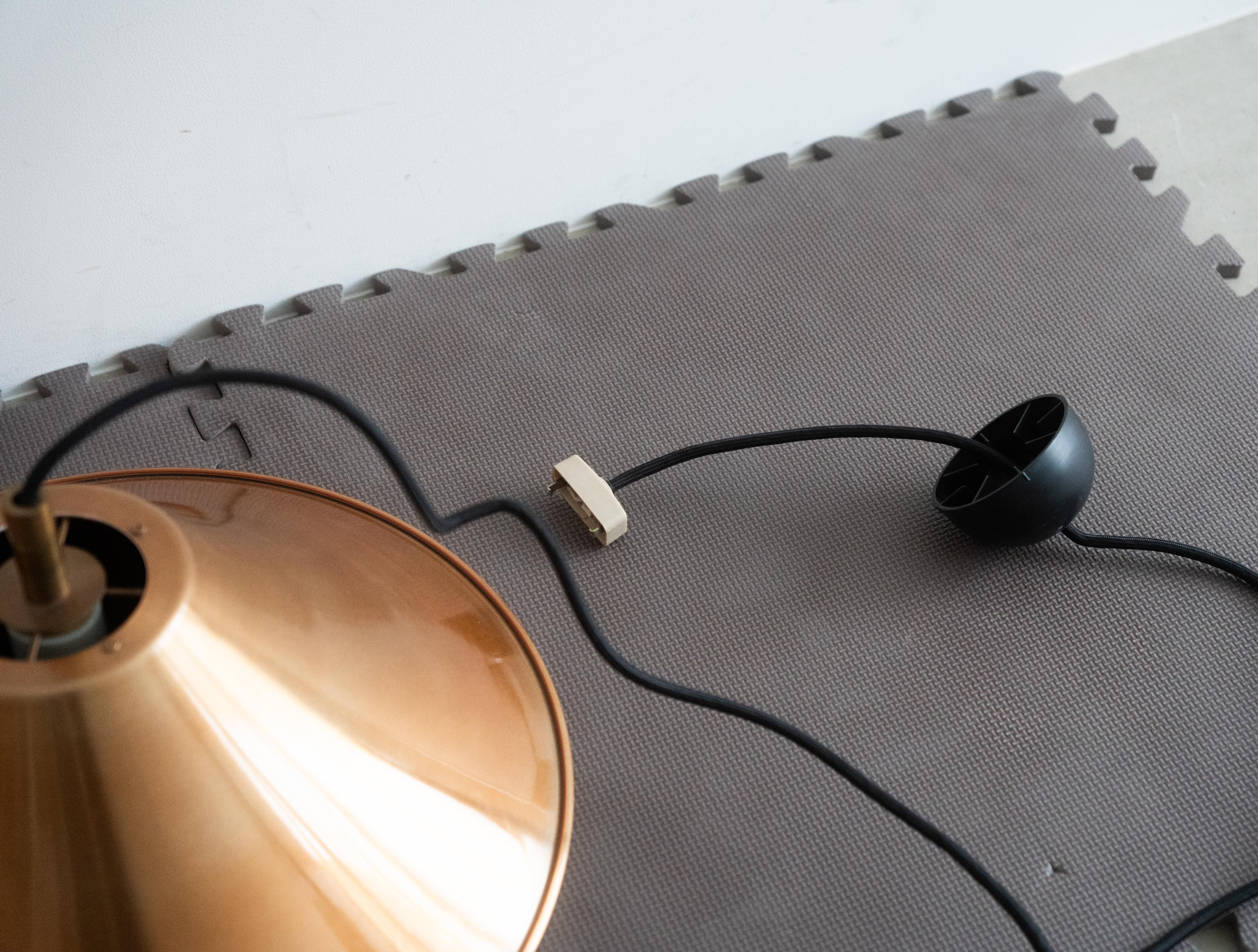 主張しすぎないのに、視線を引き寄せる存在感は無機質な空間に温度を与え、ウッドの家具やヴィンテージアイテムとも自然に調和し、黒のコードが全体を引き締めるアクセントに。