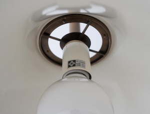 灯りをともすと、内面で拡散した光が下方向へと穏やかに広がり、ダイニングやカウンターを心地よく照らします。