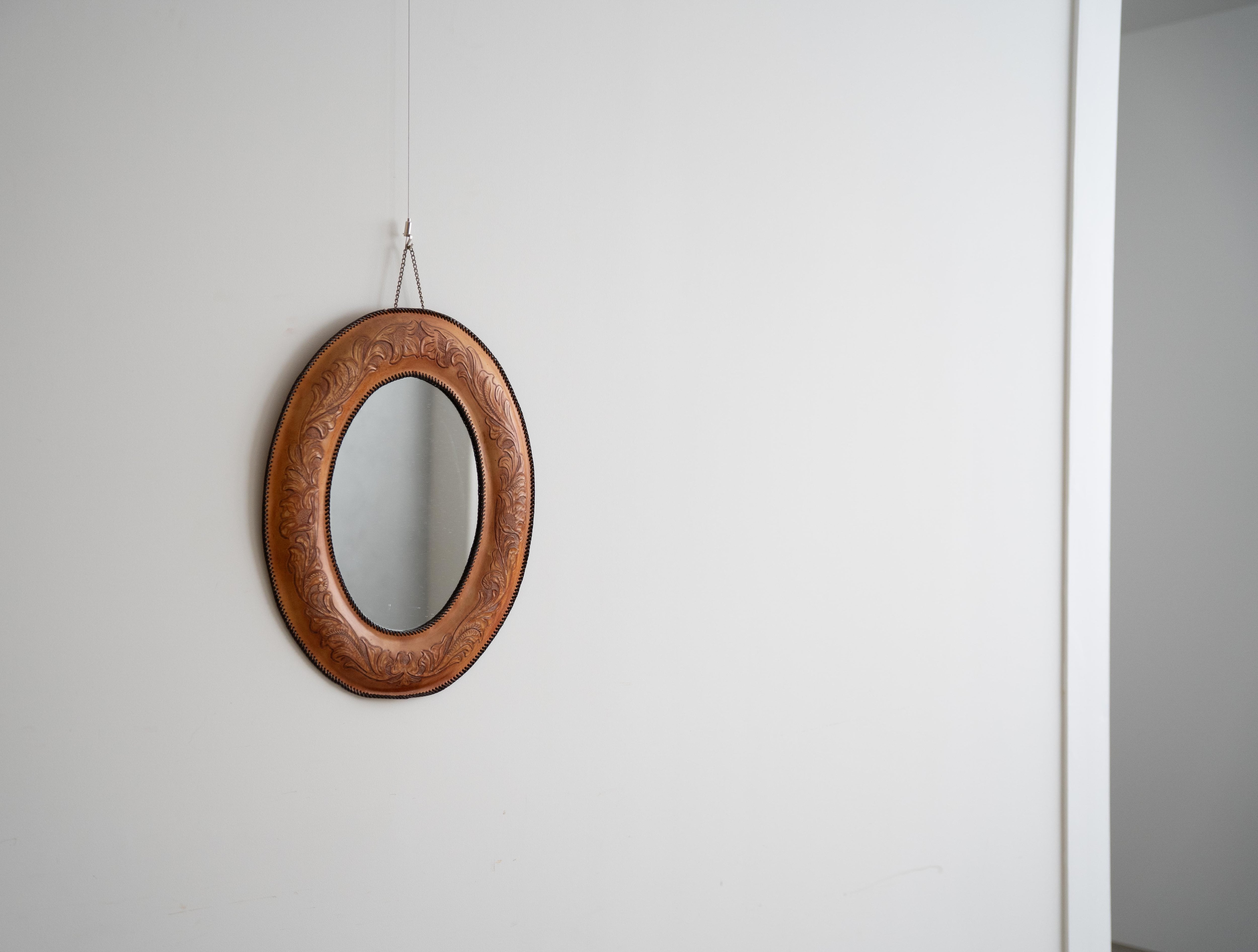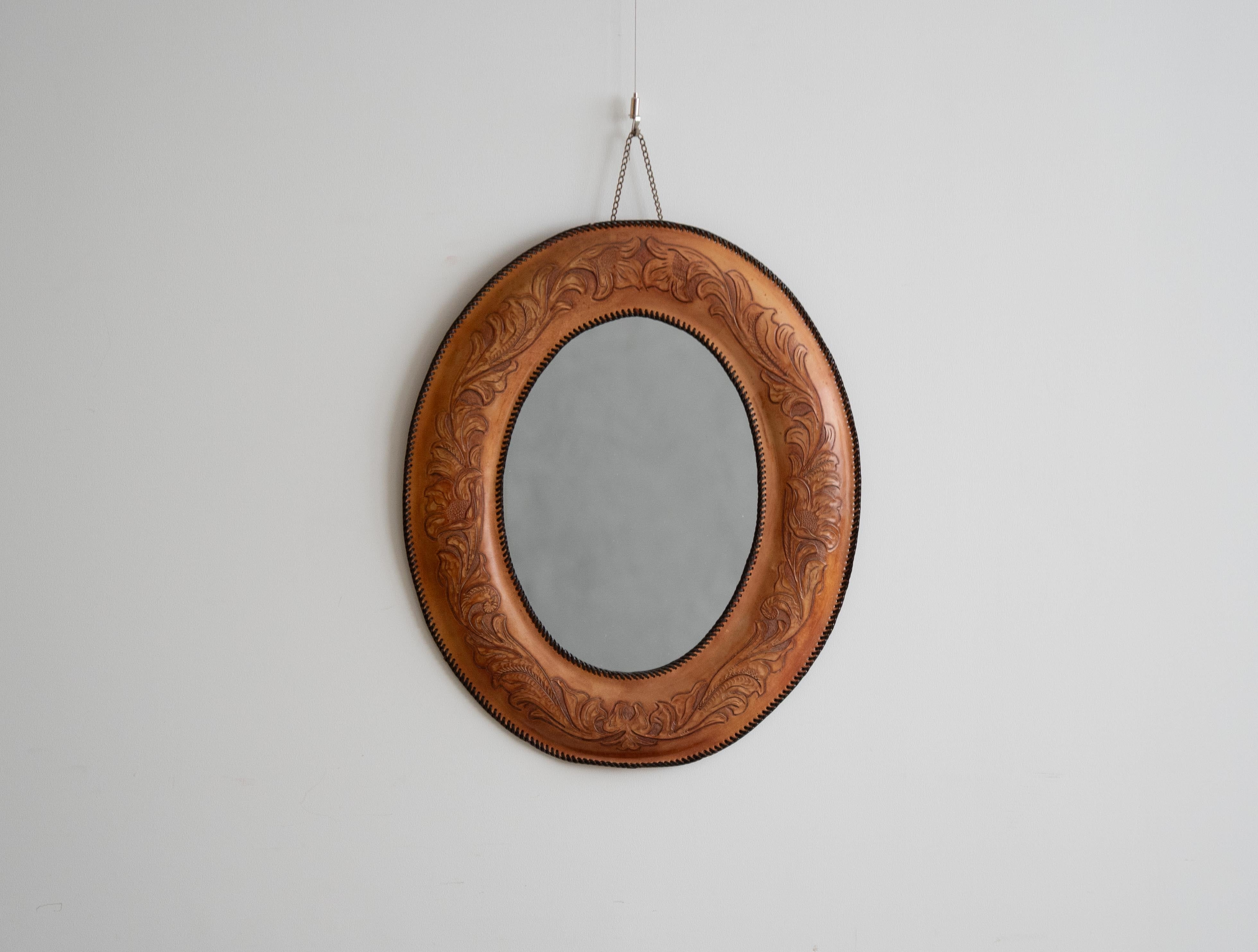 【送料無料】 カービングレザー ウォールミラー