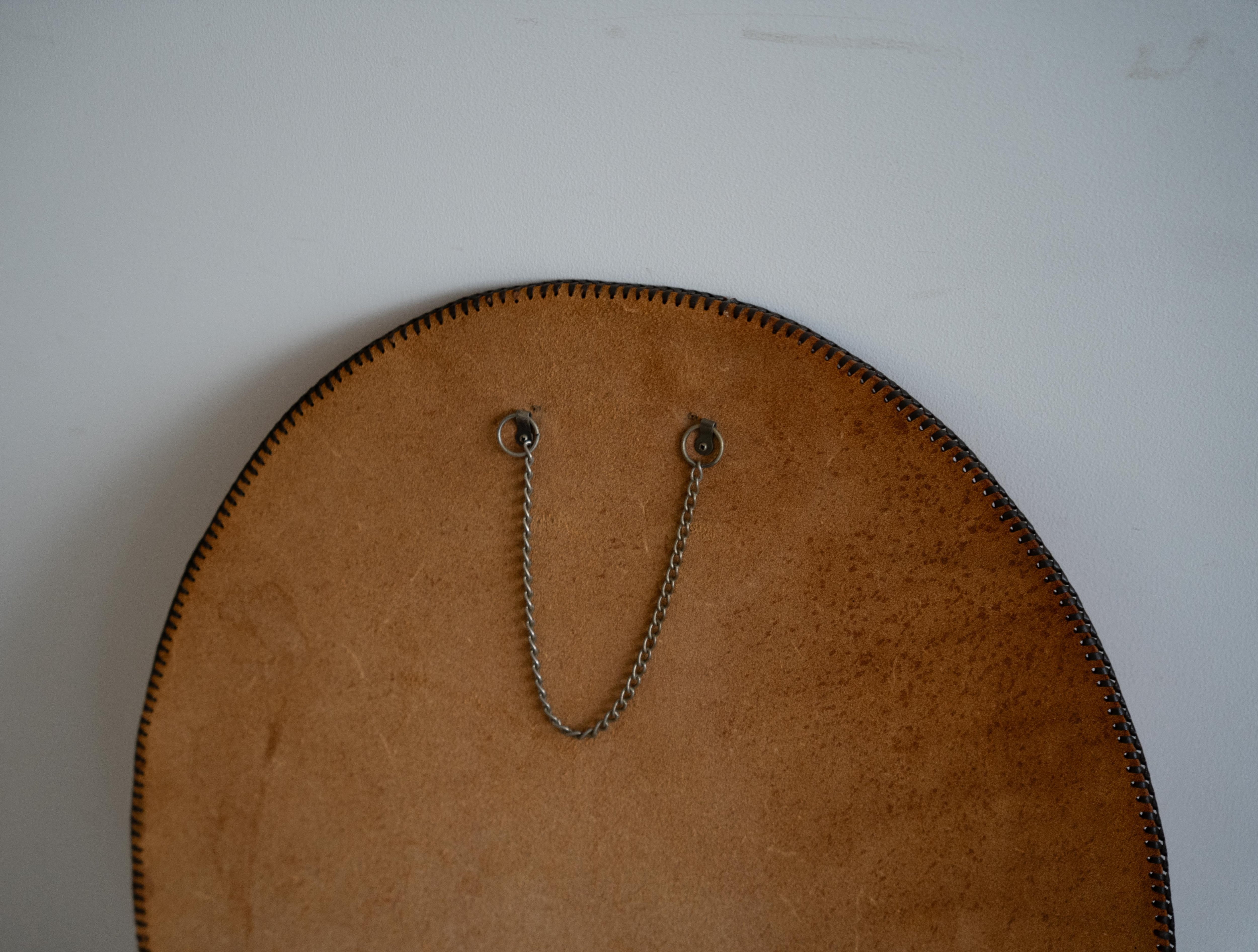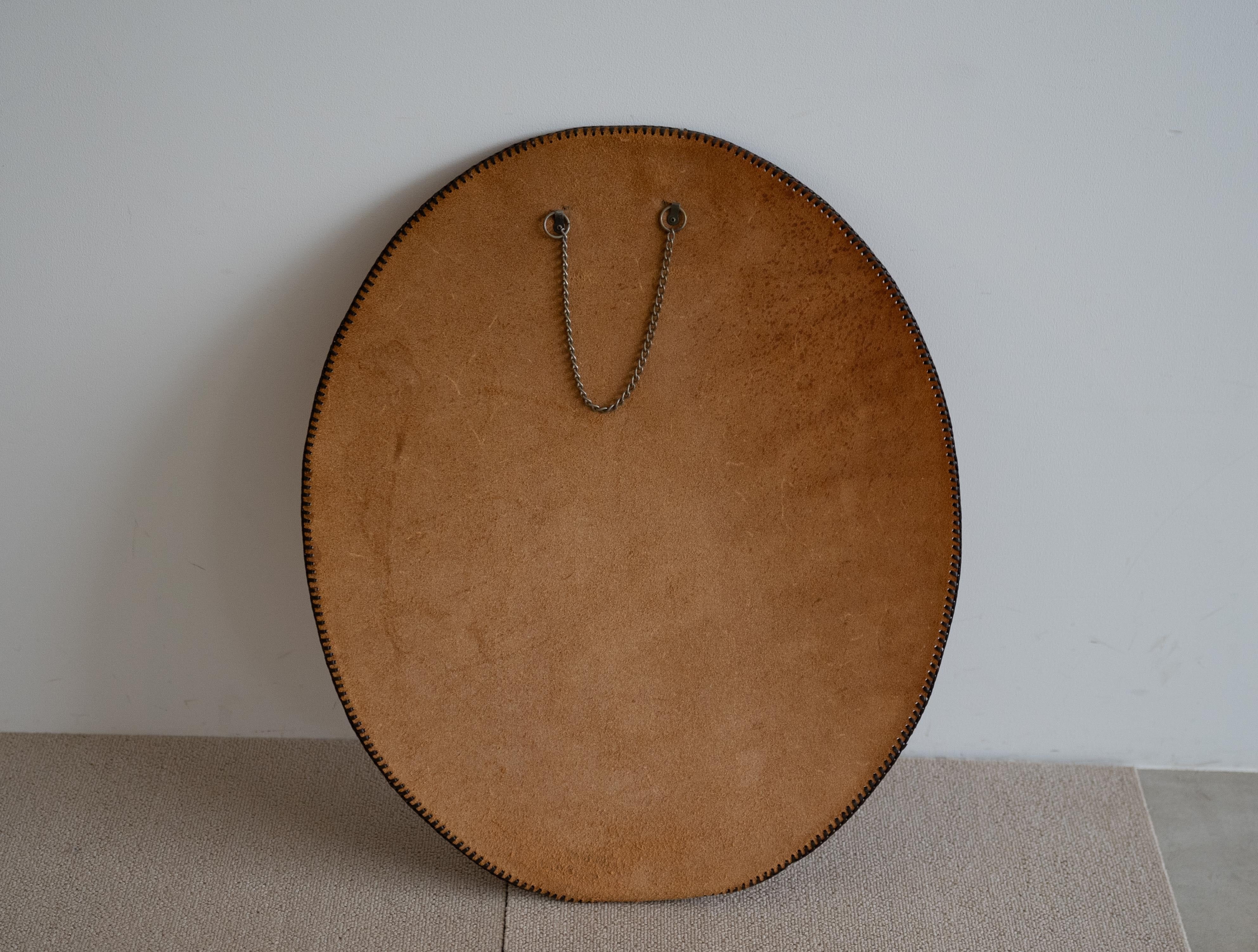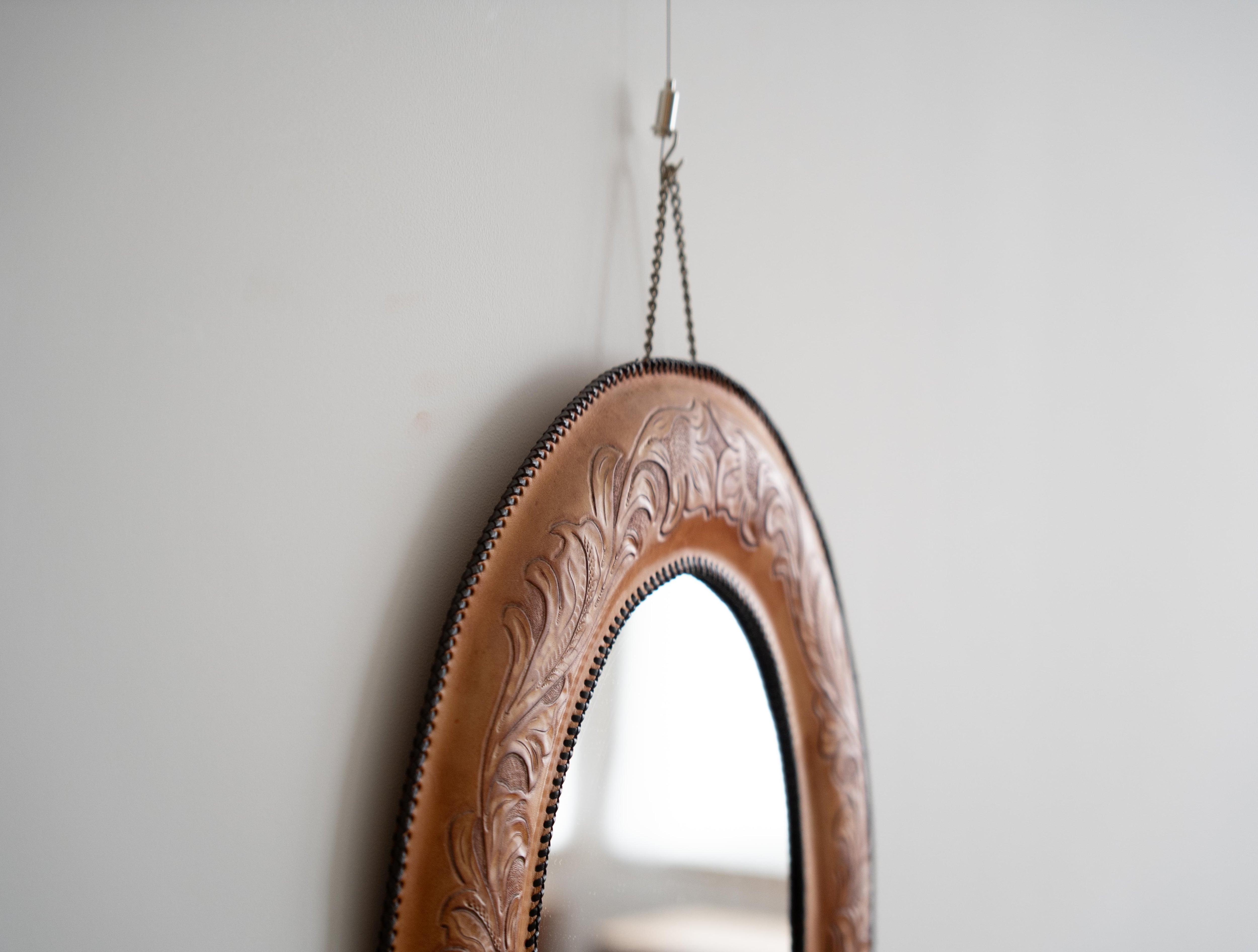 レザー素材ならではの質感と重厚感が魅力のウォールミラー。