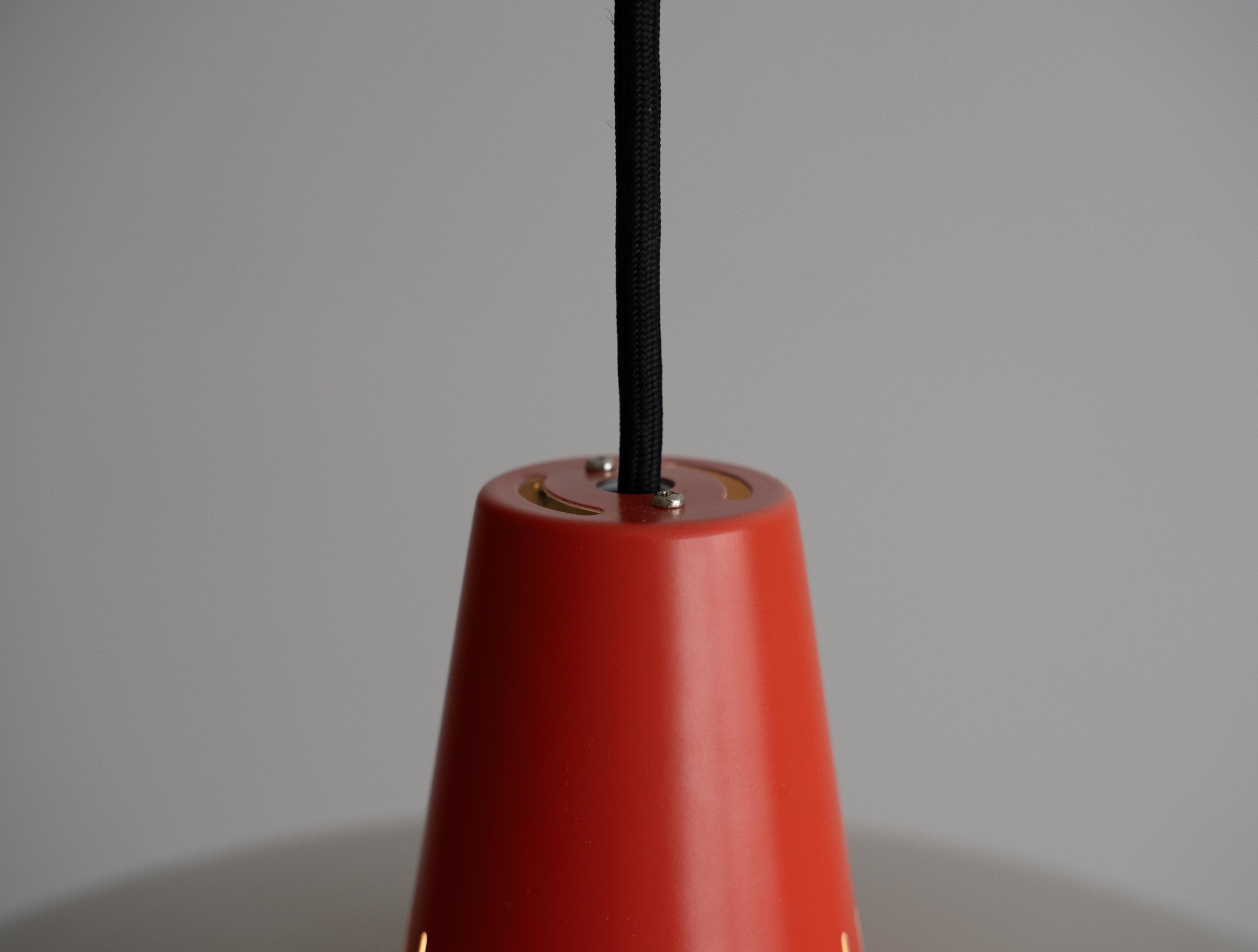 レトロな佇まいに、差し色の朱色が温かみを添える絶妙な配色が目を引きます。