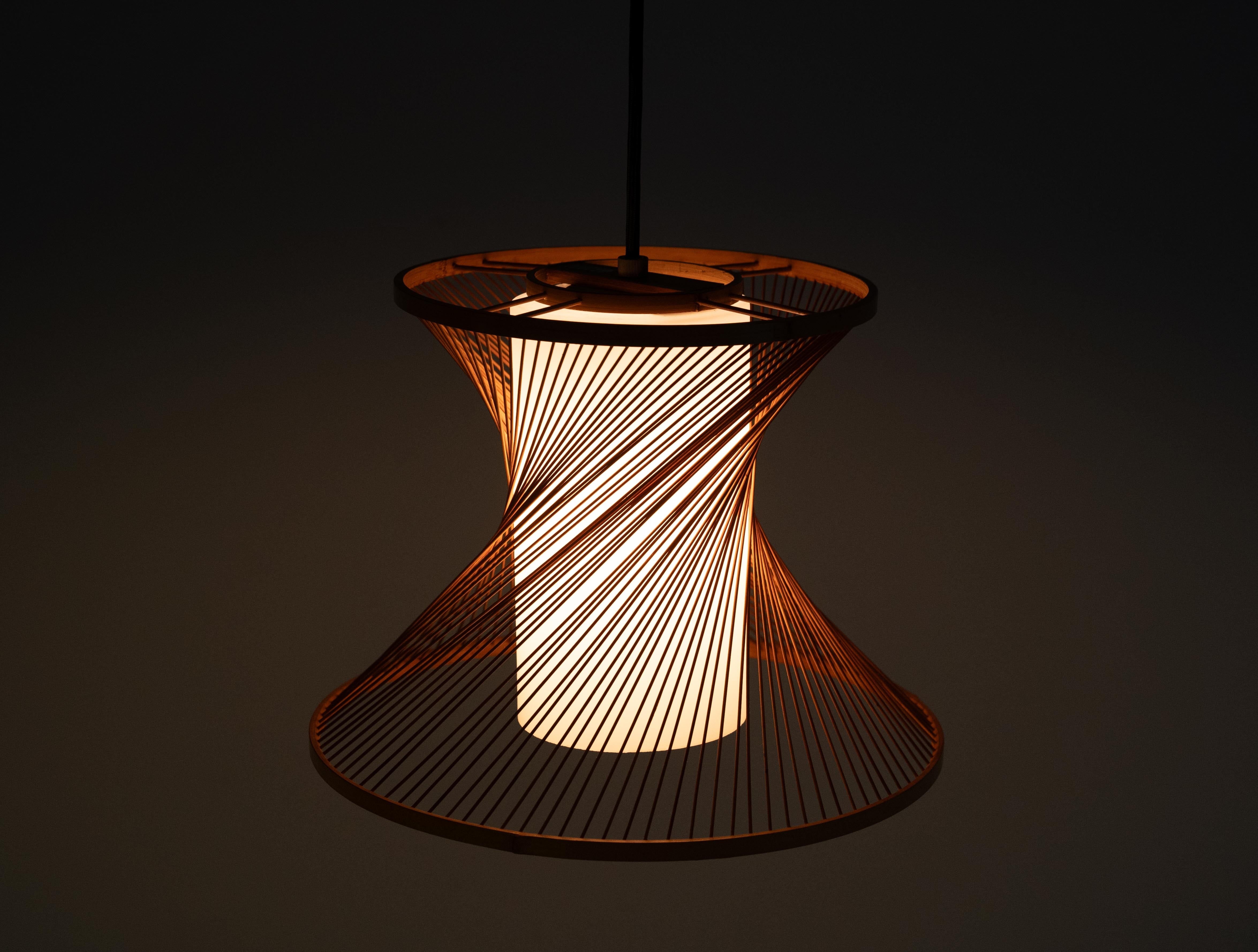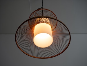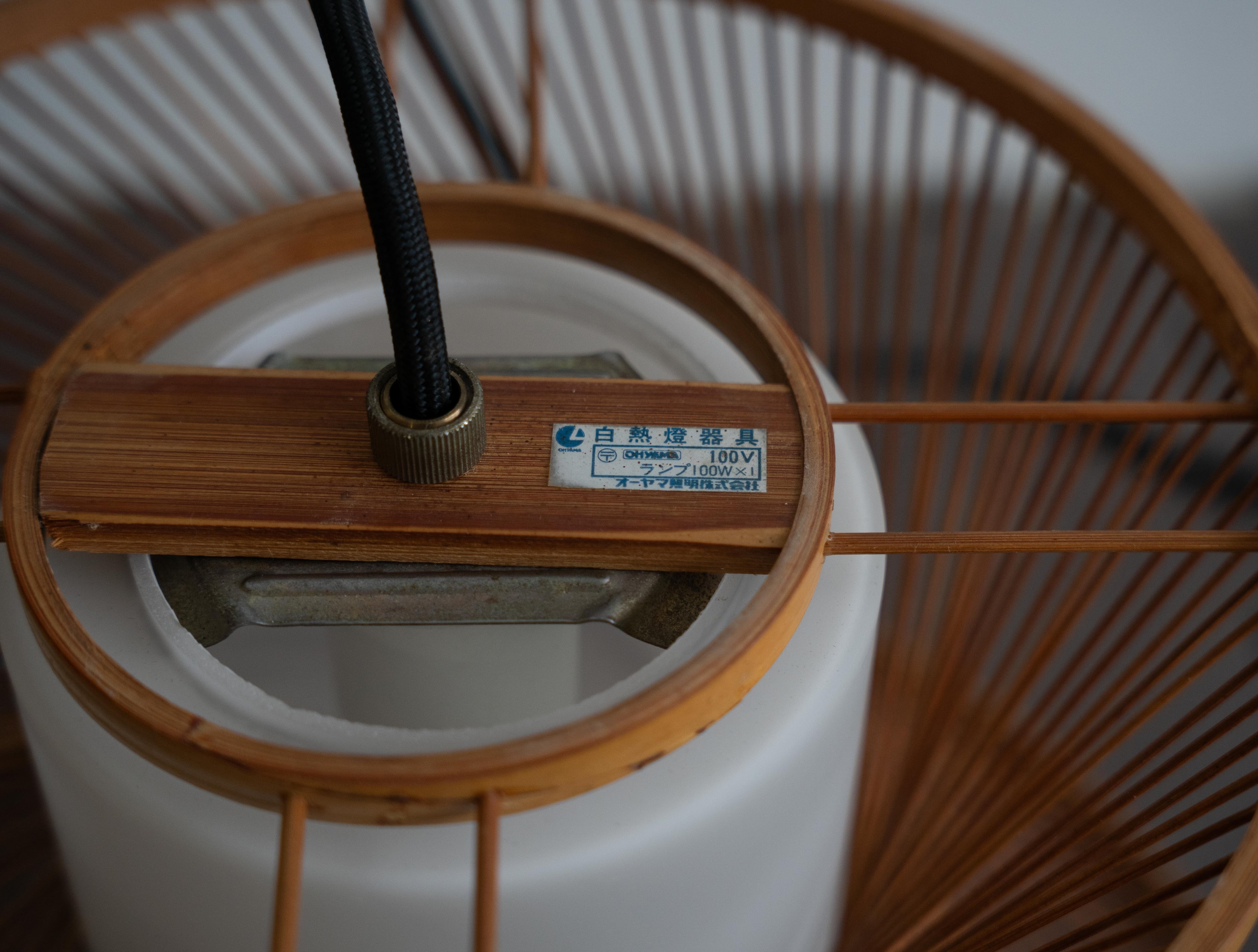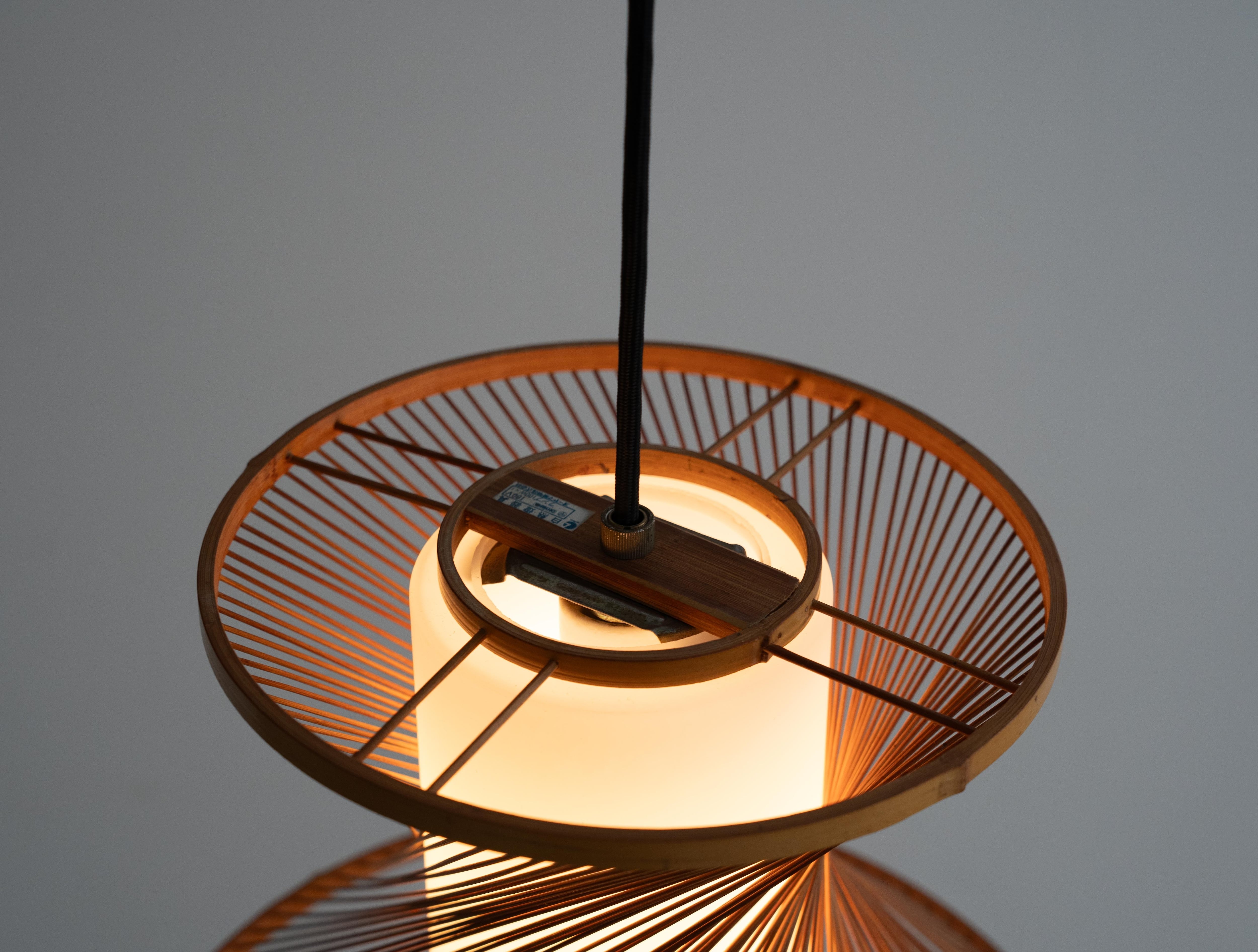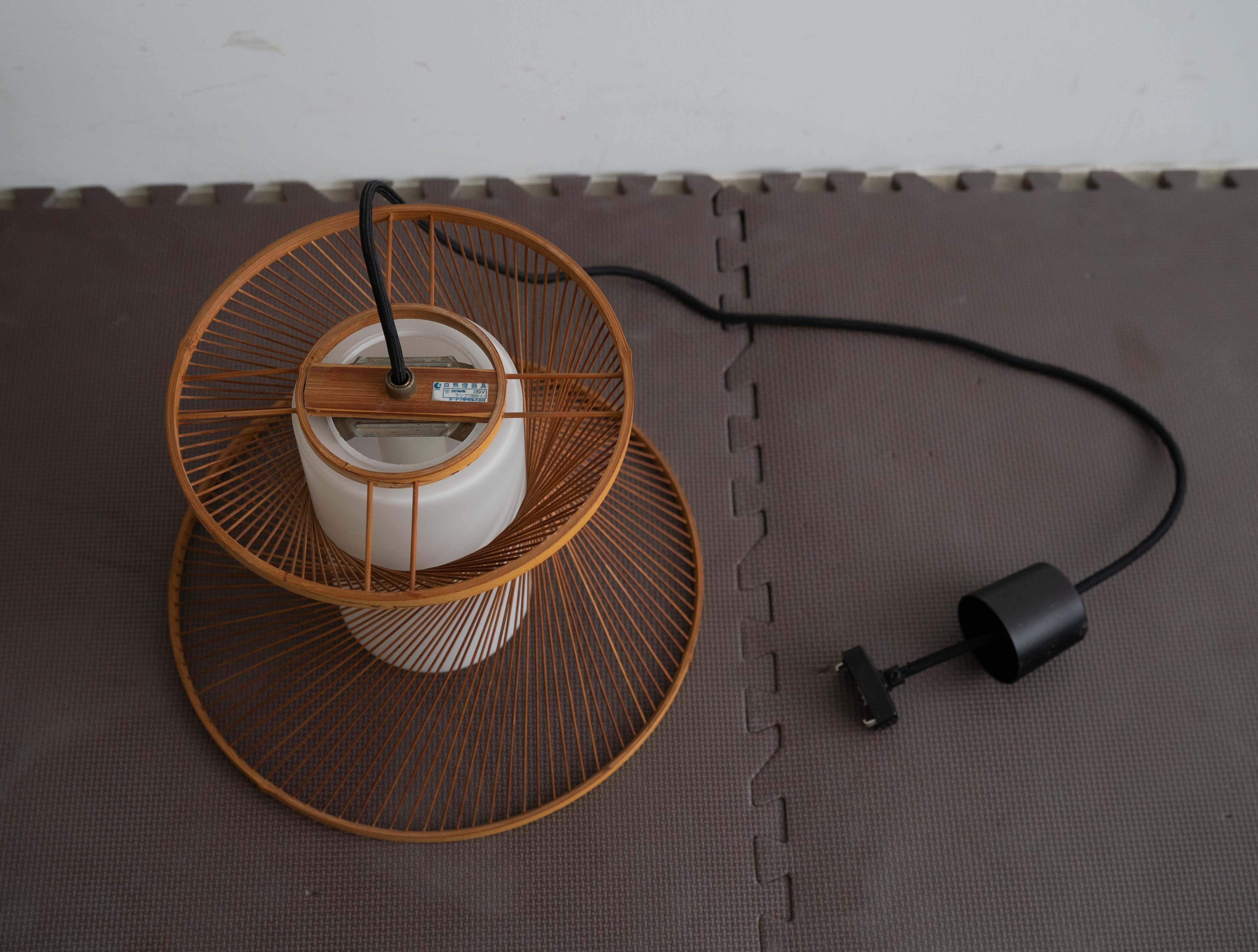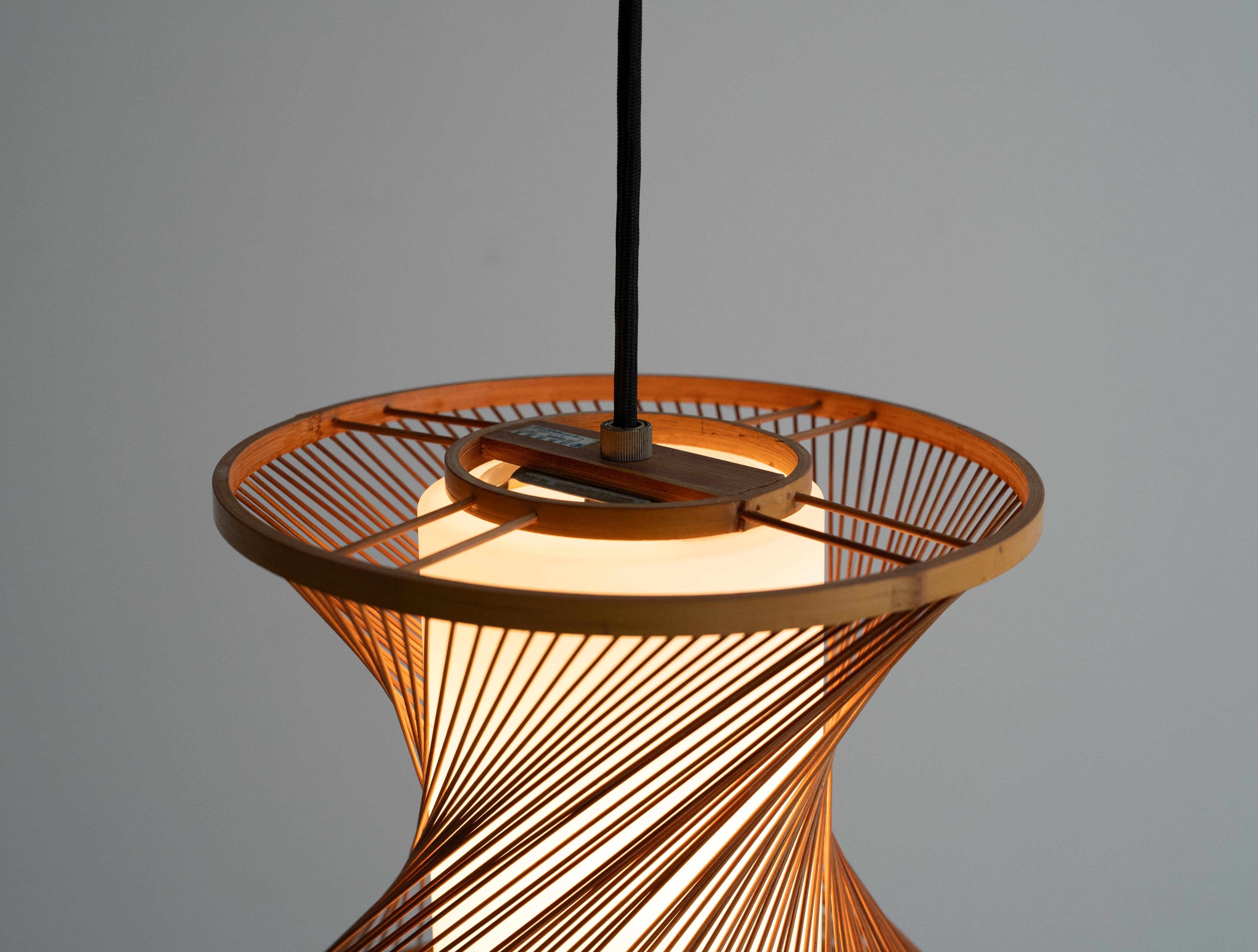 繊細な竹ひごがやわらかな曲線を描く70年代の国産ヴィンテージペンダントライト。
