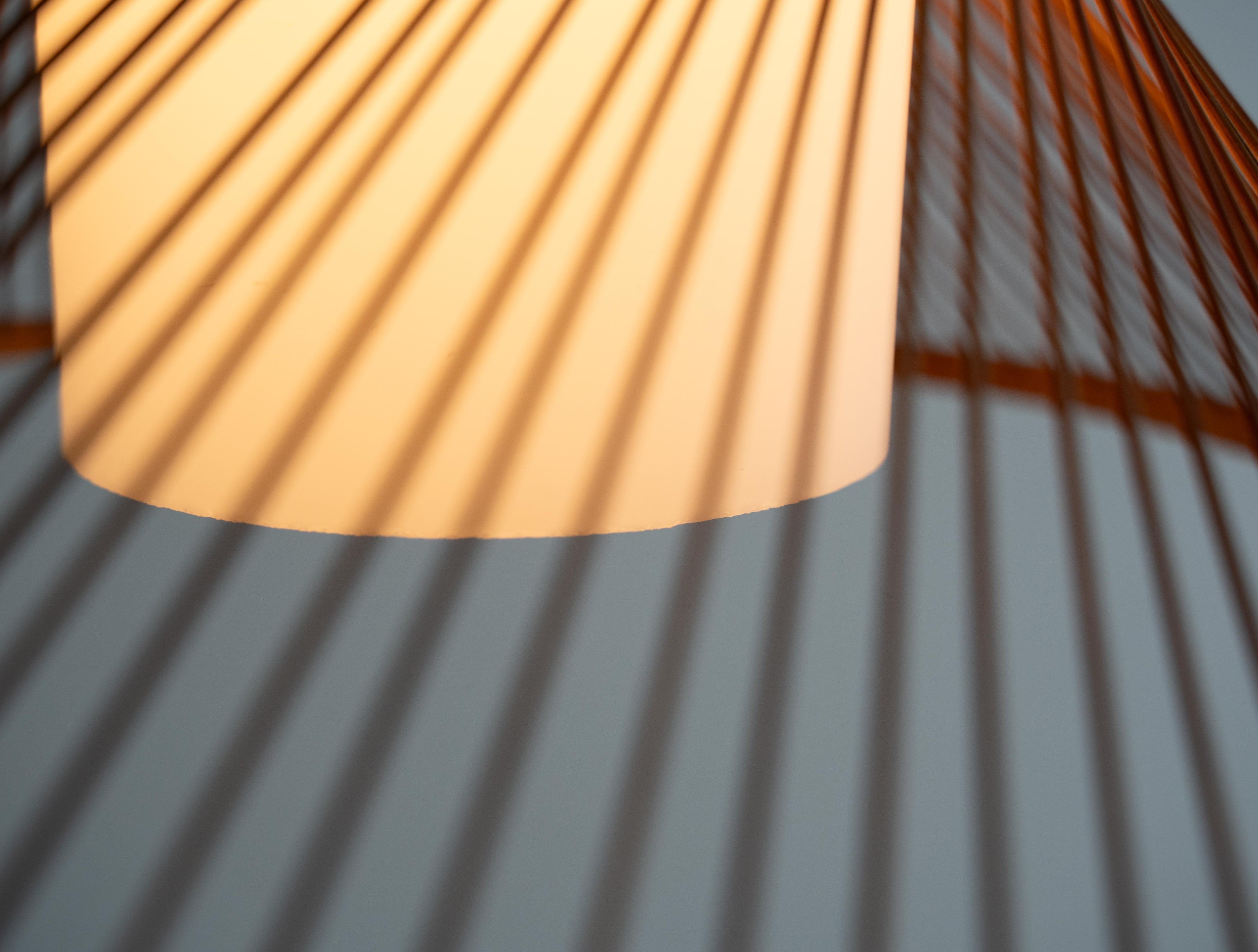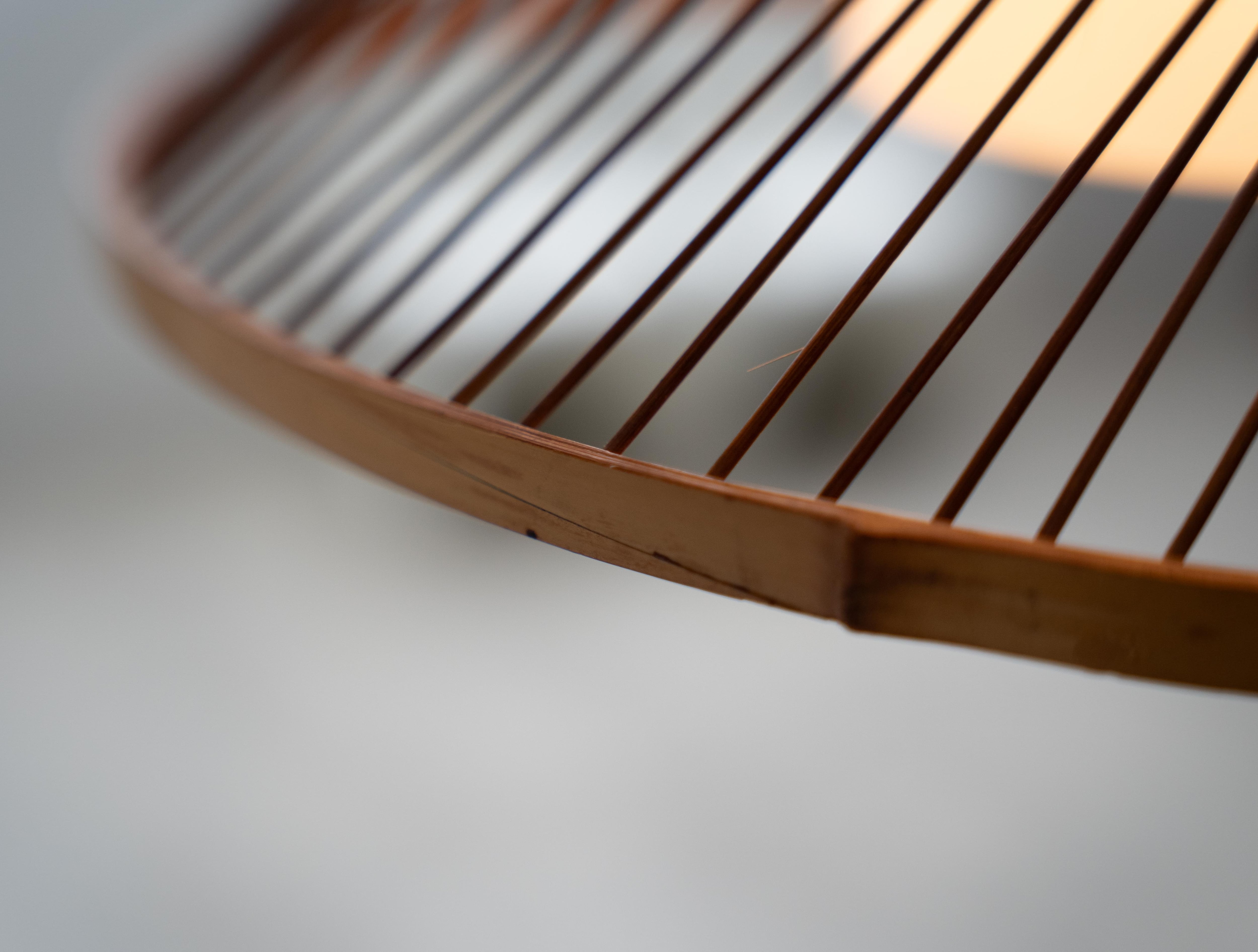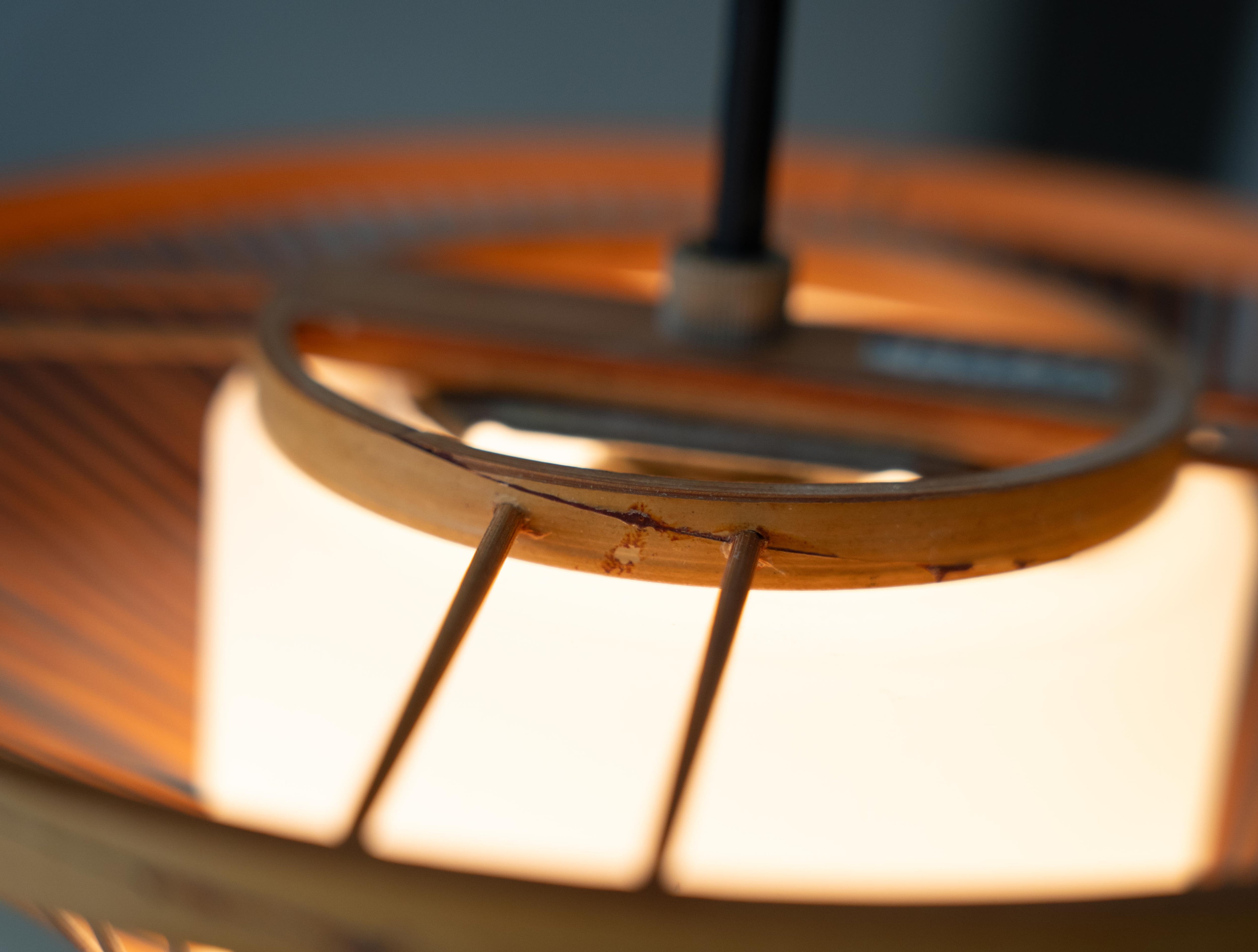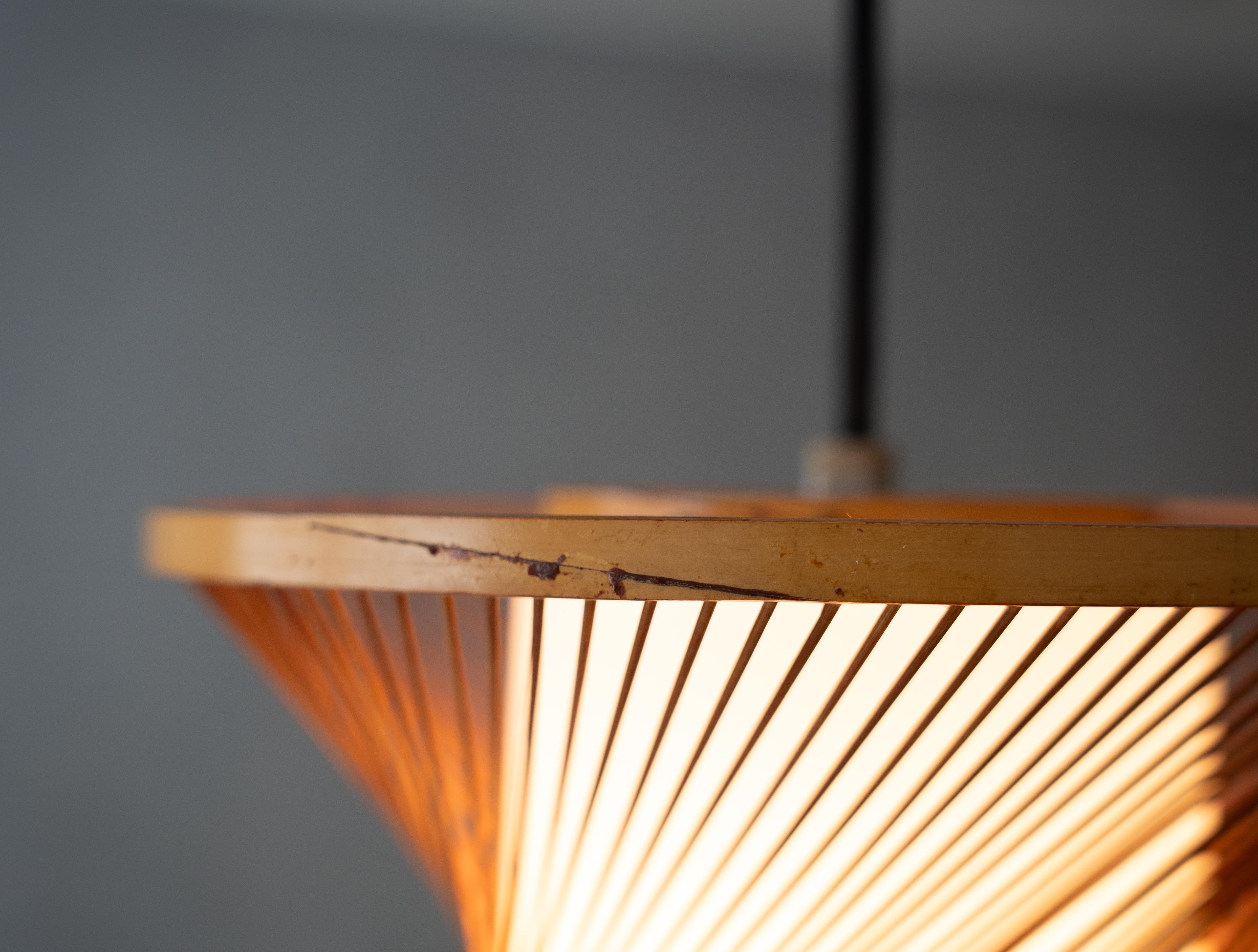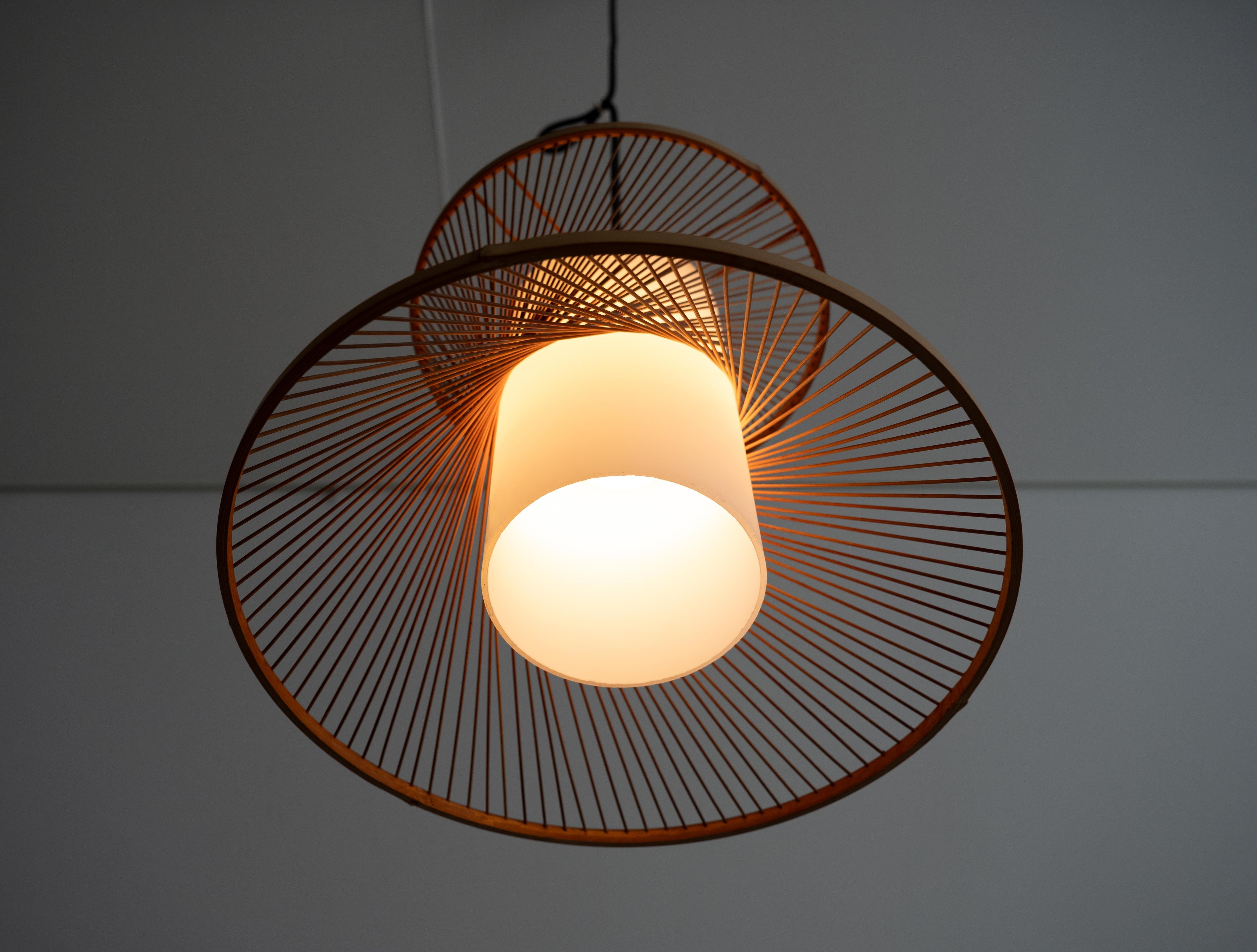 繊細な竹ひごがやわらかな曲線を描く70年代の国産ヴィンテージペンダントライト。