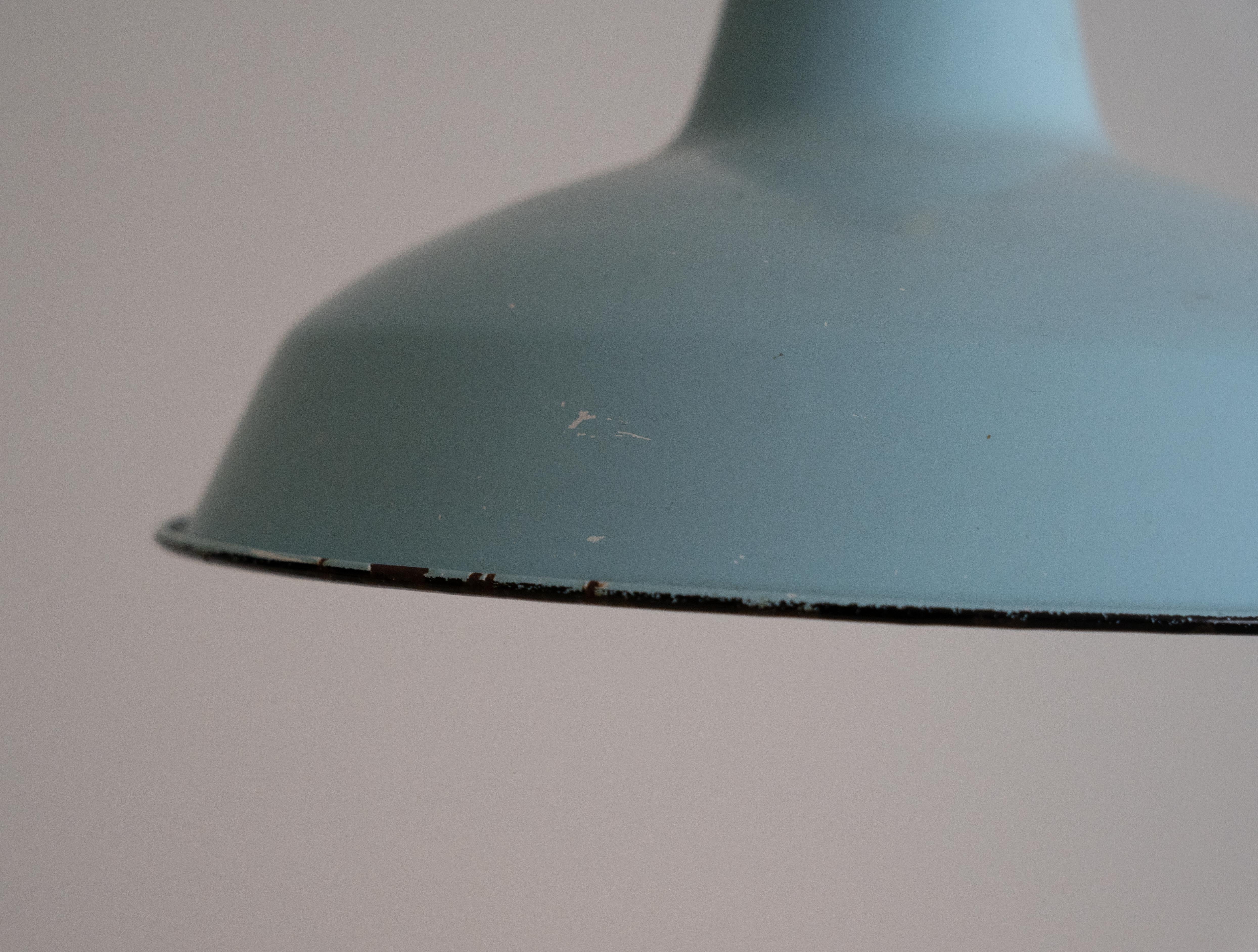 サビや変色、独特のやれ感が魅力的な表情を見せるシェードの水色と真鍮の組み合わせが秀逸なコンビネーションで、カフェ風のインテリア、インダストリアルなインテリアに相性が抜群です。