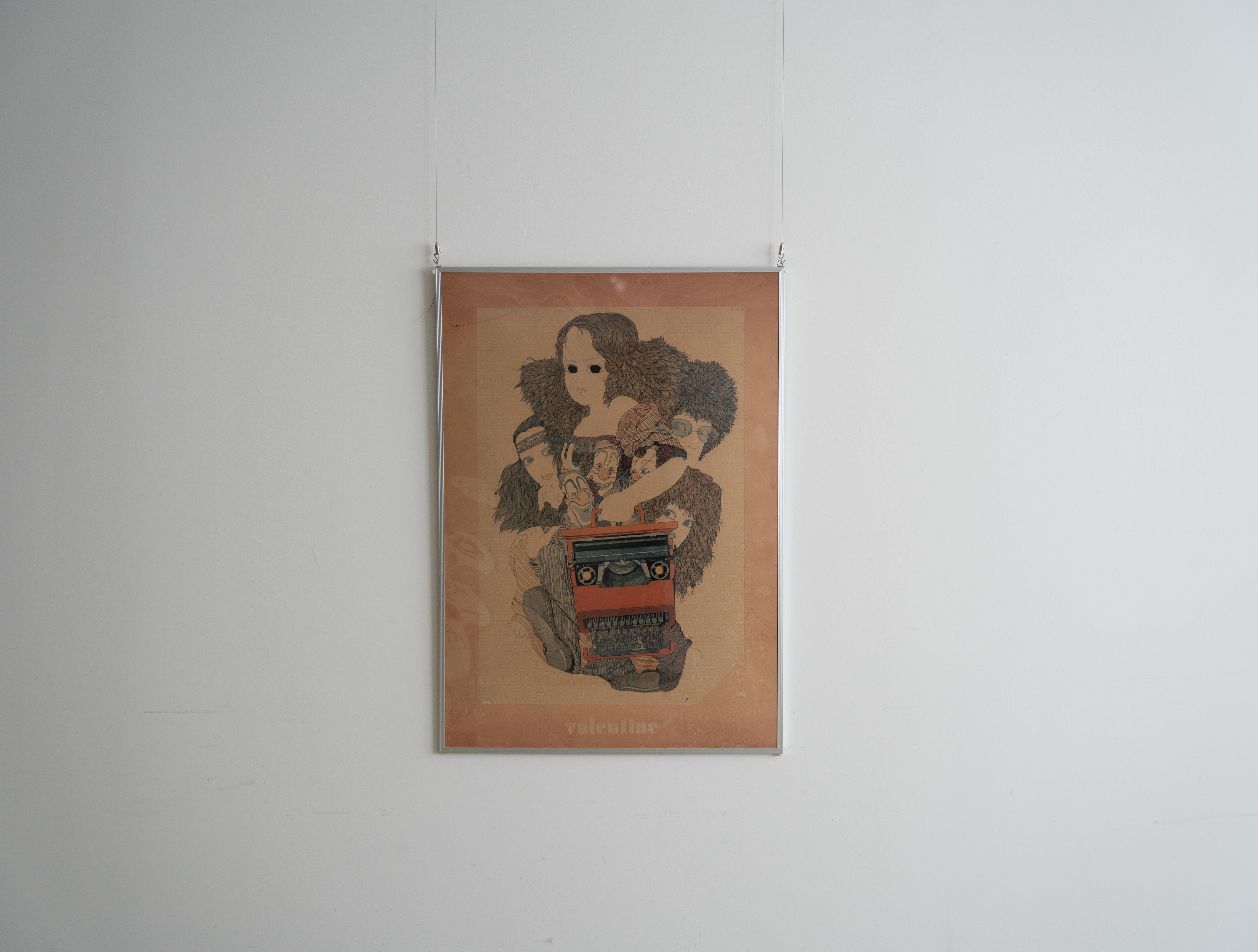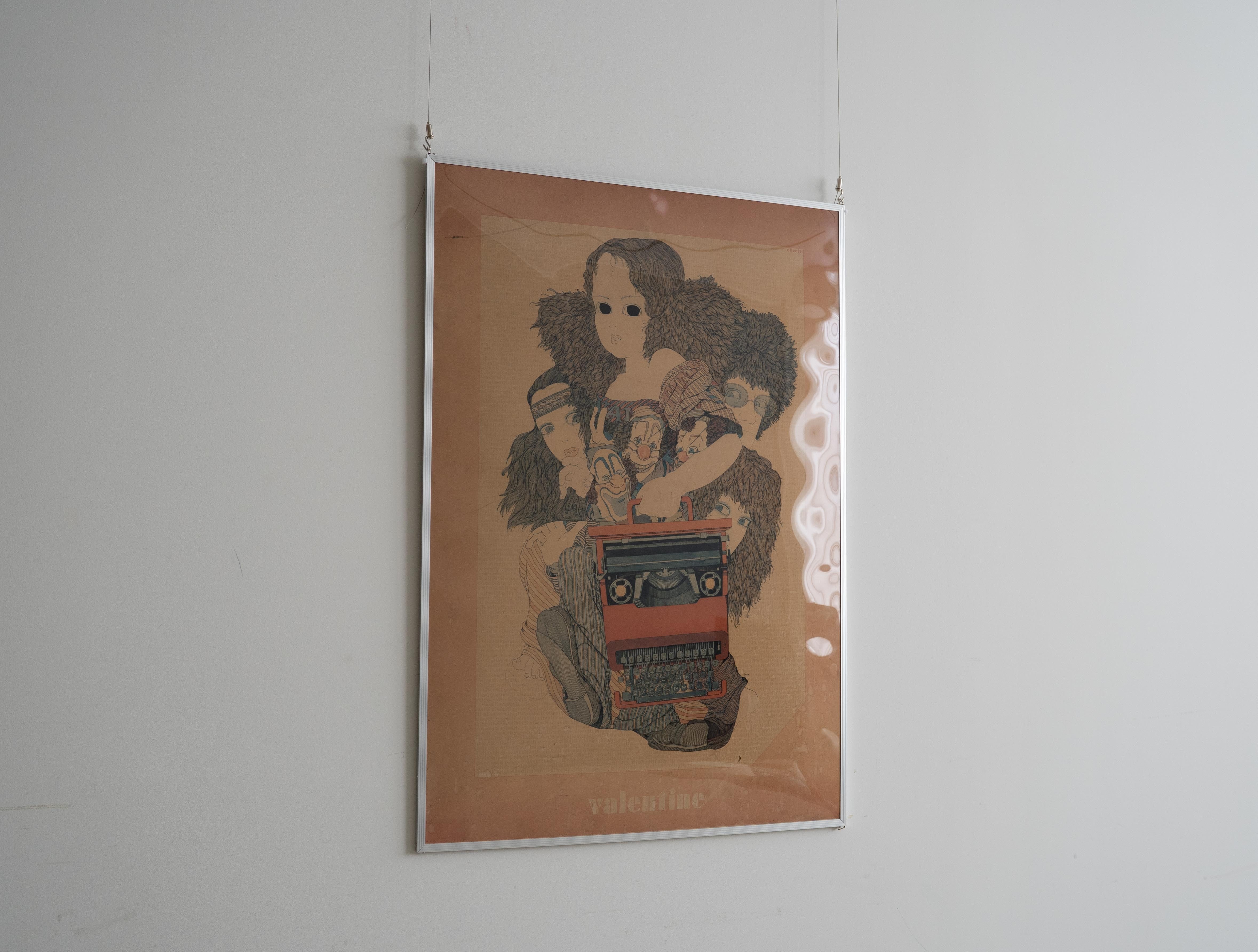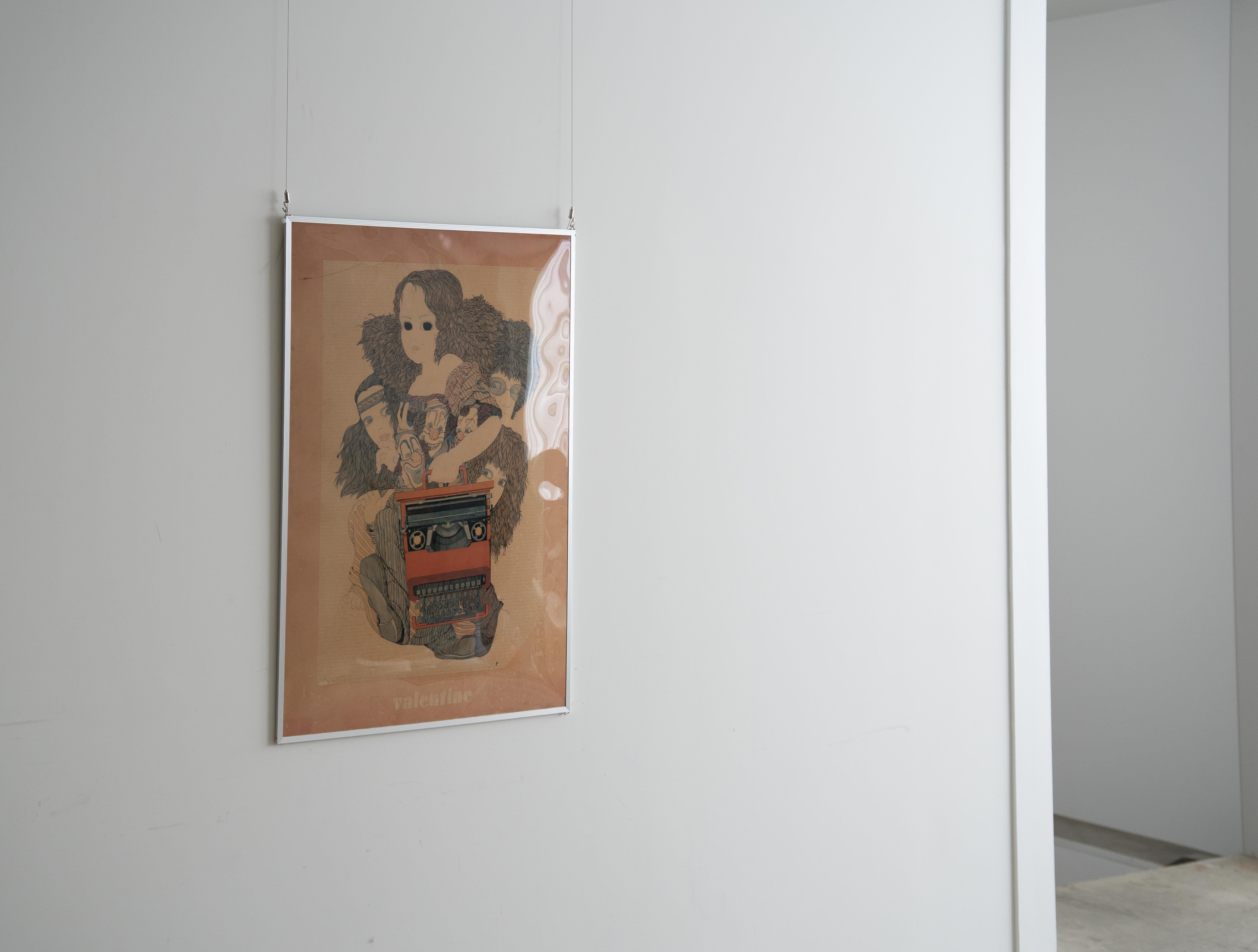 日本のイラストレーター 伊坂芳太良(いさか よしたろう) による、オリベッティ社のタイプライター 「Valentine」 の広告ポスターです。