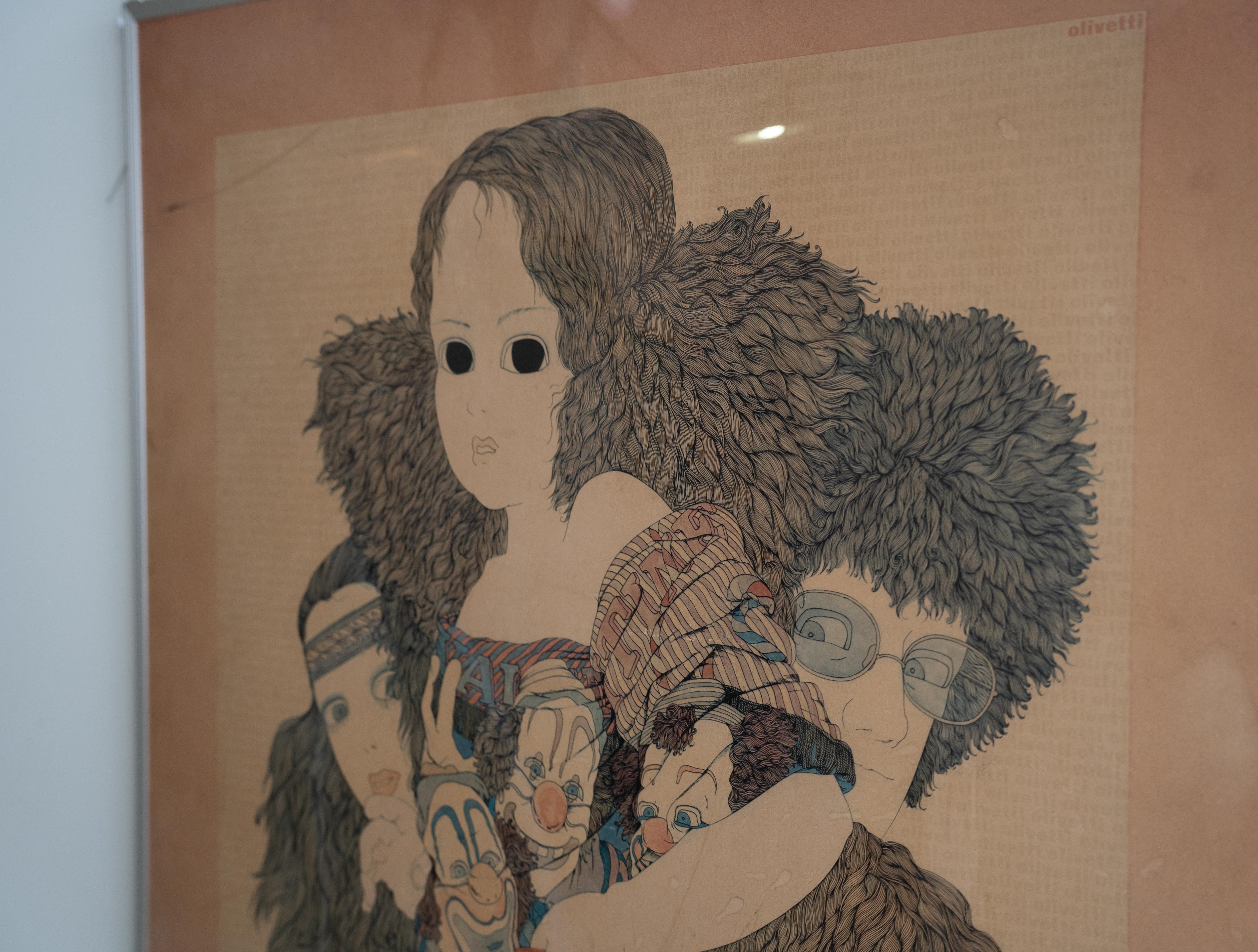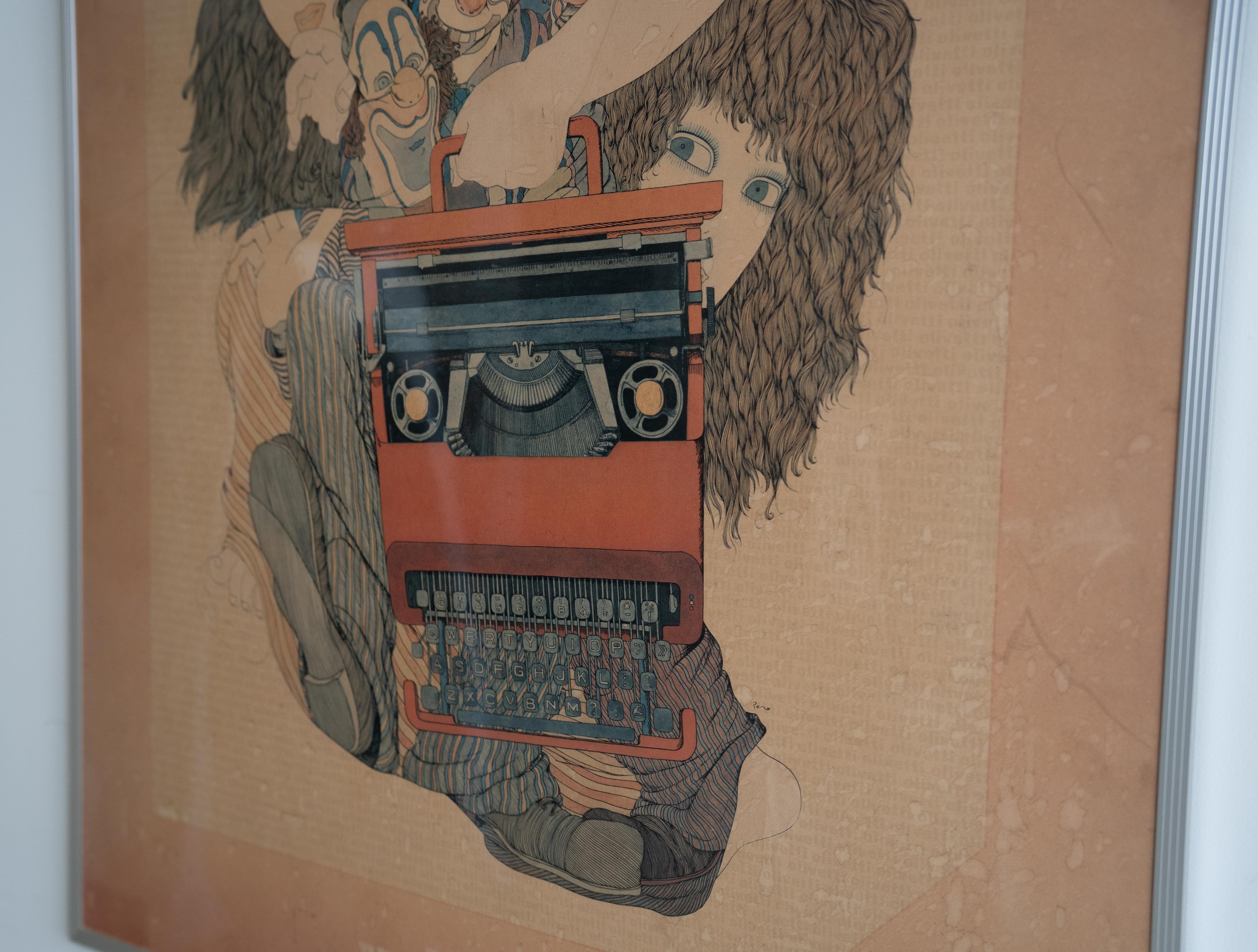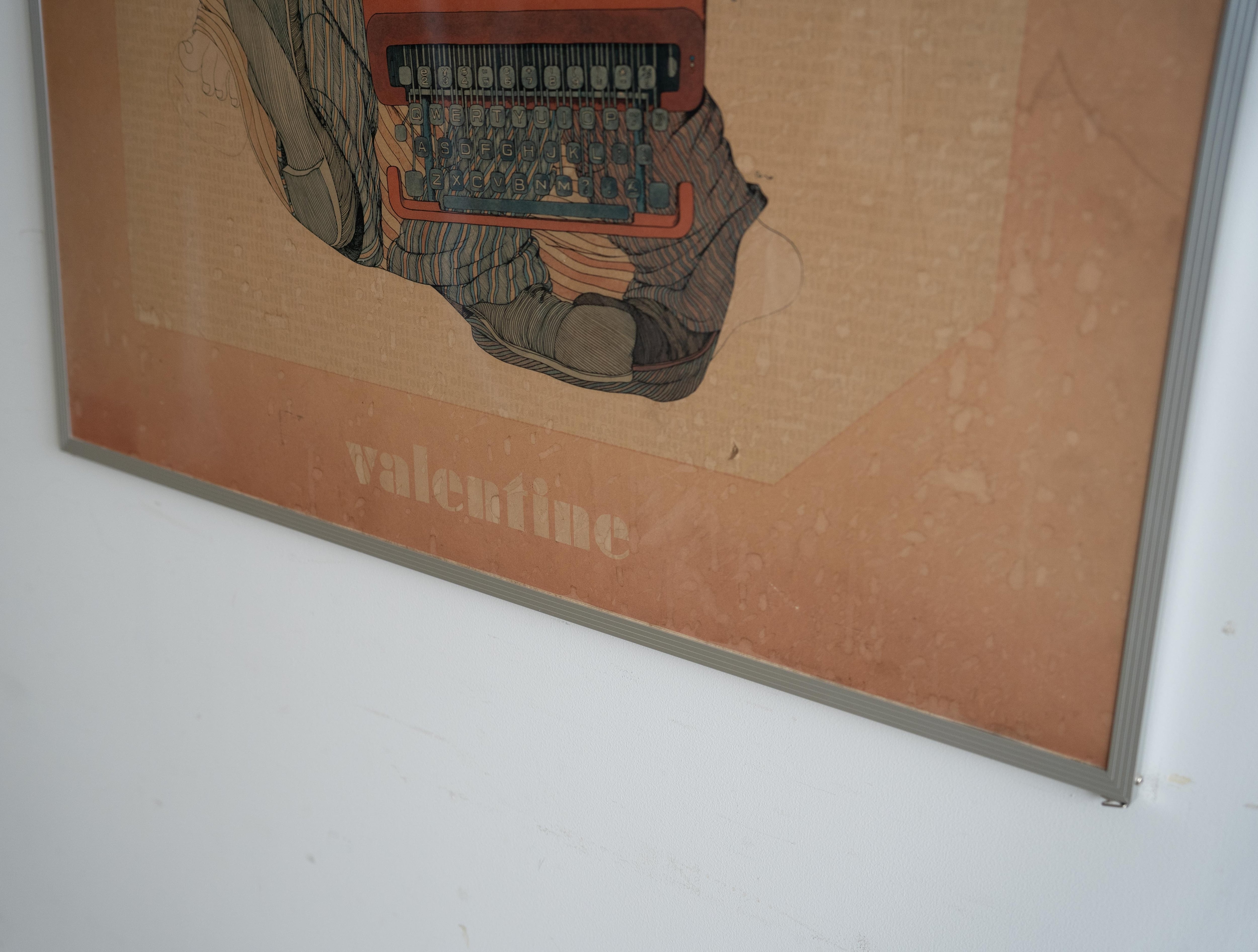 日本のイラストレーター 伊坂芳太良(いさか よしたろう) による、オリベッティ社のタイプライター 「Valentine」 の広告ポスターです。